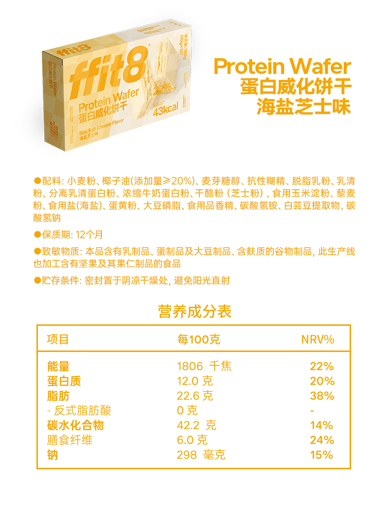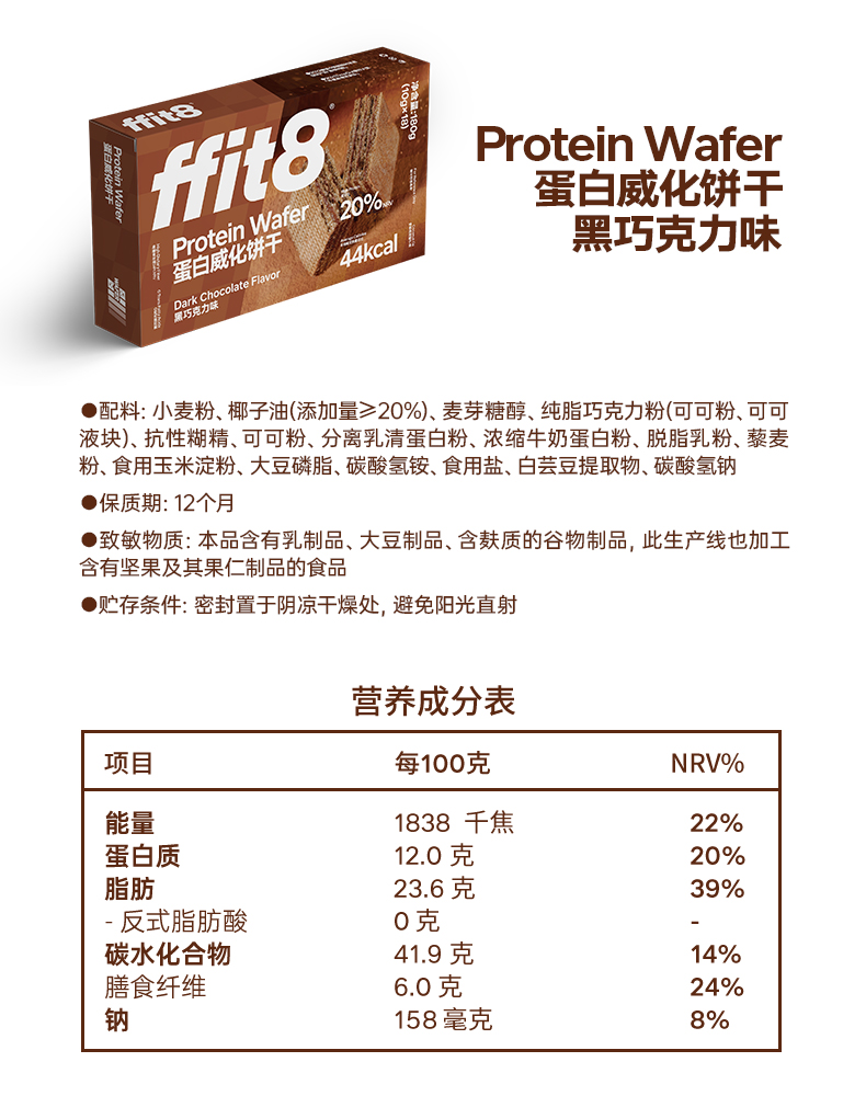 【达人专属】ffit8蛋白威化饼干180g/盒 fx