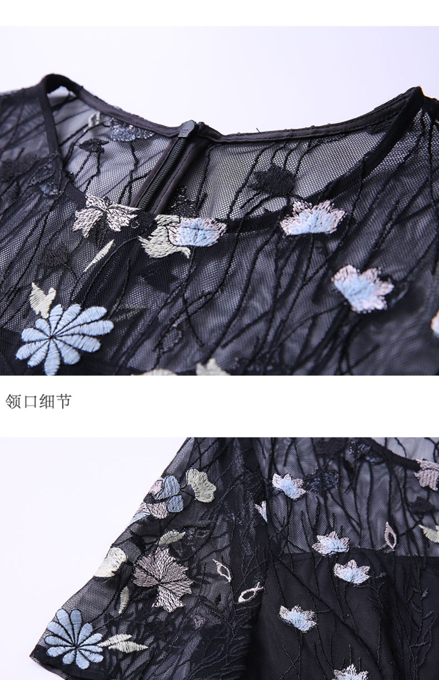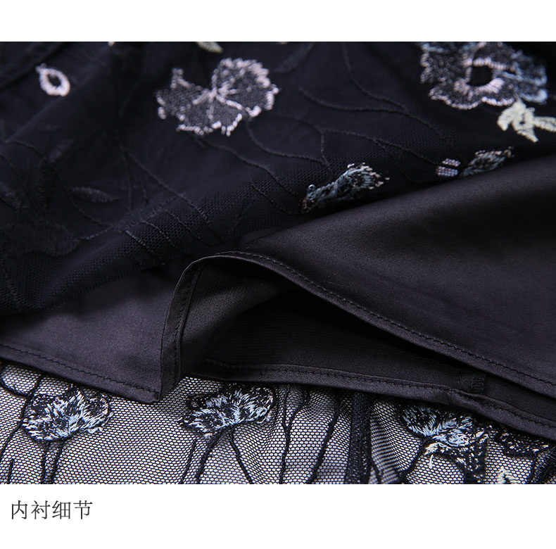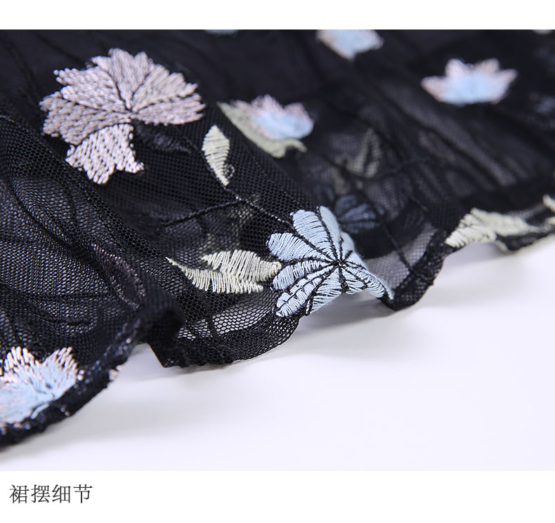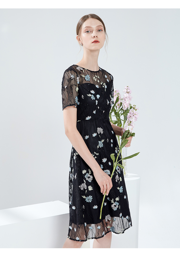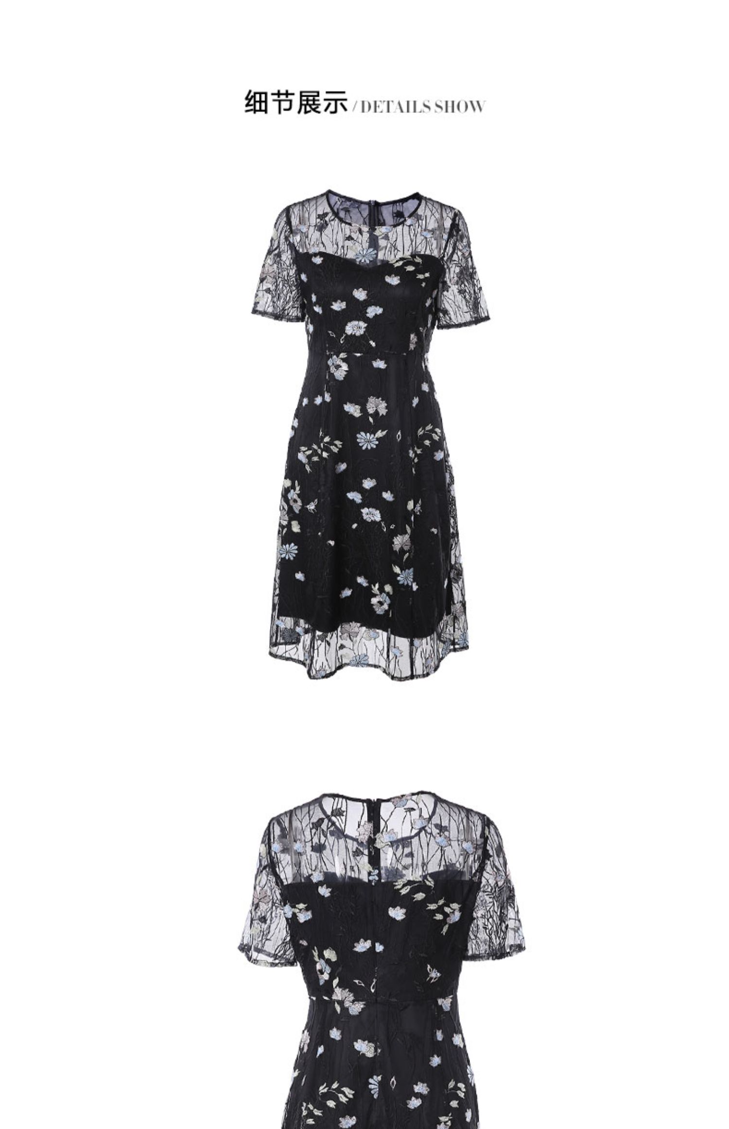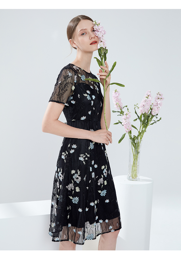 EITIE爱特爱夏季新款时尚镂空网纱印花温柔显瘦收腰A字连衣裙B2107736