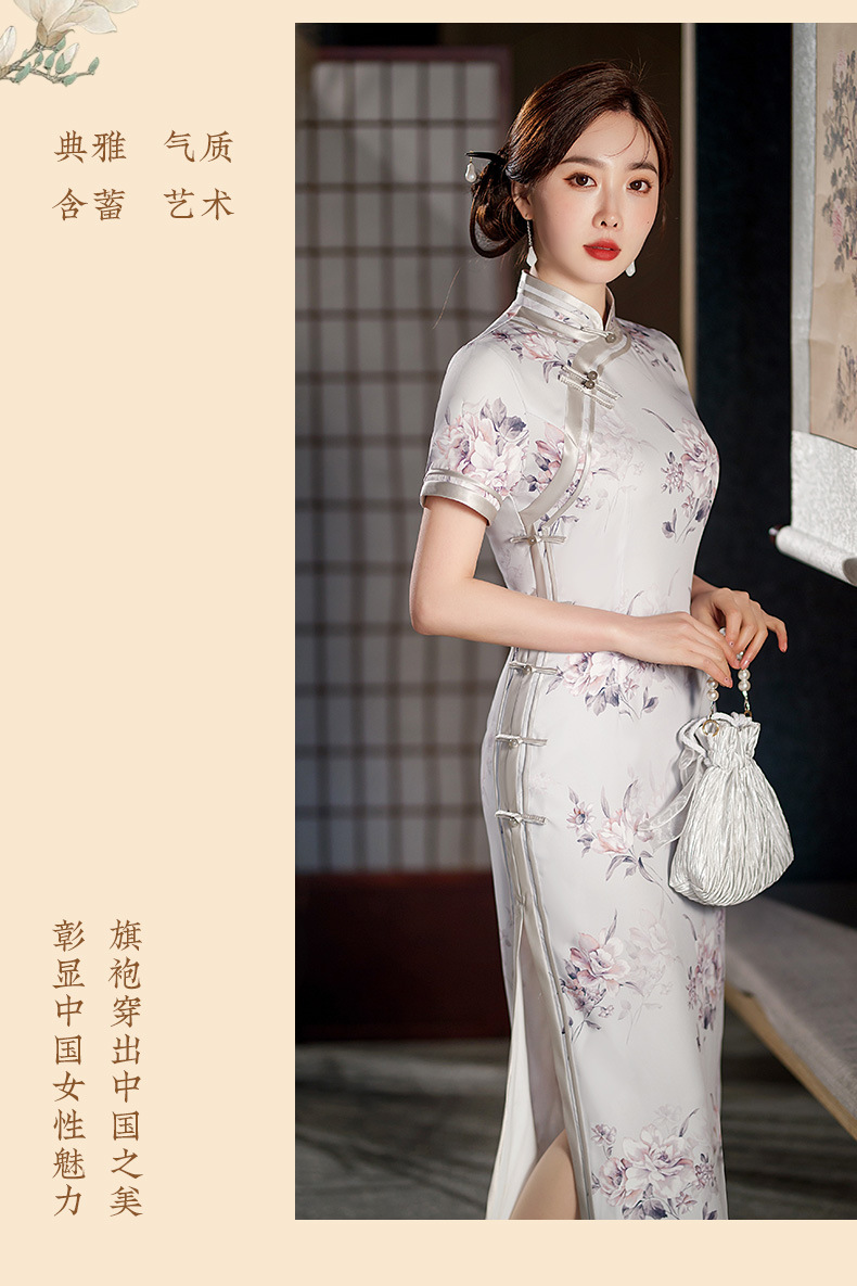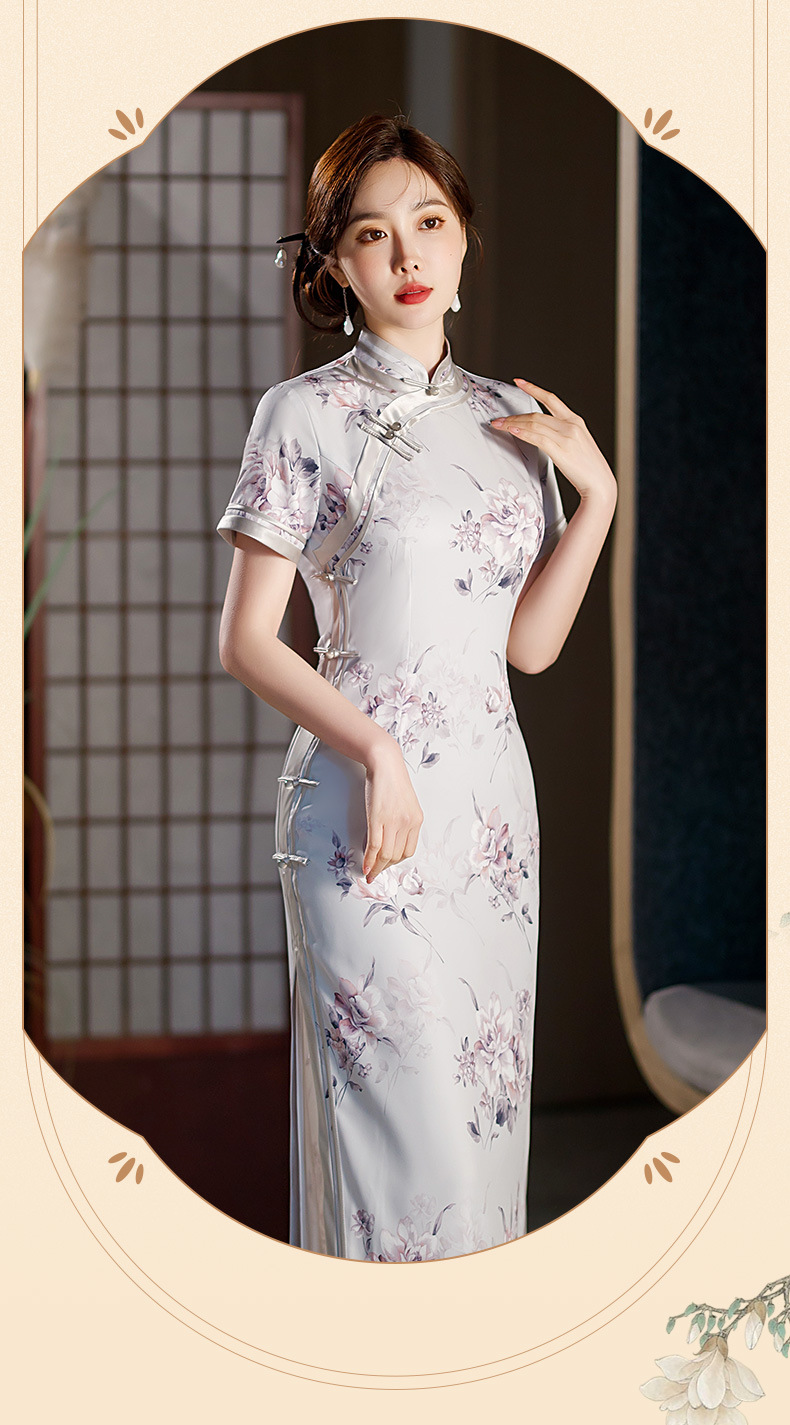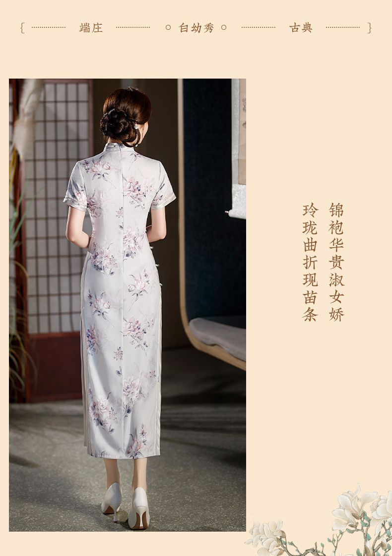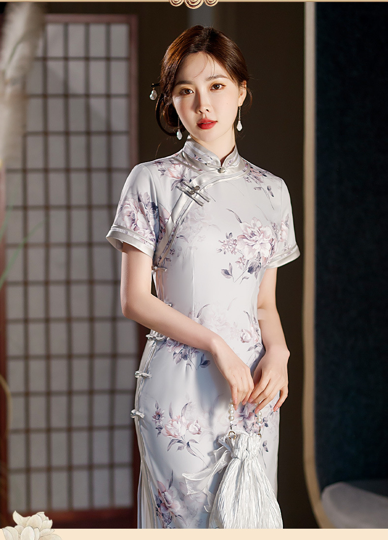 长款修身真丝缎旗袍走秀宴会礼服ST-C3029