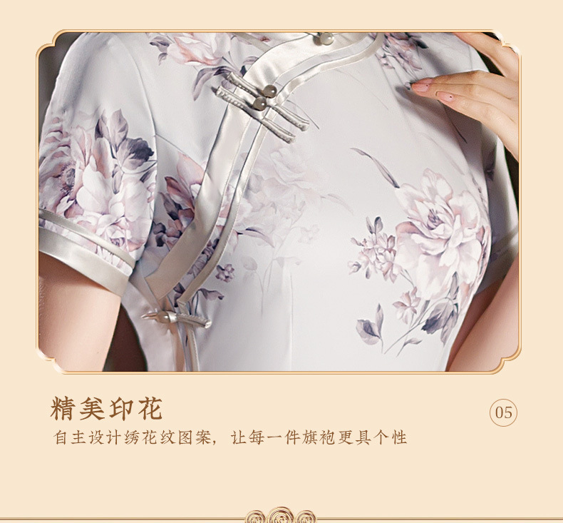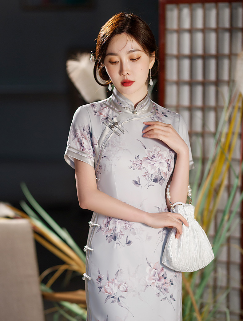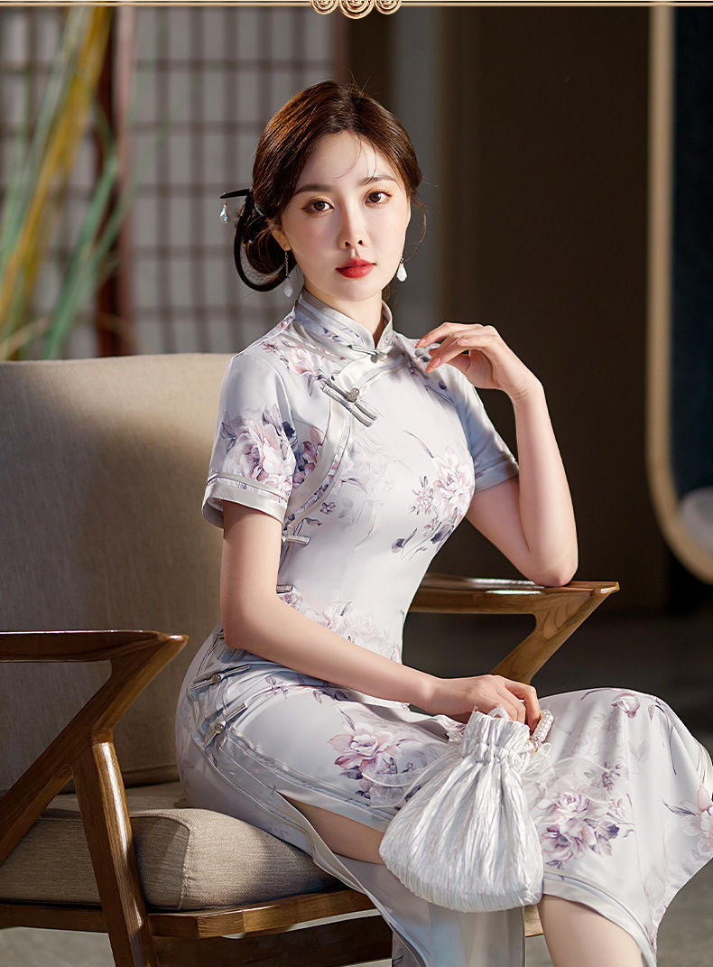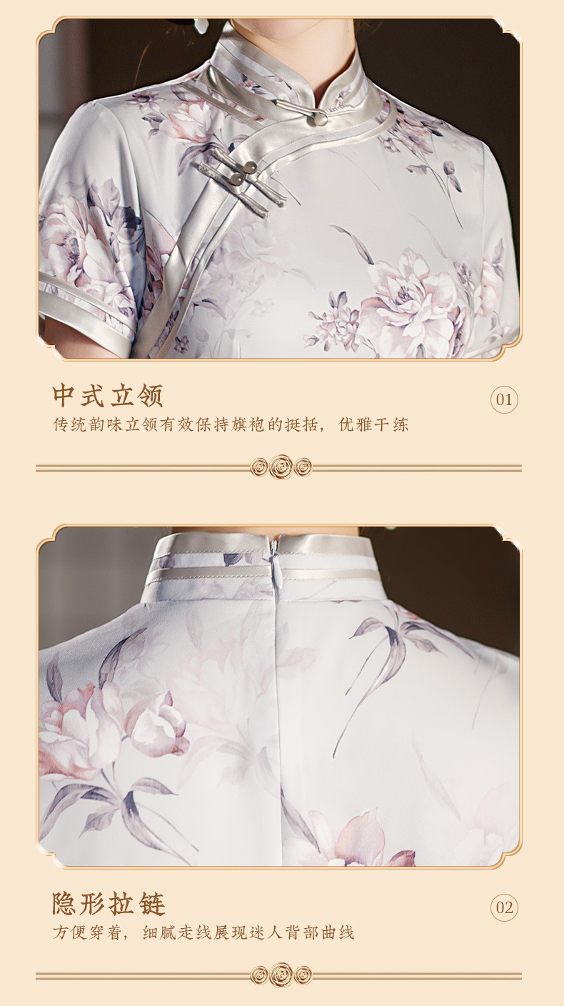 长款修身真丝缎旗袍走秀宴会礼服ST-C3029