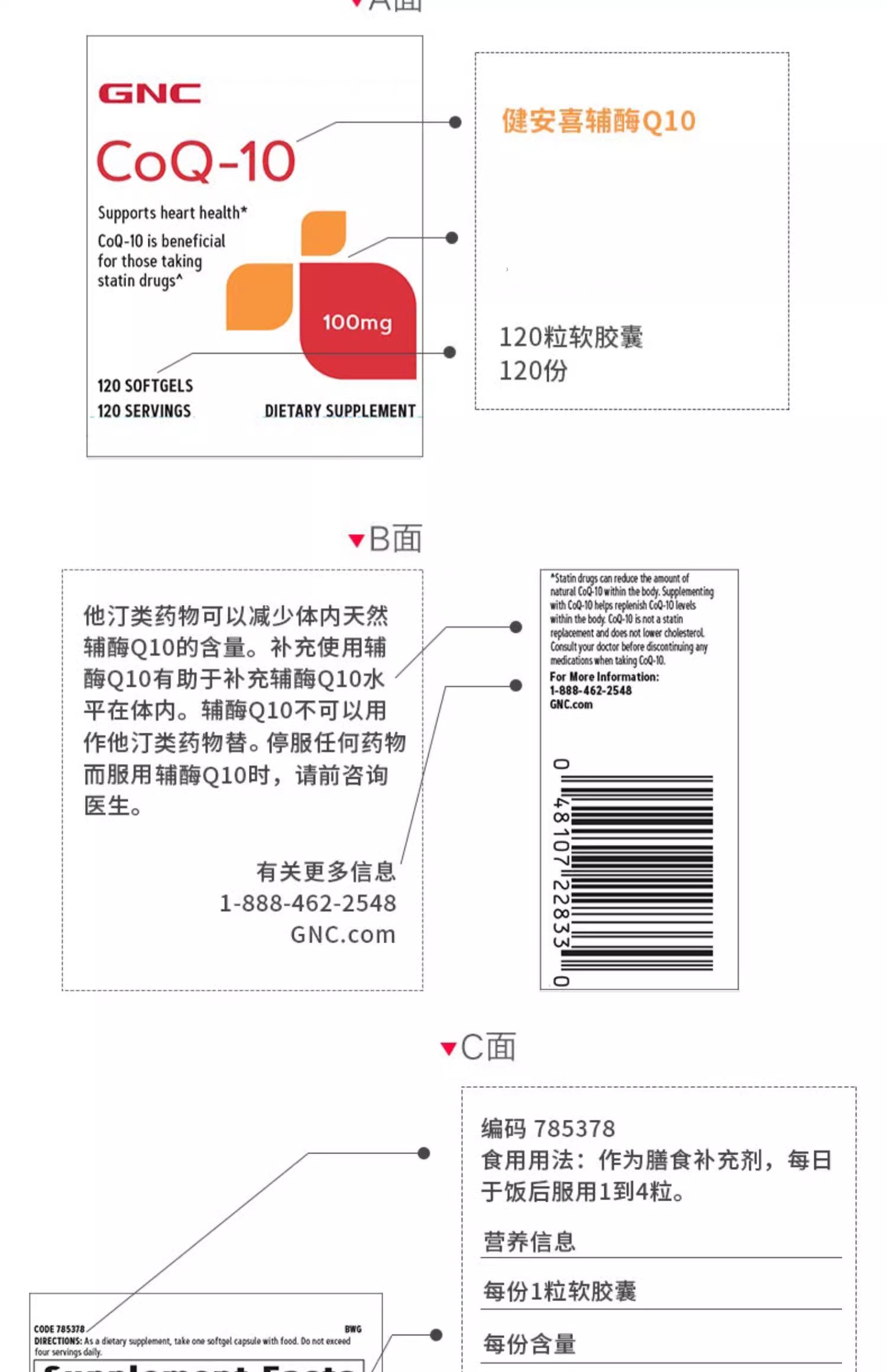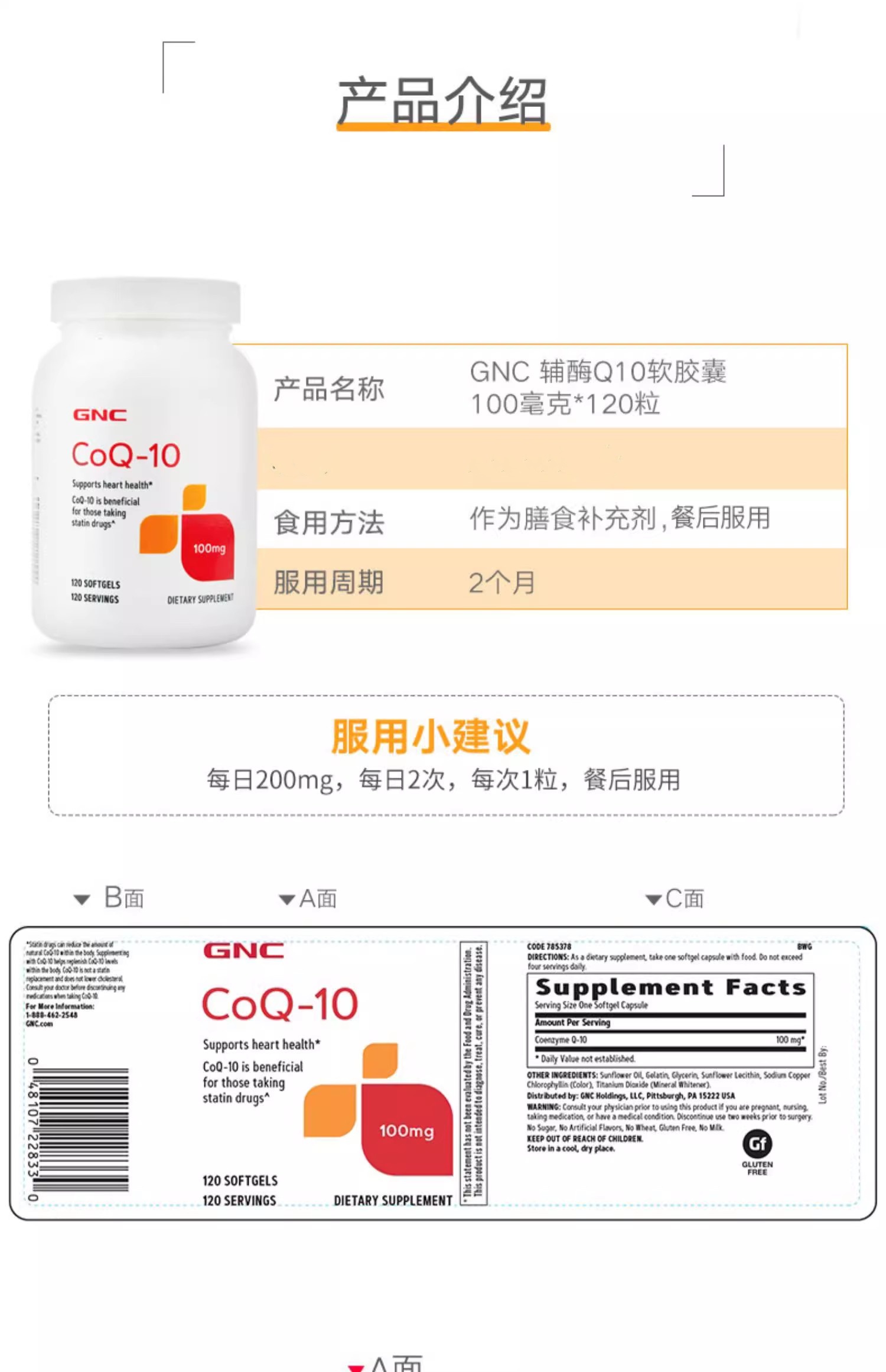 【跨境】健安喜 GNC 辅酶Q10软胶囊100mg 120粒/瓶
