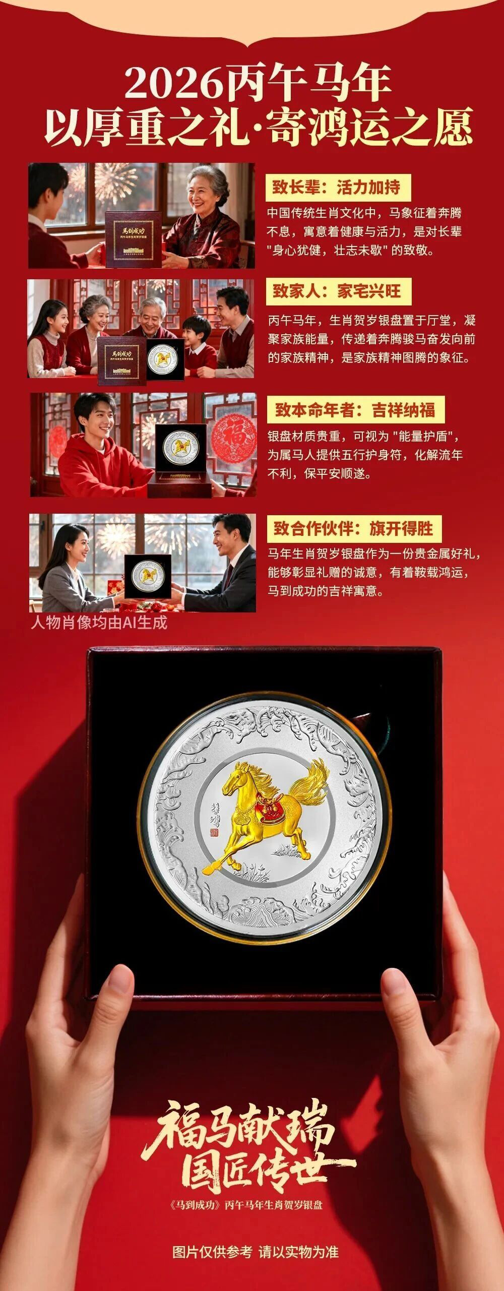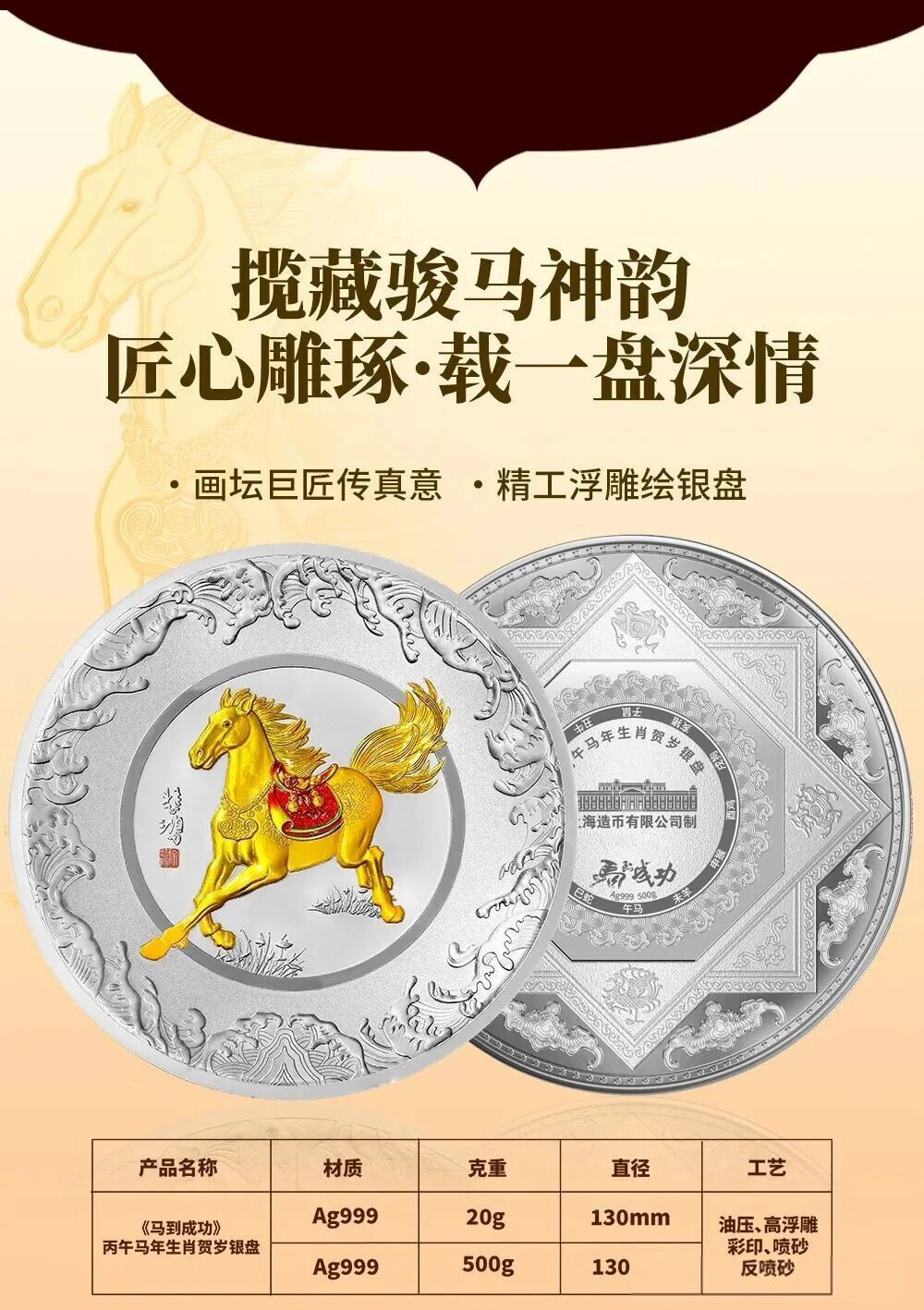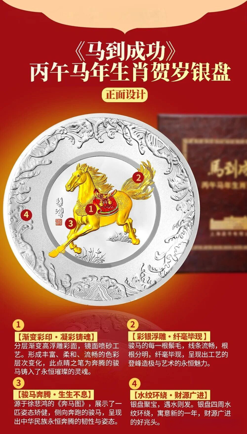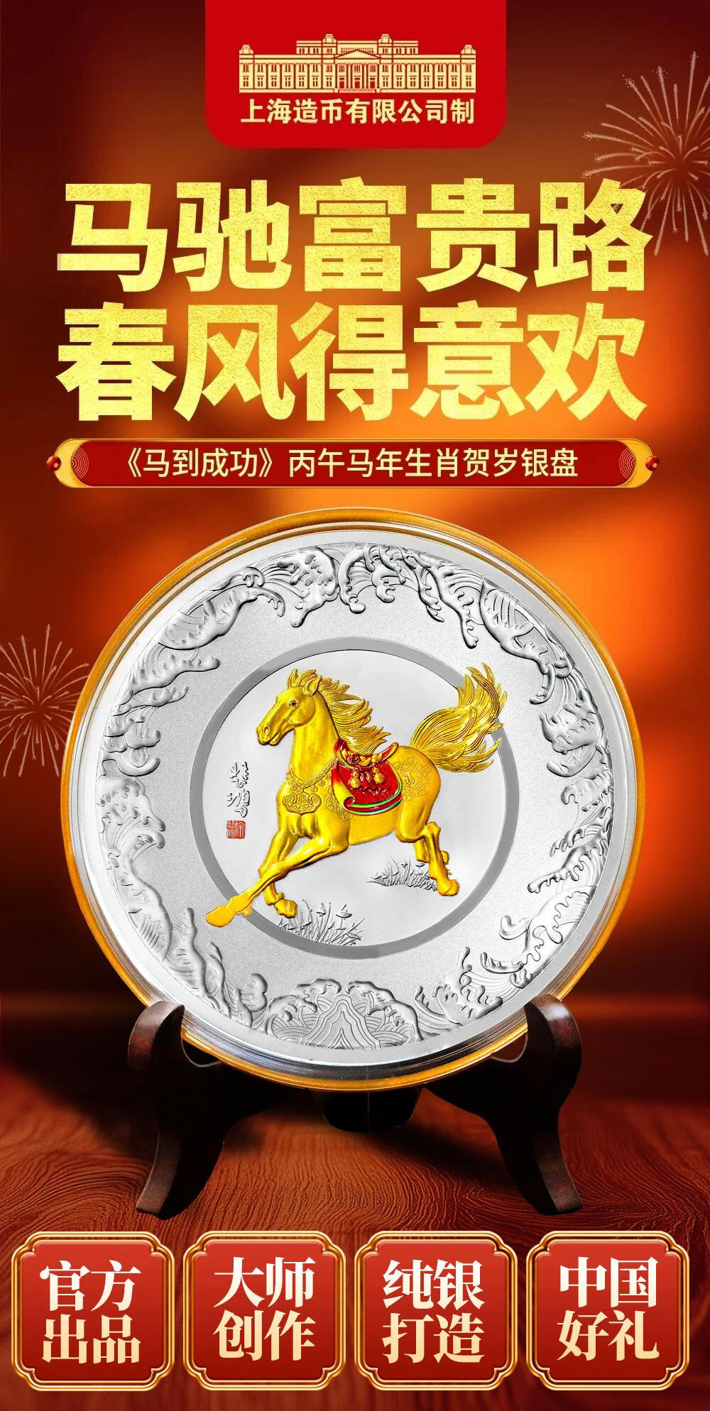 【上海造币发行】2026年《马到成功》生肖贺岁银盘 含纯银20克 沈志云设计
