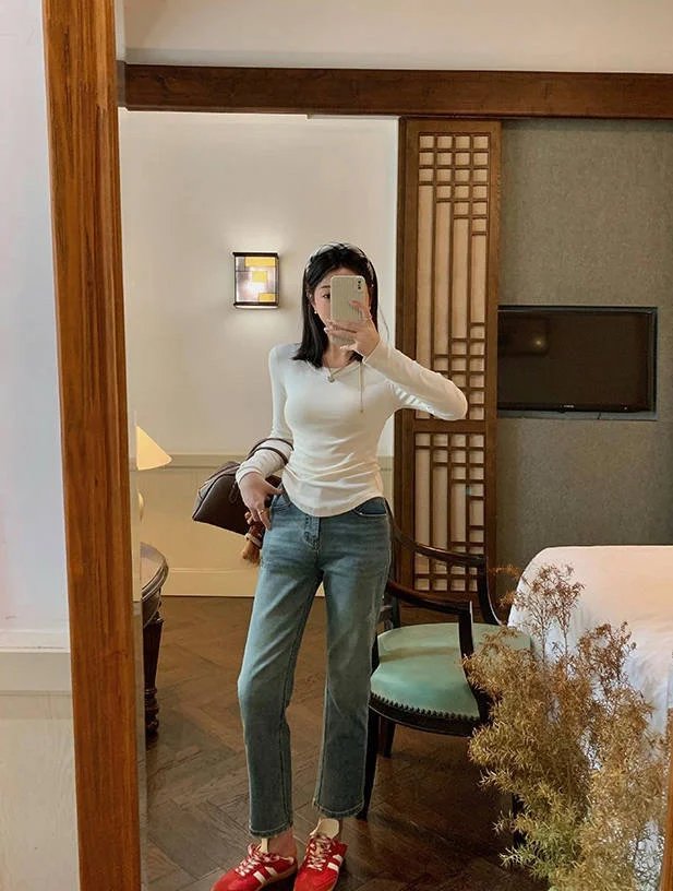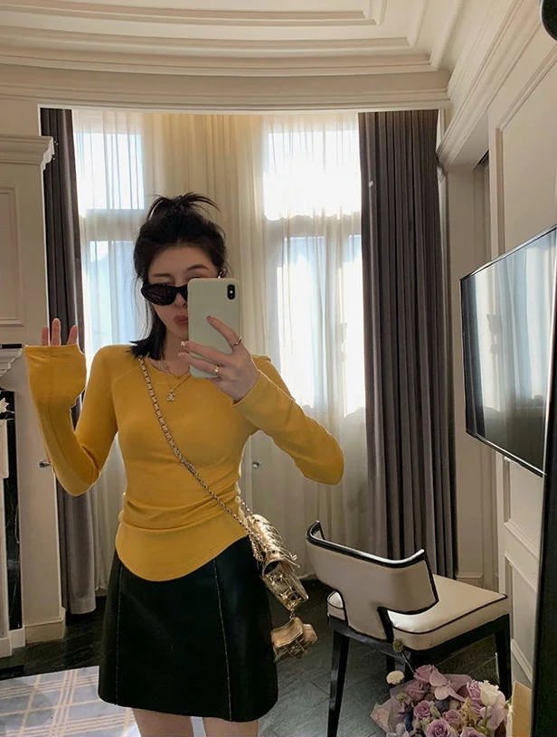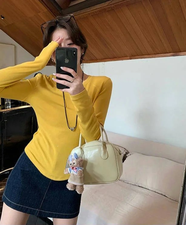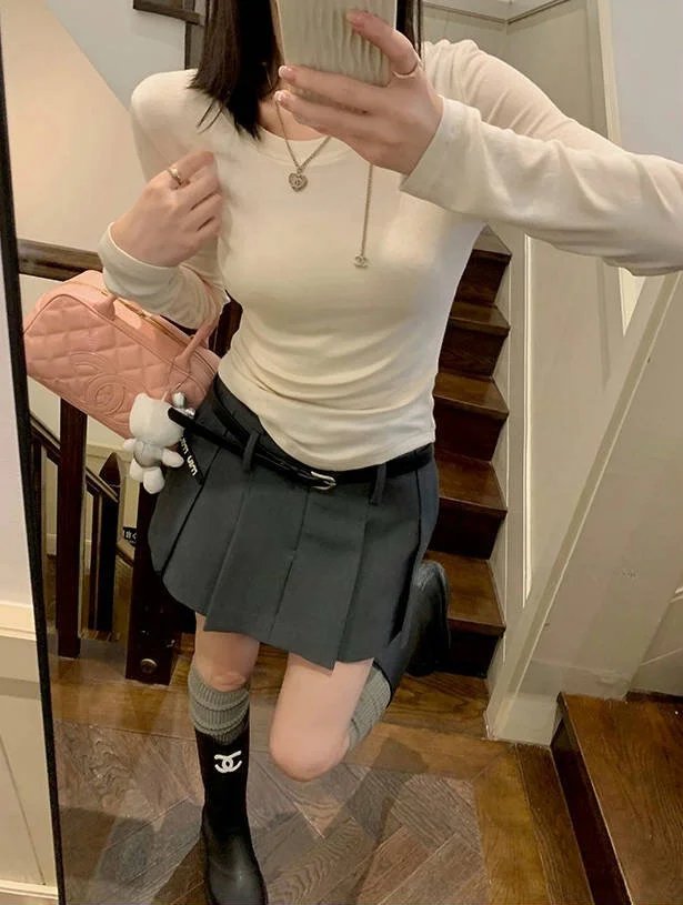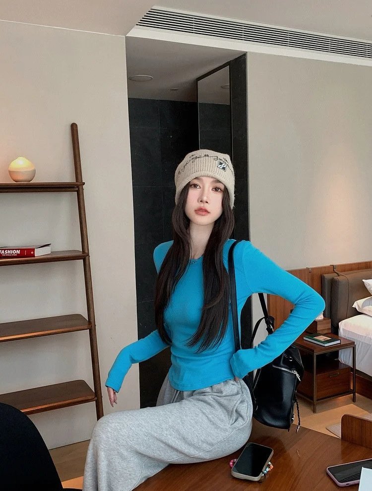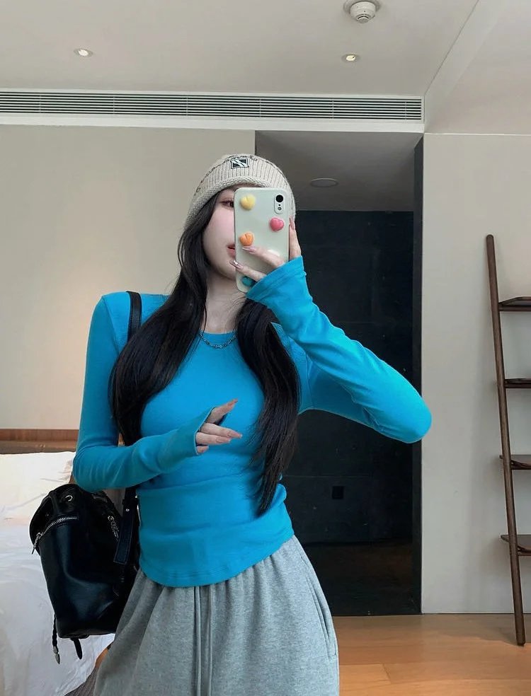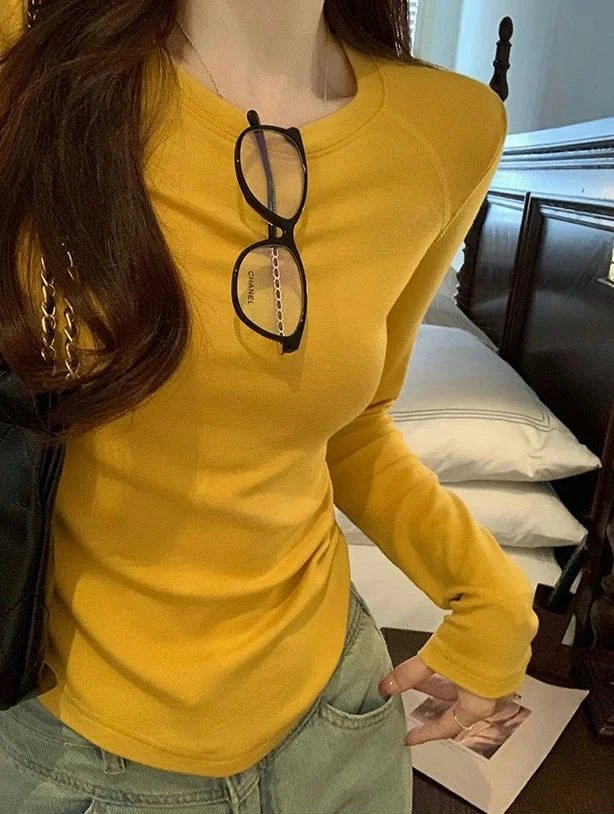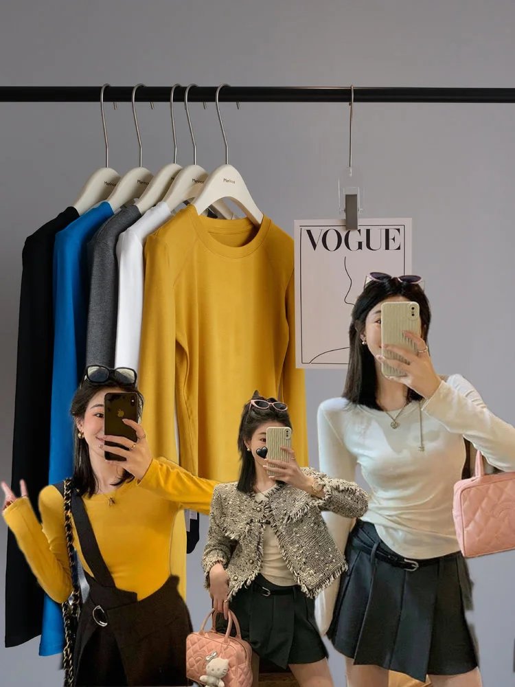 百搭造型神器,纯色系修身长袖TEE,