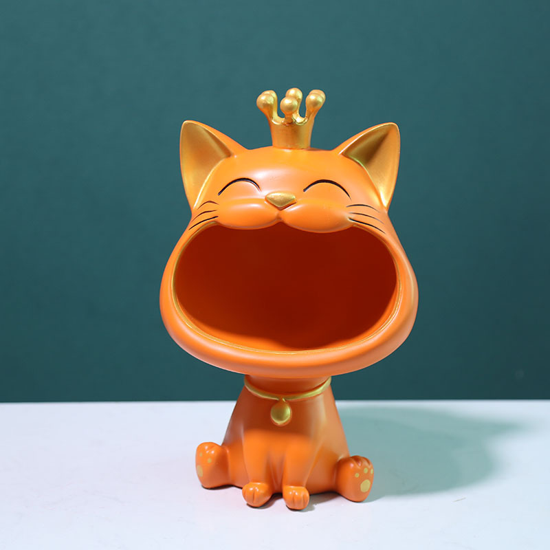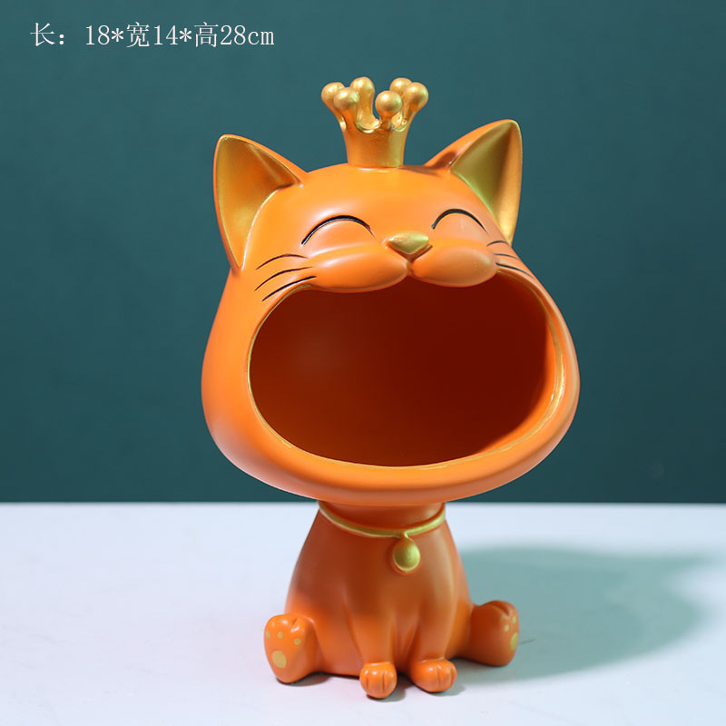 (春艺)网红大嘴猫收纳猫摆件树脂桌面客厅玄关装饰杂物收纳摆件