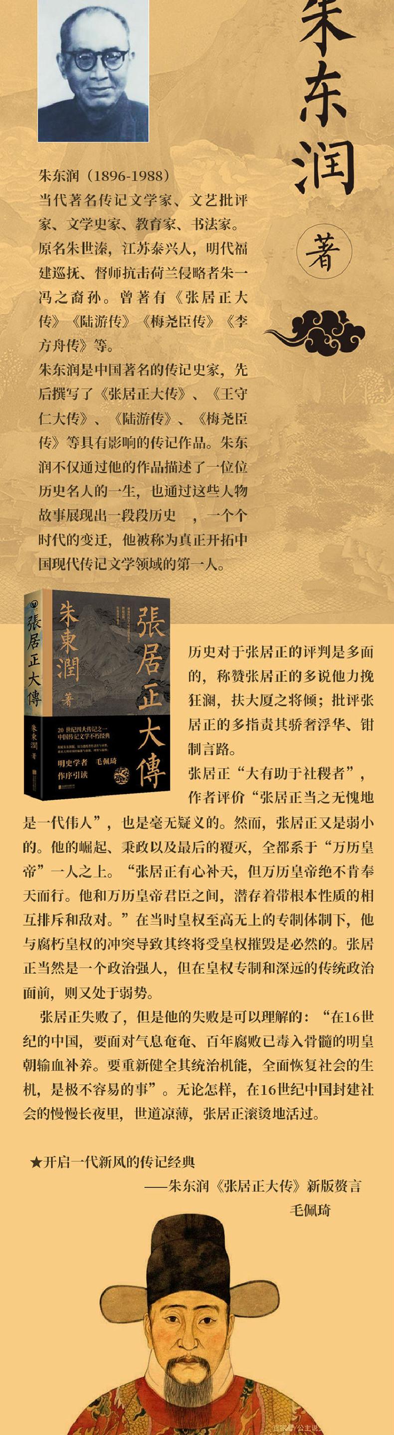 2.威朱东润版,以力透纸背的悲壮与哀愁,重读大明帝国的偏激与倨傲、理智与温情;“居正既非伊周,亦非温莽。他固然不是禽兽,但是他也并不志在圣人。他只是张居正,一个受时代代陶镕,而同时又想陶镕时代底人物。”