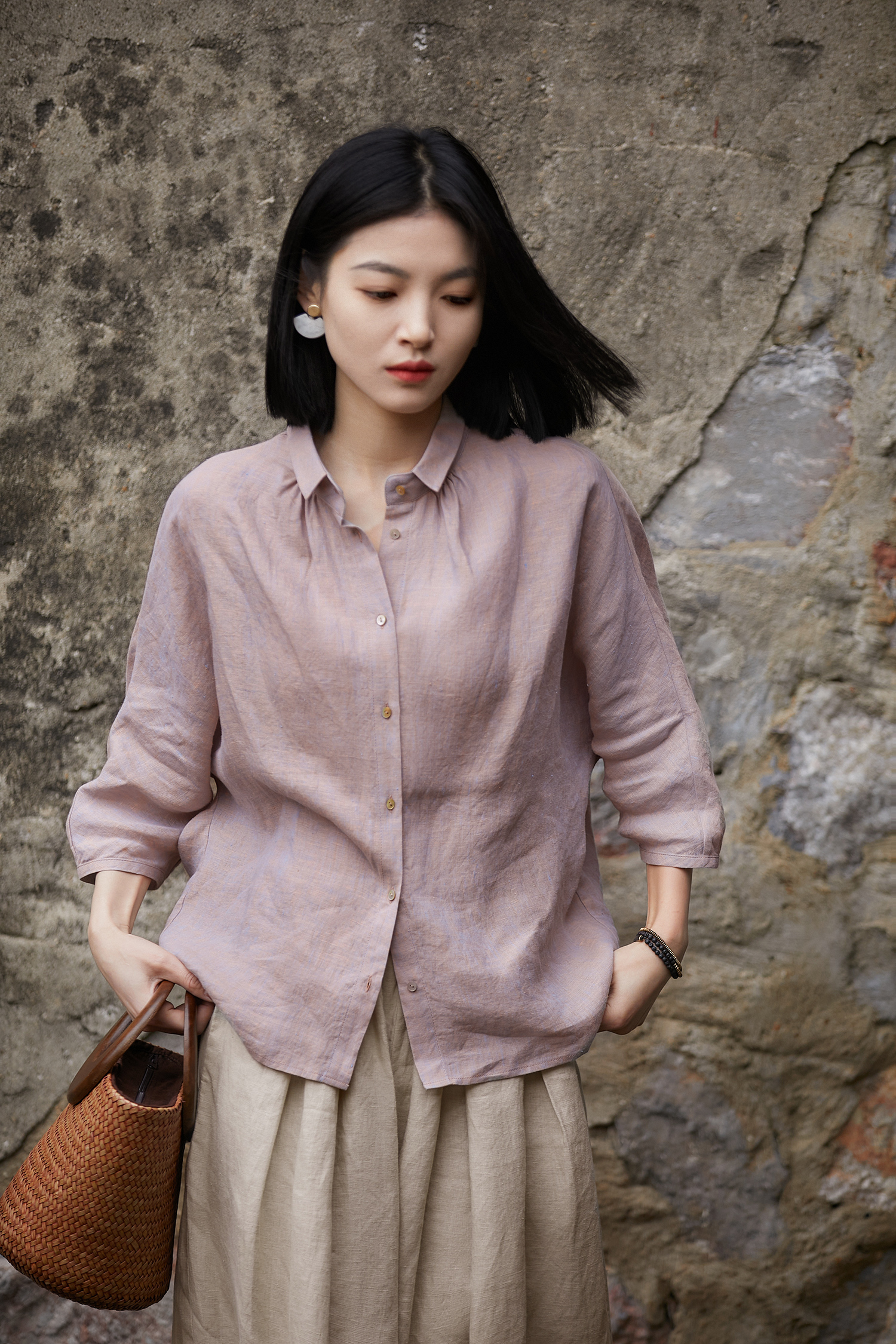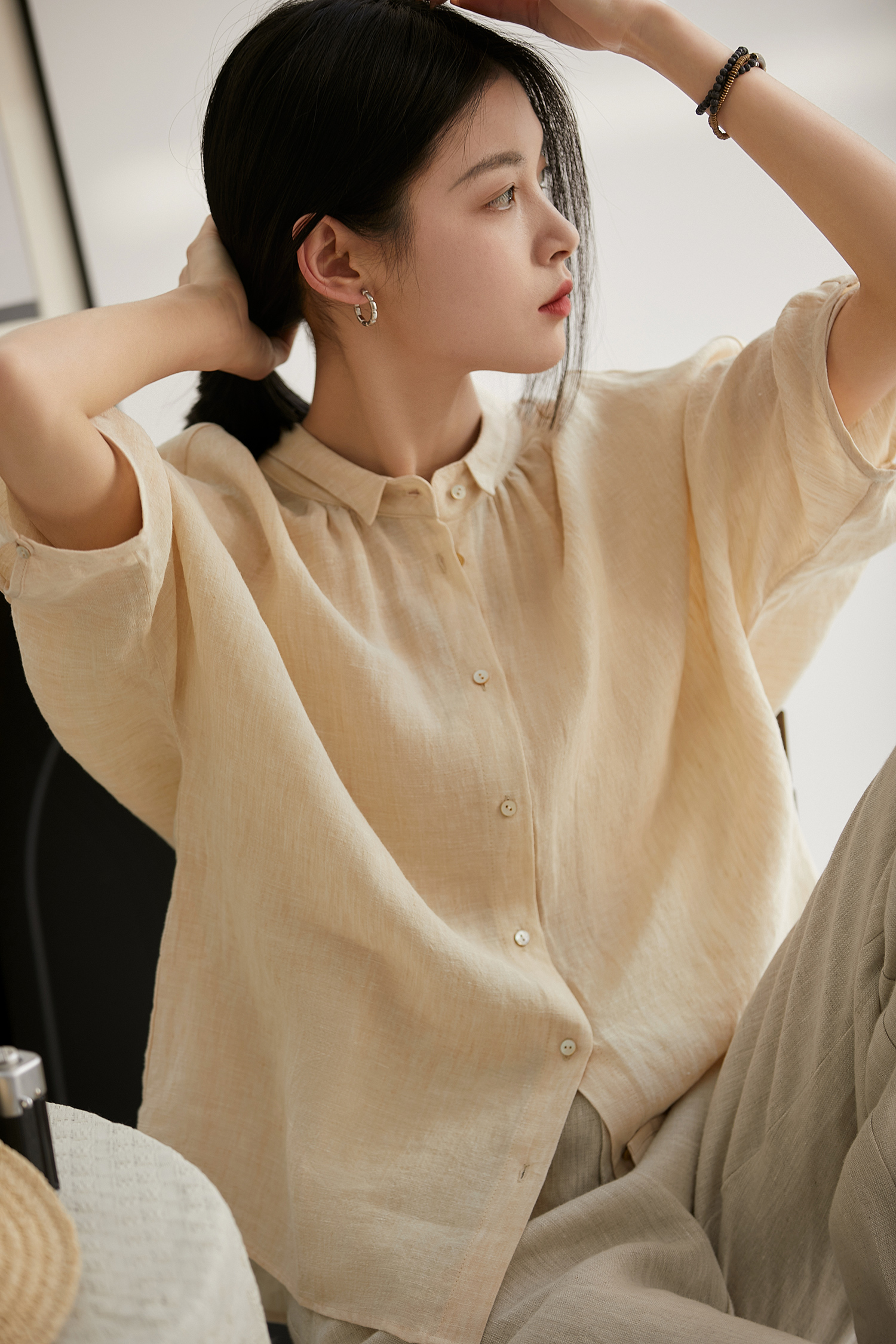 ACYJR9133文艺感凉爽汉麻显瘦休闲衬衫