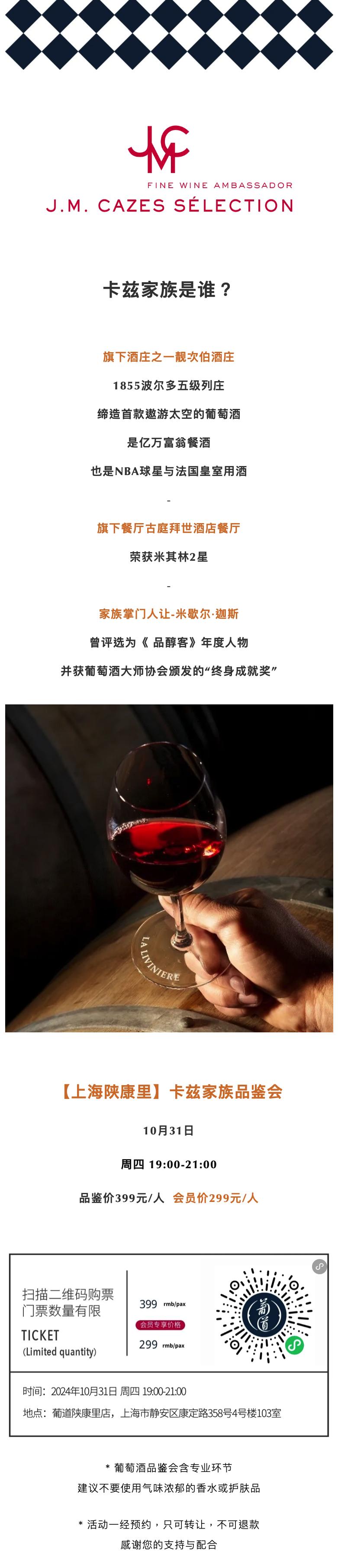 【2024.10.31 陕康里门票 SKL Ticket】波尔多5级庄靓次伯拥有者|卡兹家族旗下酒庄一次性喝全!