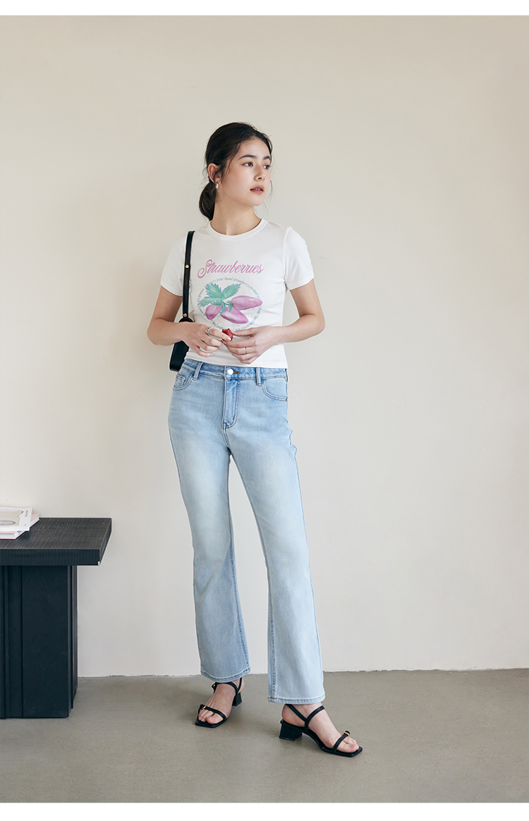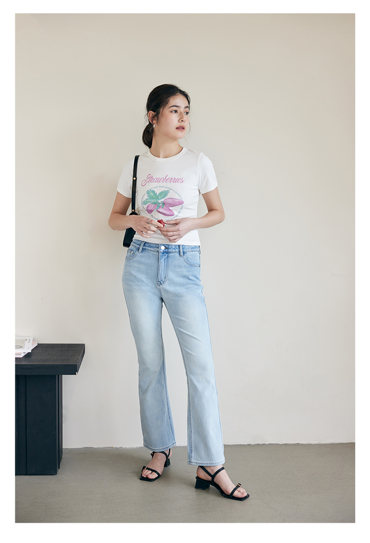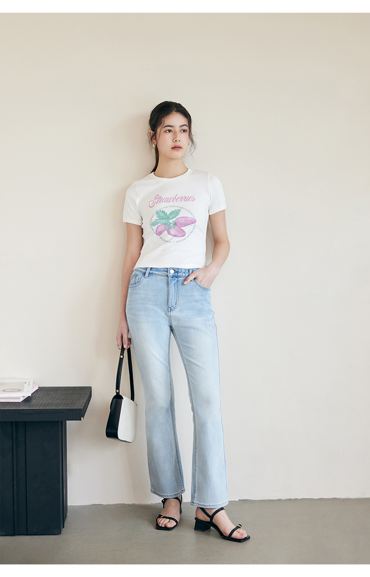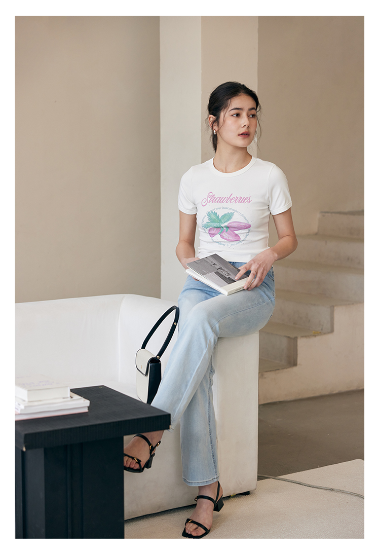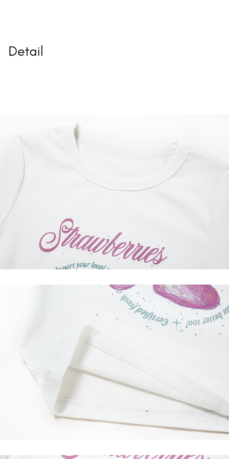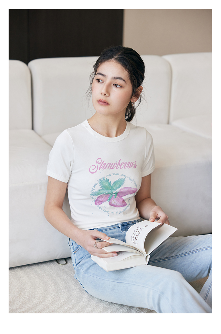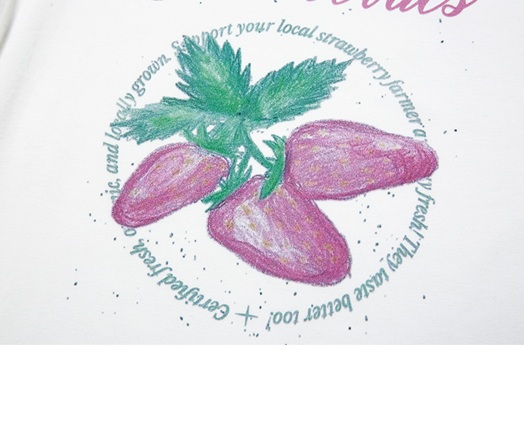 HeyDress草莓印花T恤女夏季圆领修身弹力半袖百搭辣妹短半袖上衣