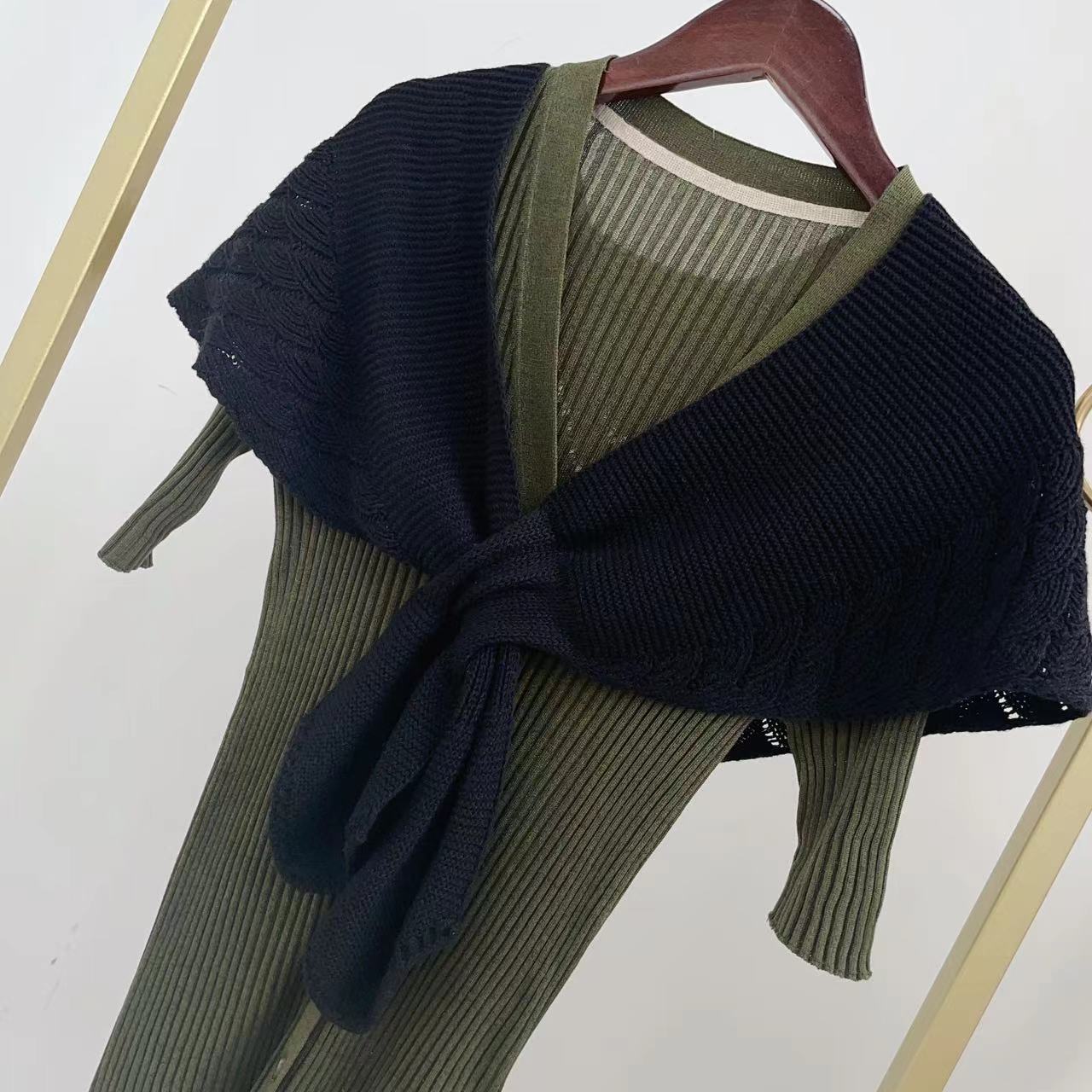 下午有客人问,有没有小披肩可以在空调房里披一下的,这款小披肩本来冬天就想上的,结果工厂爆单耽搁了,刚好客人问了,就想起来啦!