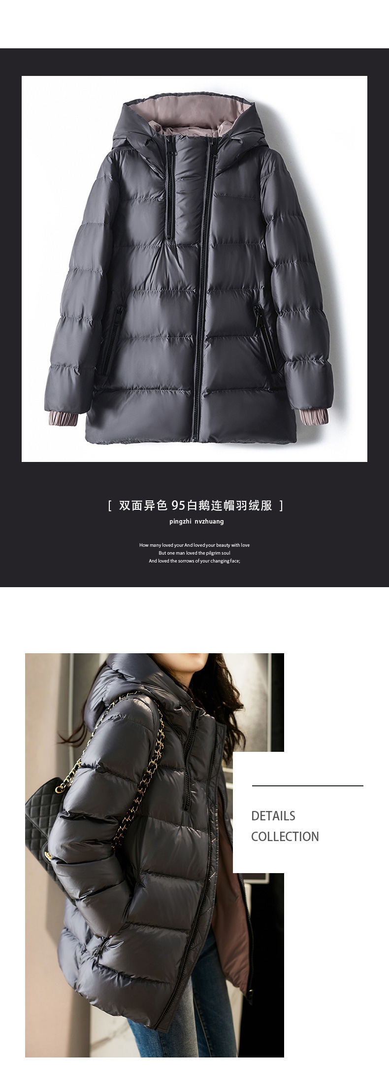 【高货ay】全新升级【铂金会员588/天猫799/差价211】(12416) 洛诗琳冬季新款设计感95白鹅绒连帽短款双面羽绒服外套女
