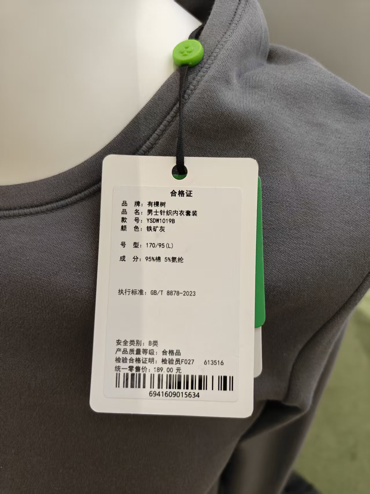 有棵树男士秋衣秋裤套装 内衣专柜款2025秋冬