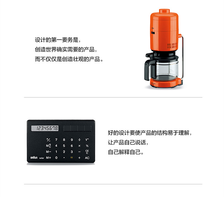 博朗认为设计是需要创新的,创新意味着既不重复大家熟悉的形式,也不为了新奇而刻意出新。出色的设计还应该贯穿每个细节,以自然内敛的形式,为使用者提供自我表达的空间,只有这样,在大众喜新厌旧的今天,设计才在众多产品中脱颖而出,历久弥新。