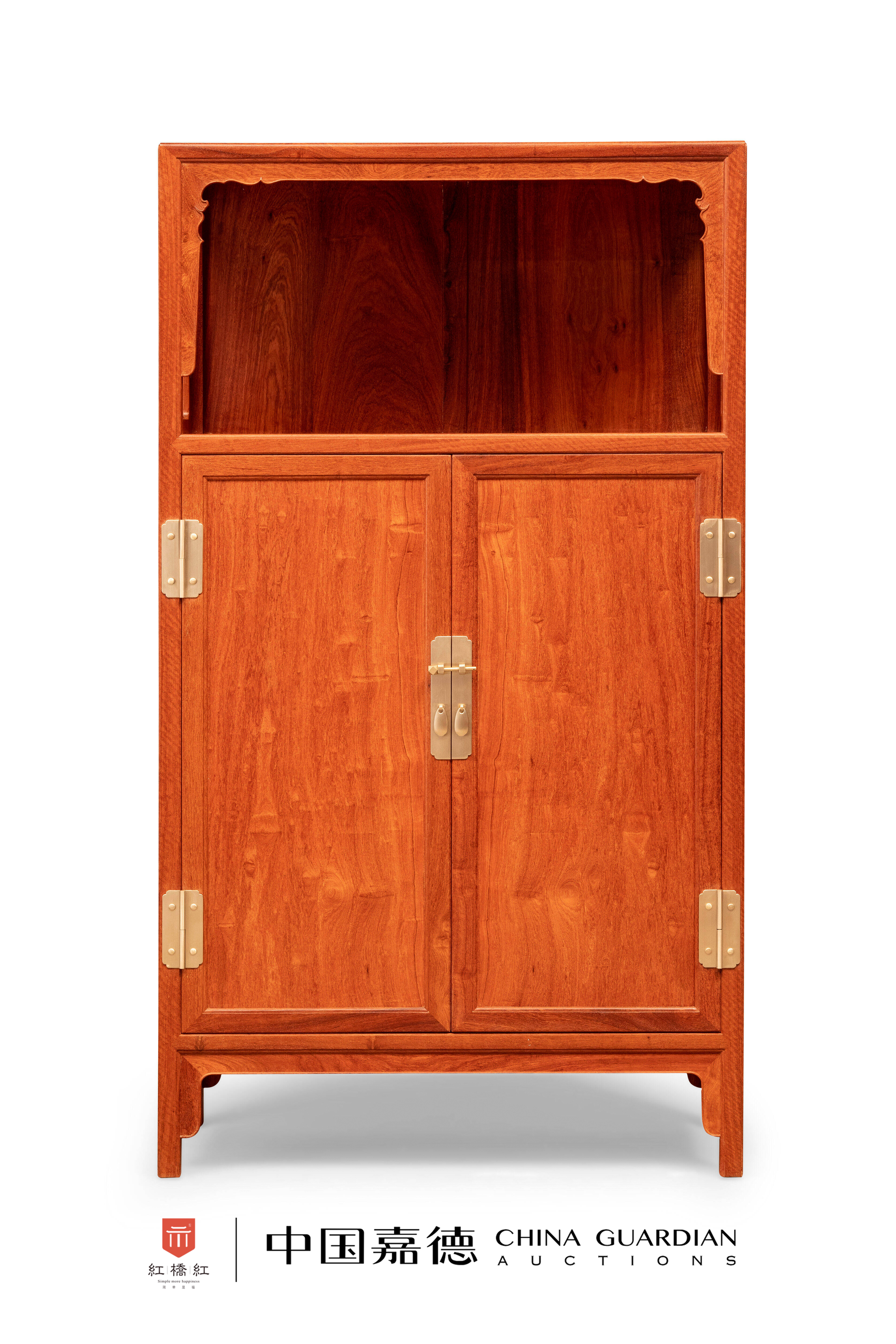 亮格柜是架格与柜子的结合,常见架格在上或全敞,或加后背,或安券口等形式,齐人肩或稍高,中置器物利于观赏,以一层的样式居多,柜子在下利于重心稳固。