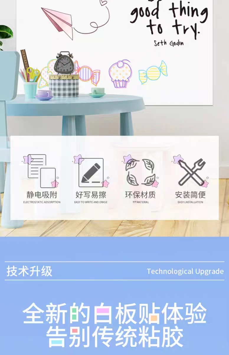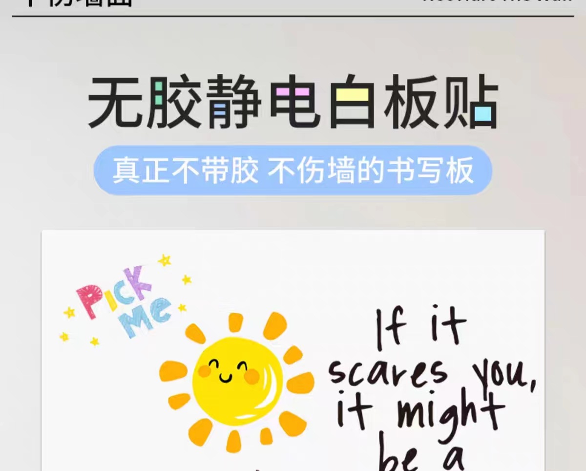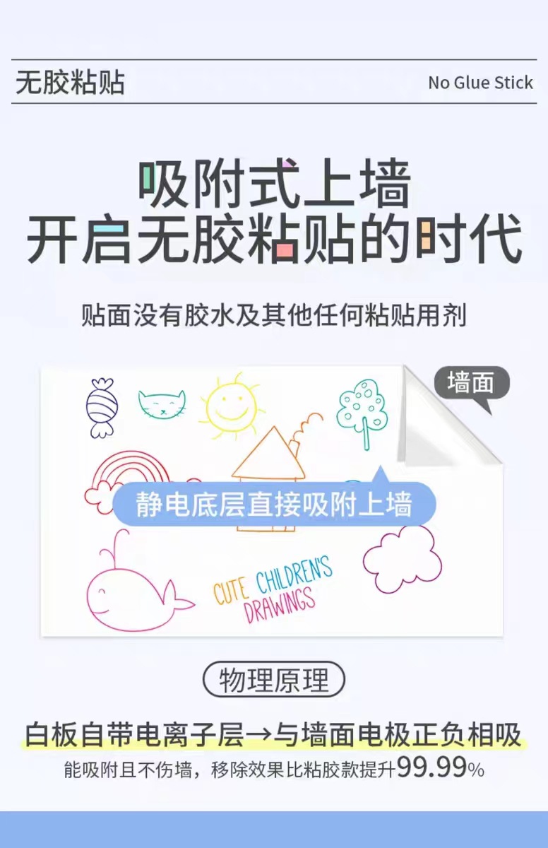 买就送(配无痕贴+小刀+白板笔+毛巾)【真静电吸附!不伤墙】静电白板墙贴可移除擦写不伤墙家用儿童房卧室涂鸦画画写字板贴纸。hb