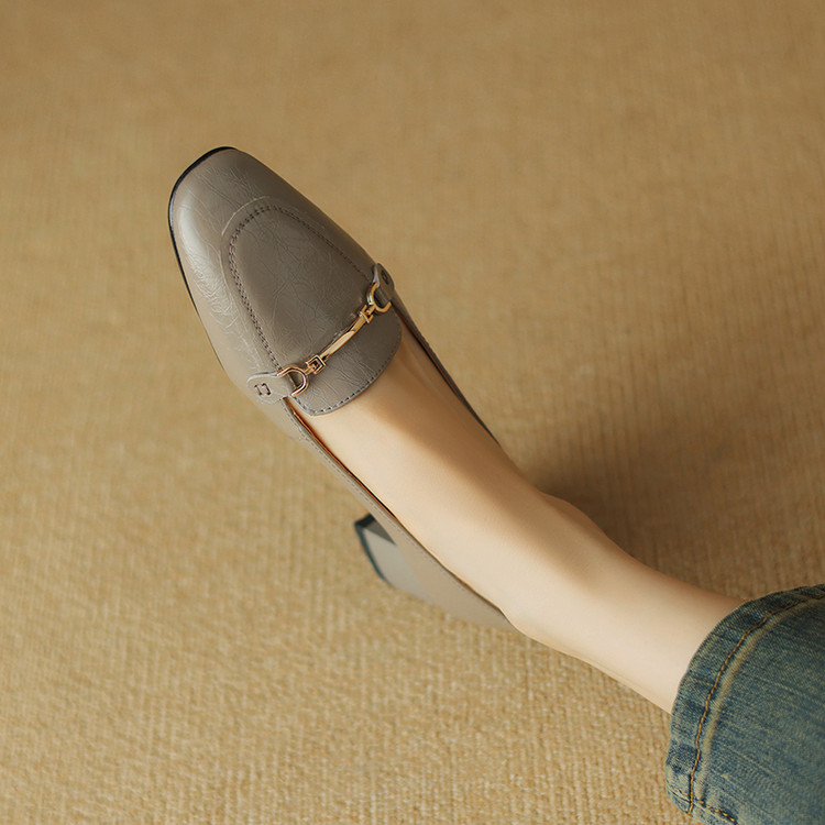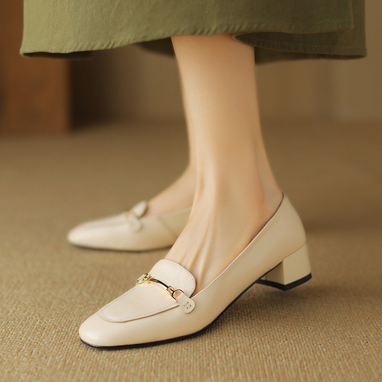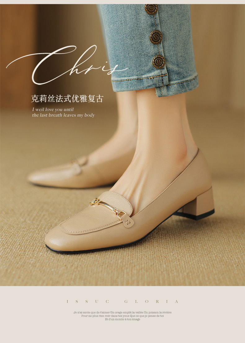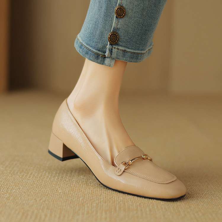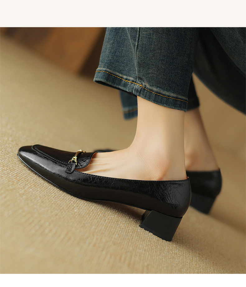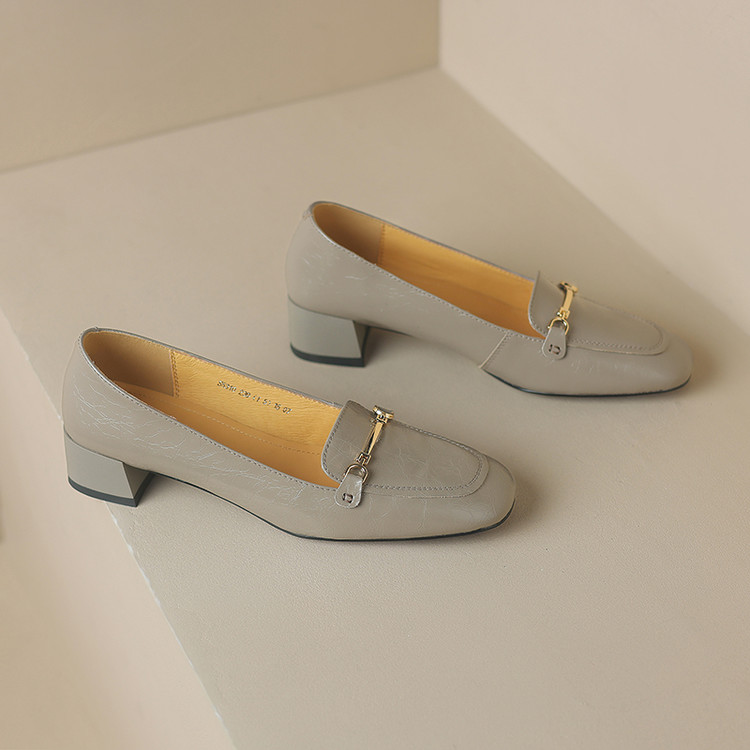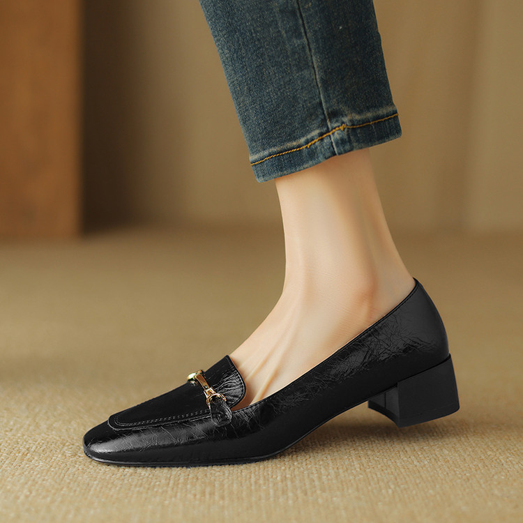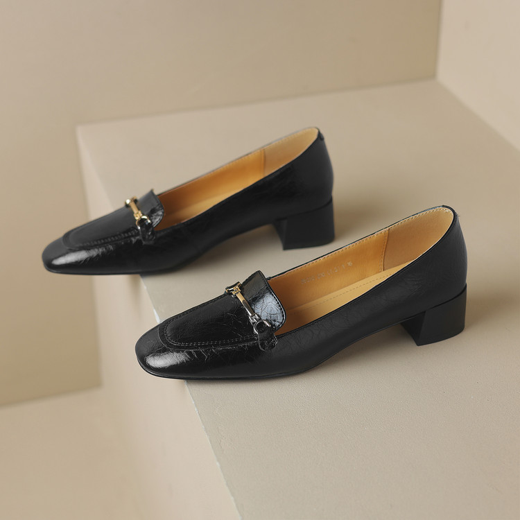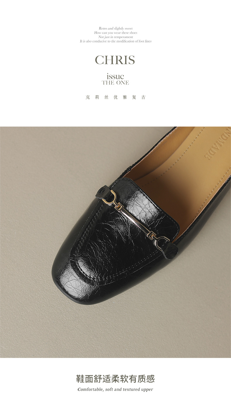 【预售5天】英伦风软皮乐福鞋女新款法式粗跟方头浅口单鞋中跟小皮鞋SSS&S5310-1