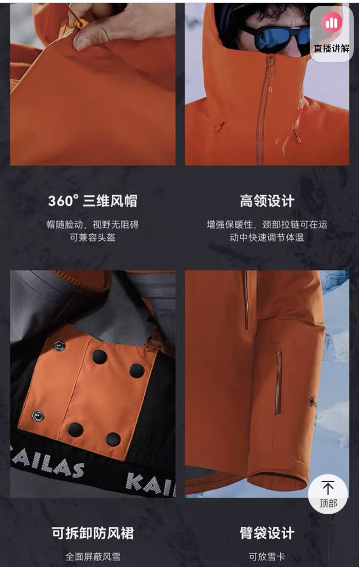 3D立体剪裁工艺 贴合亚洲人身形更适合登山、滑雪、攀冰等高山活动 令面料更加贴合身体曲线 有效提高了吸湿排汗性能和保暖性能 同时模拟攀登姿势设计 让运动中的身体拥有更多的灵活性 没有任何束缚感!
