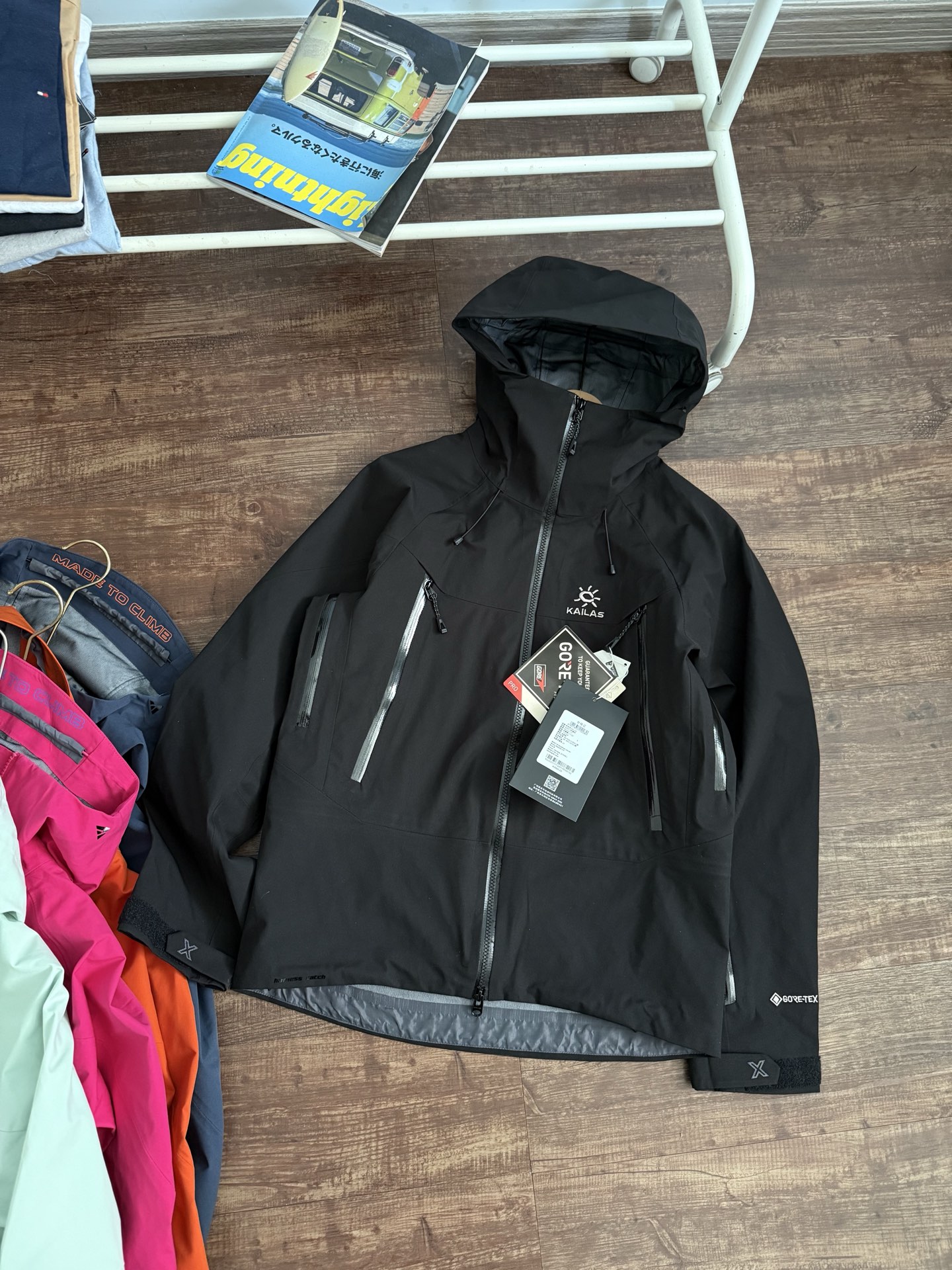▪硬壳耐磨耐造,袖口、衣内也均设有口袋。腋下拉链更加透气,还有可拆卸防风裙。性能很高。