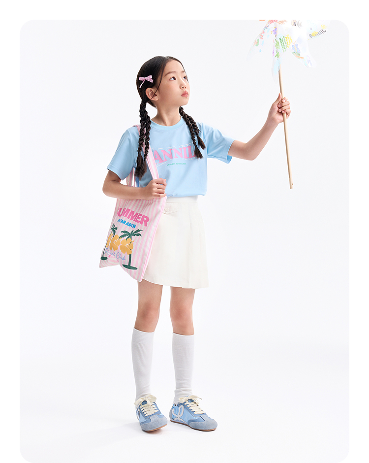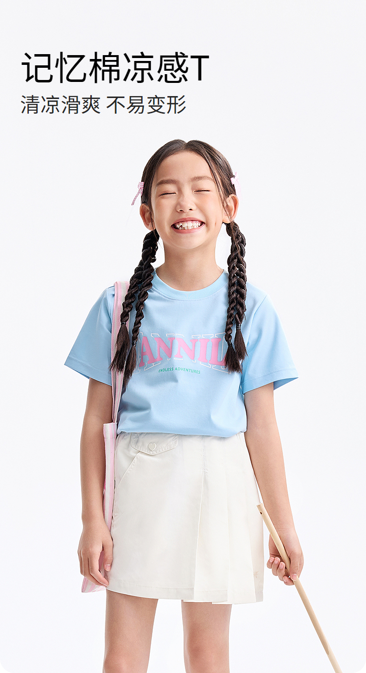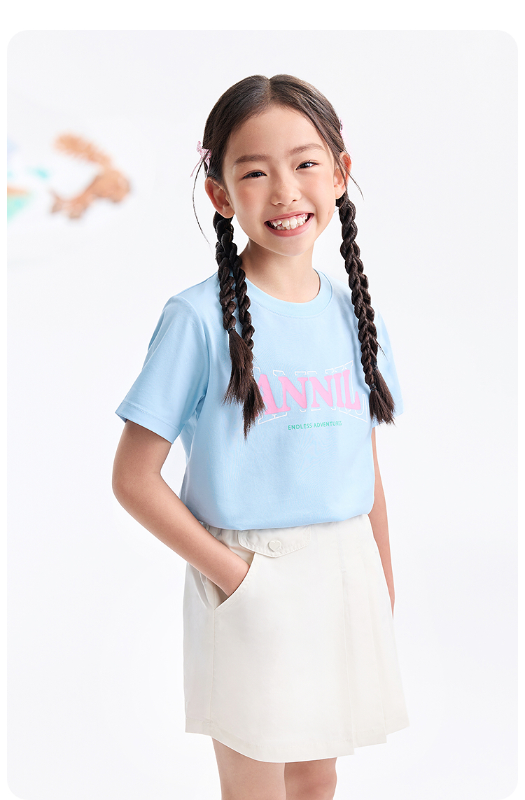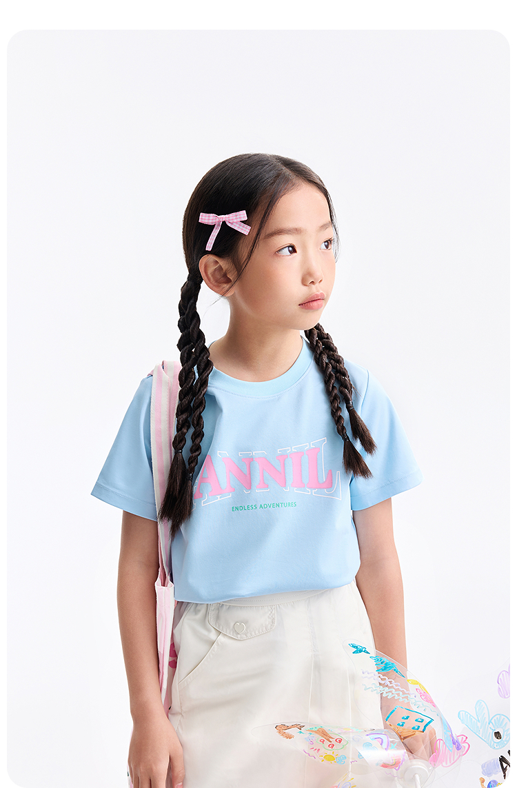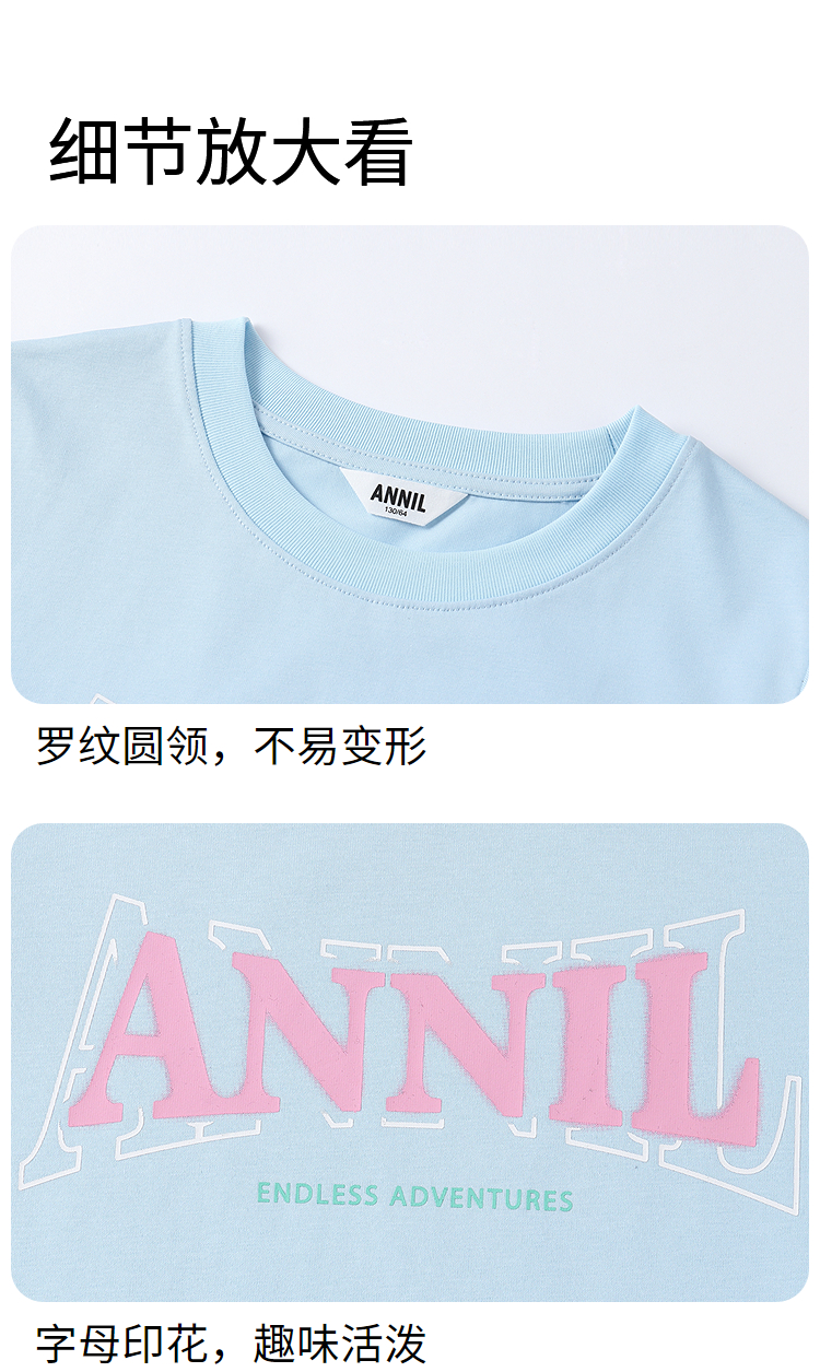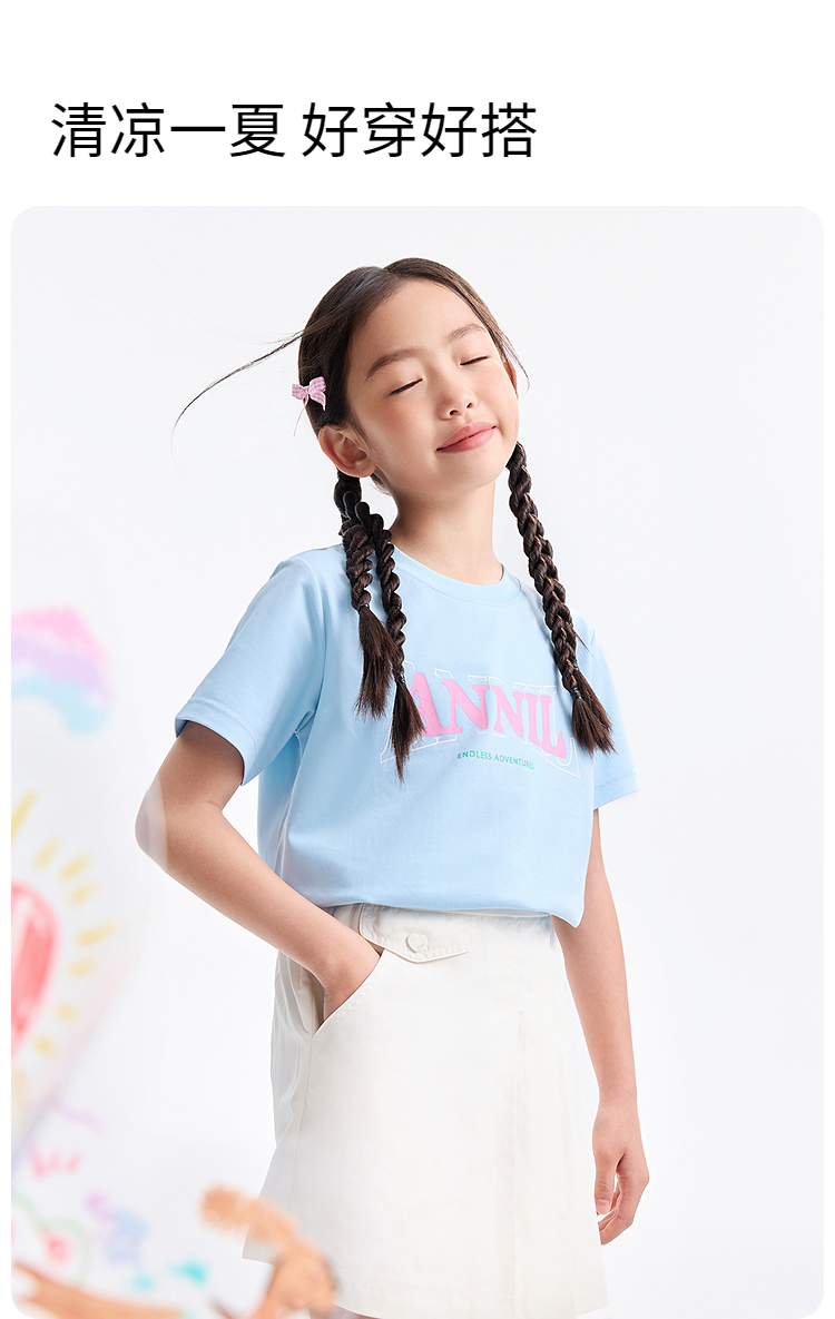 男女童圆领短袖针织衫夏季新款安奈儿童装EM521212