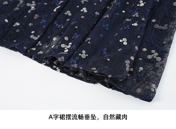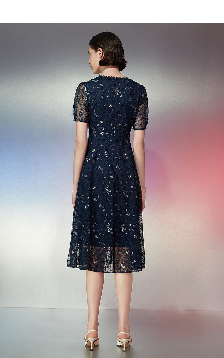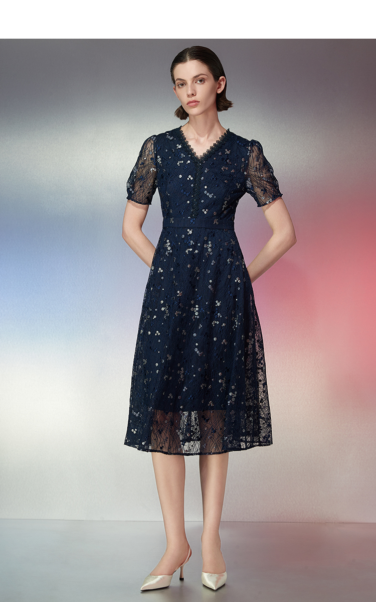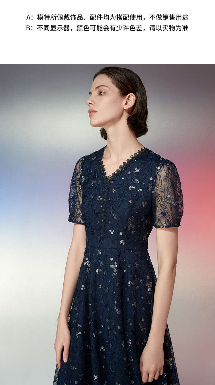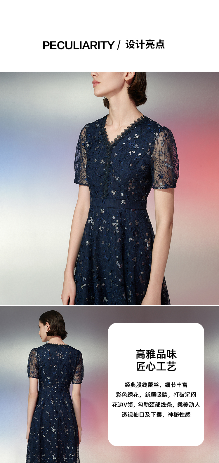 EITIE爱特爱夏季新款a字显瘦通勤气质V领优雅蕾丝连衣裙7807570