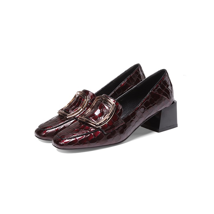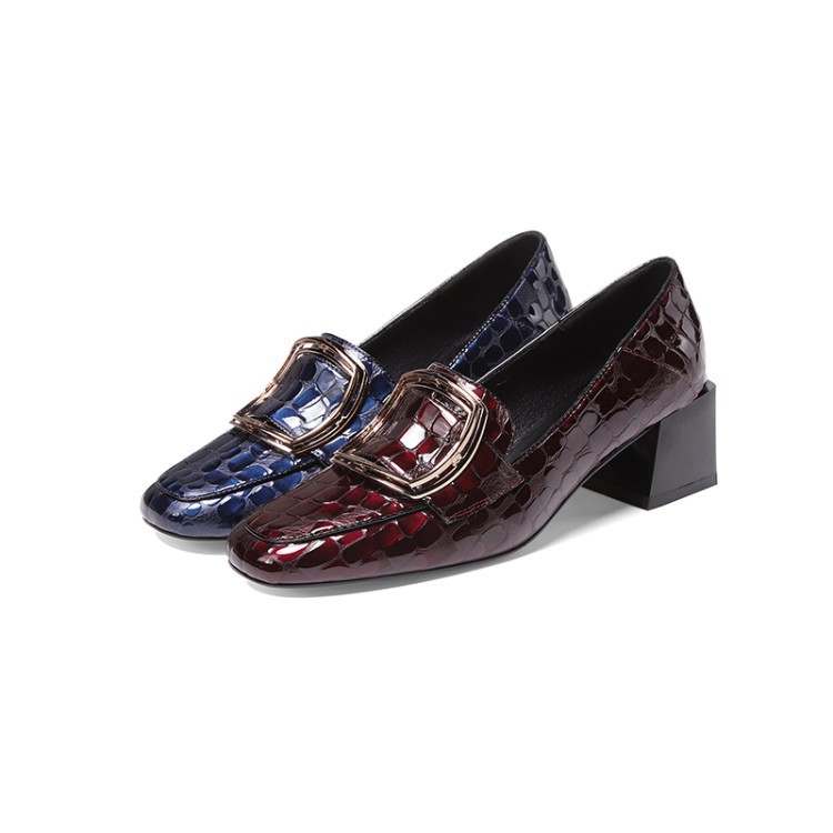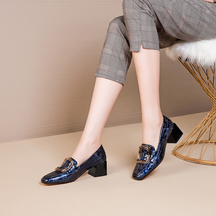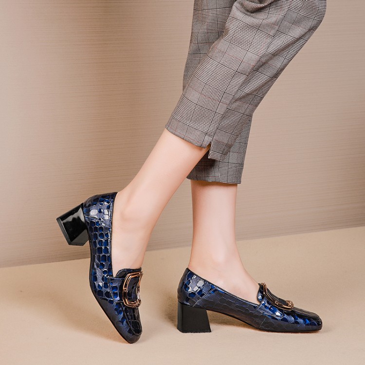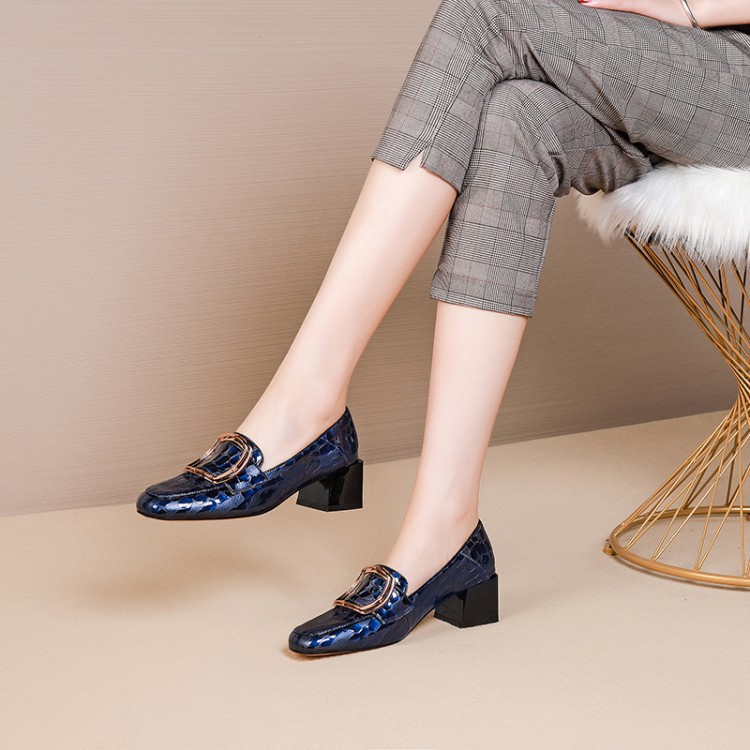 OLD-7127女粗跟中跟方头百搭浅口时尚复古气质休闲女鞋