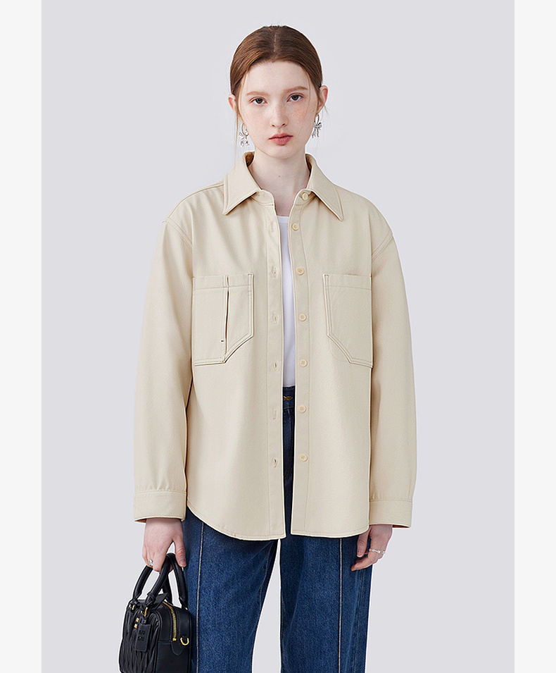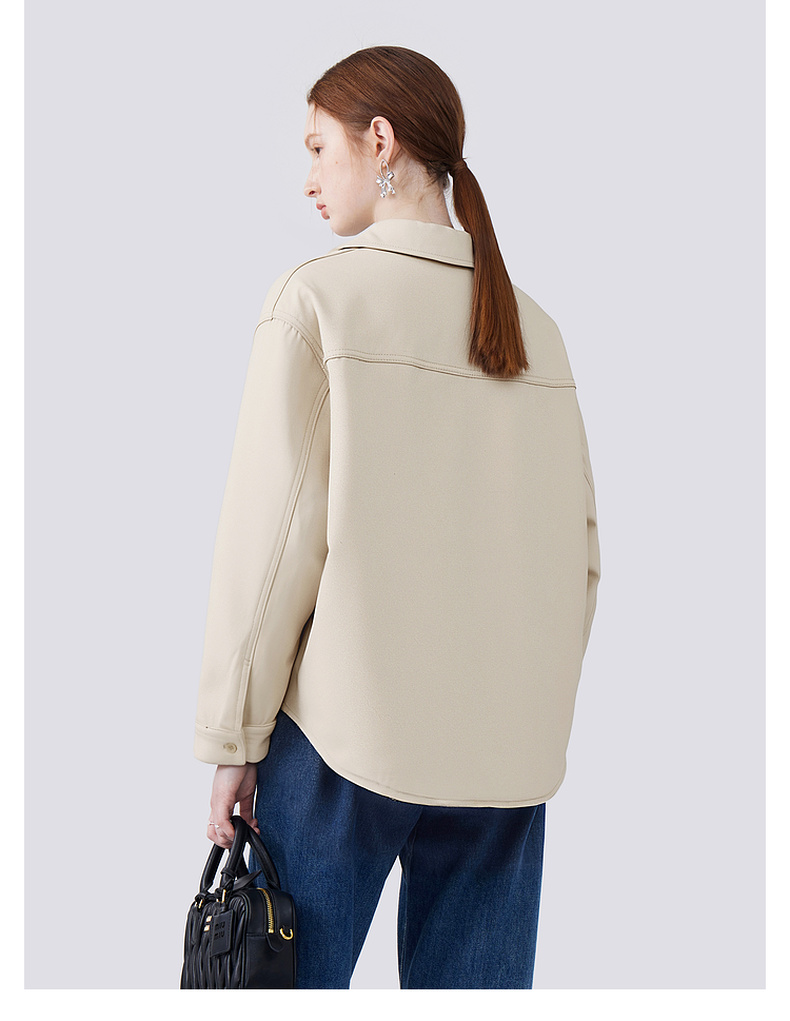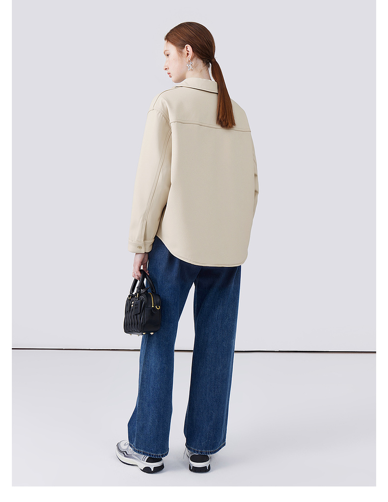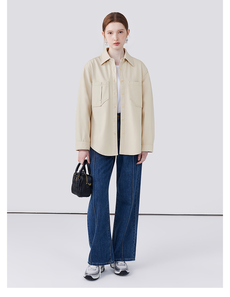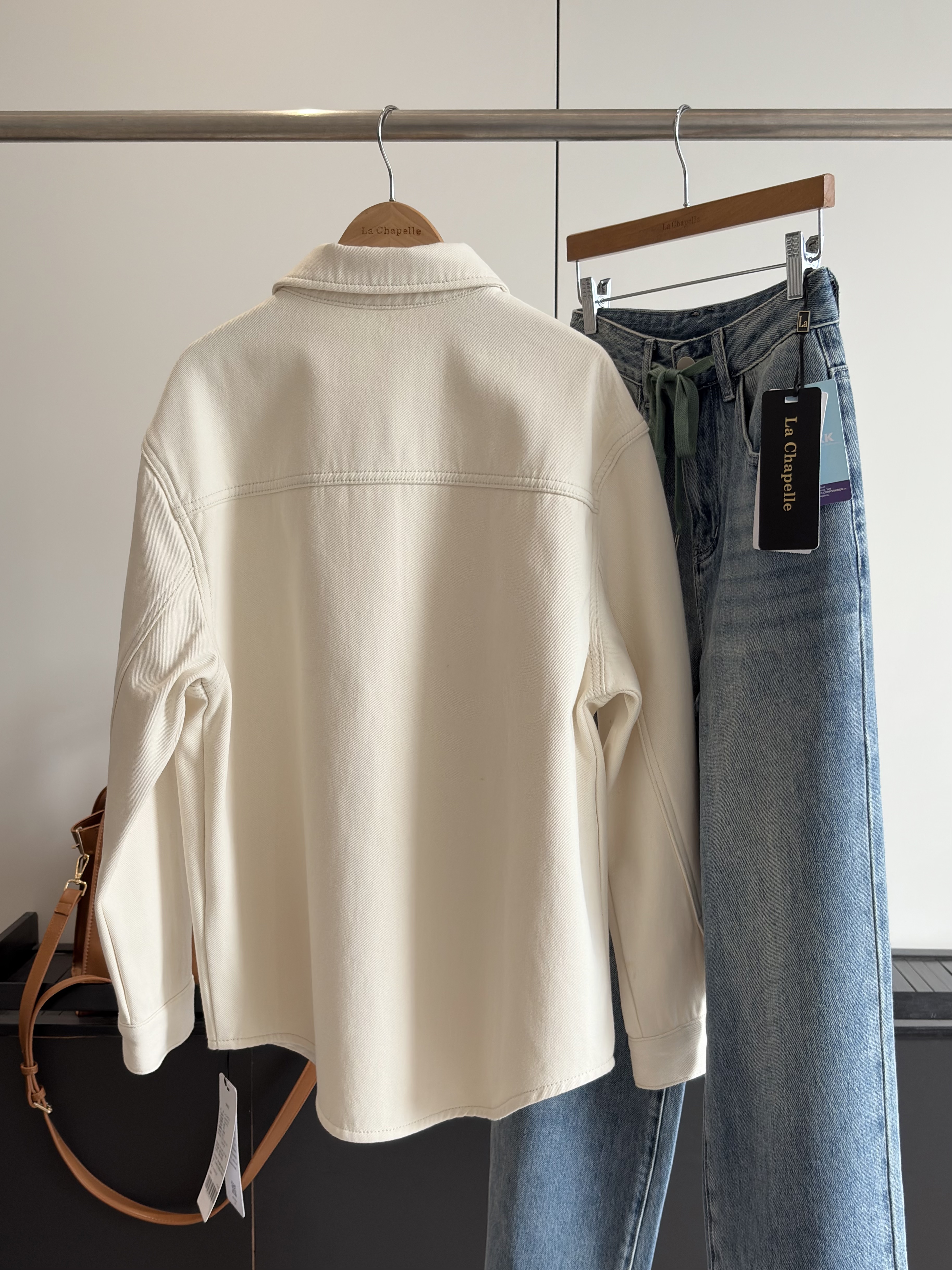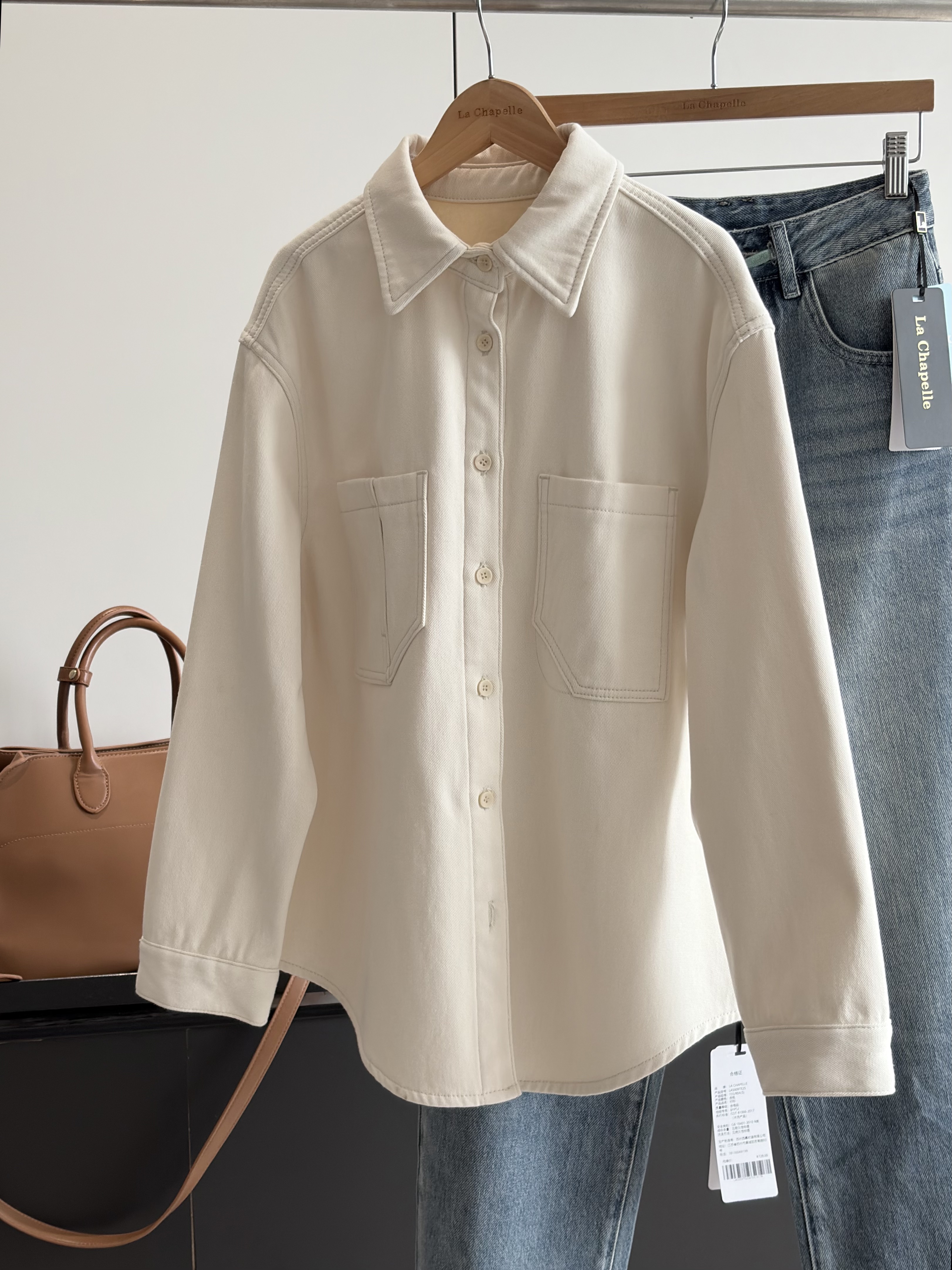 会员福利【加绒!衬衫式牛仔外套】拉夏贝尔/La Chapelle设计感双口袋翻领纯棉加绒牛仔衬衫百搭外套女