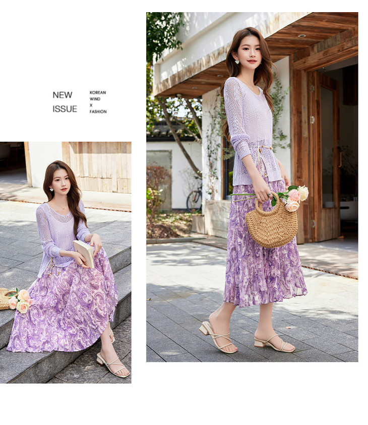 2026夏季时尚气质新款潮流针织衫印花修身半身裙两件套ABS26018 商品图0