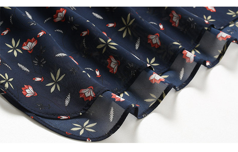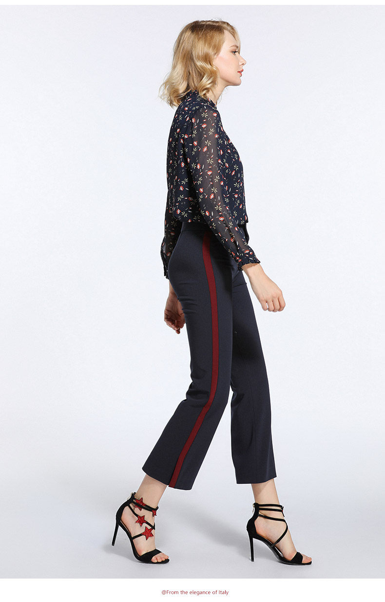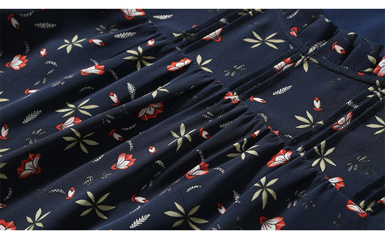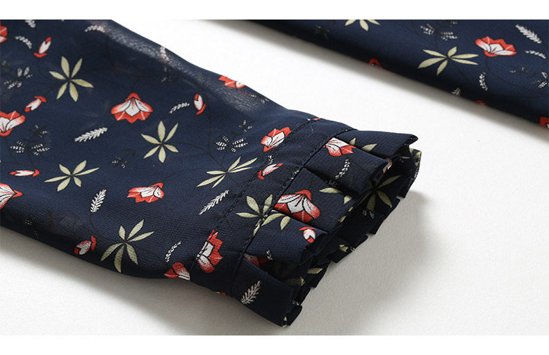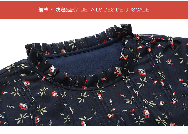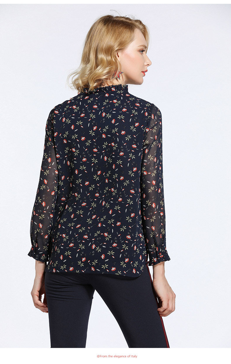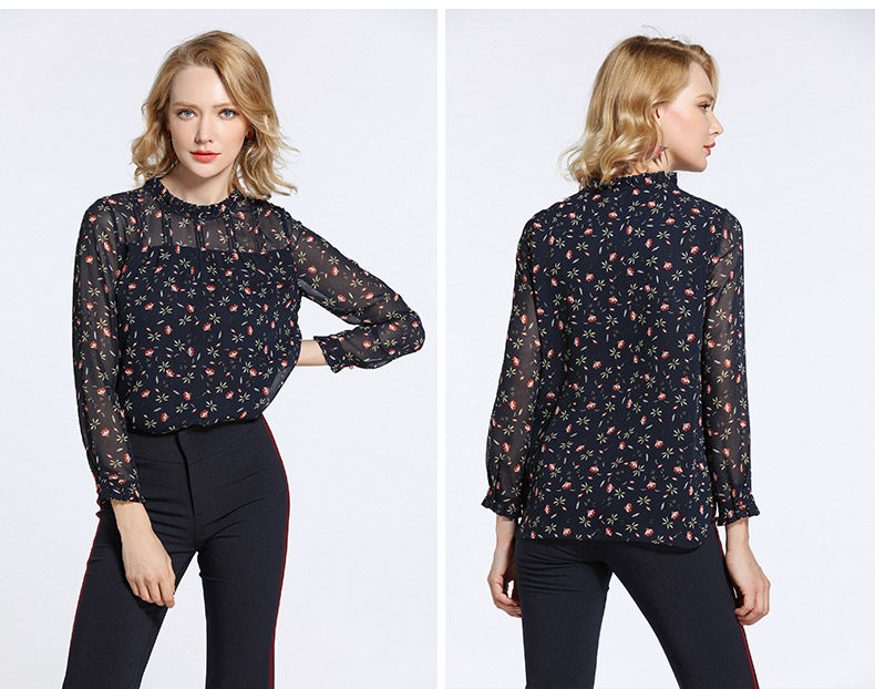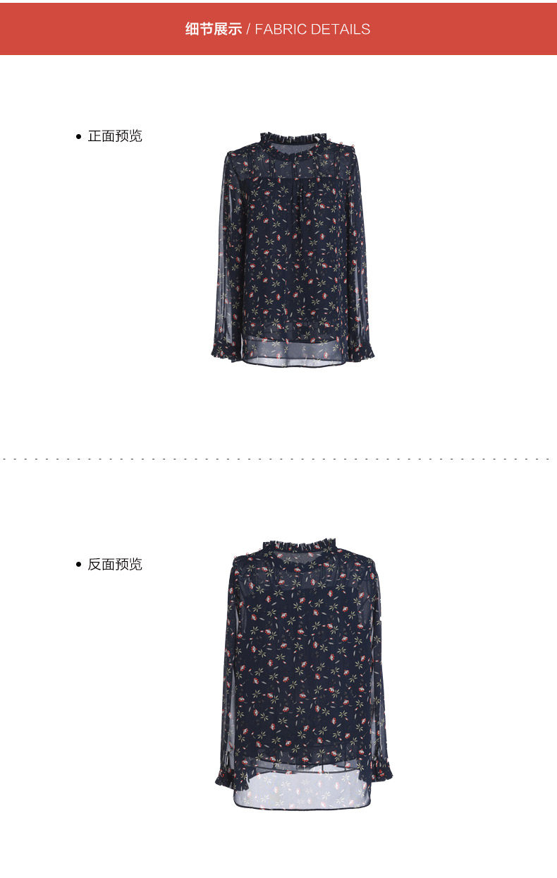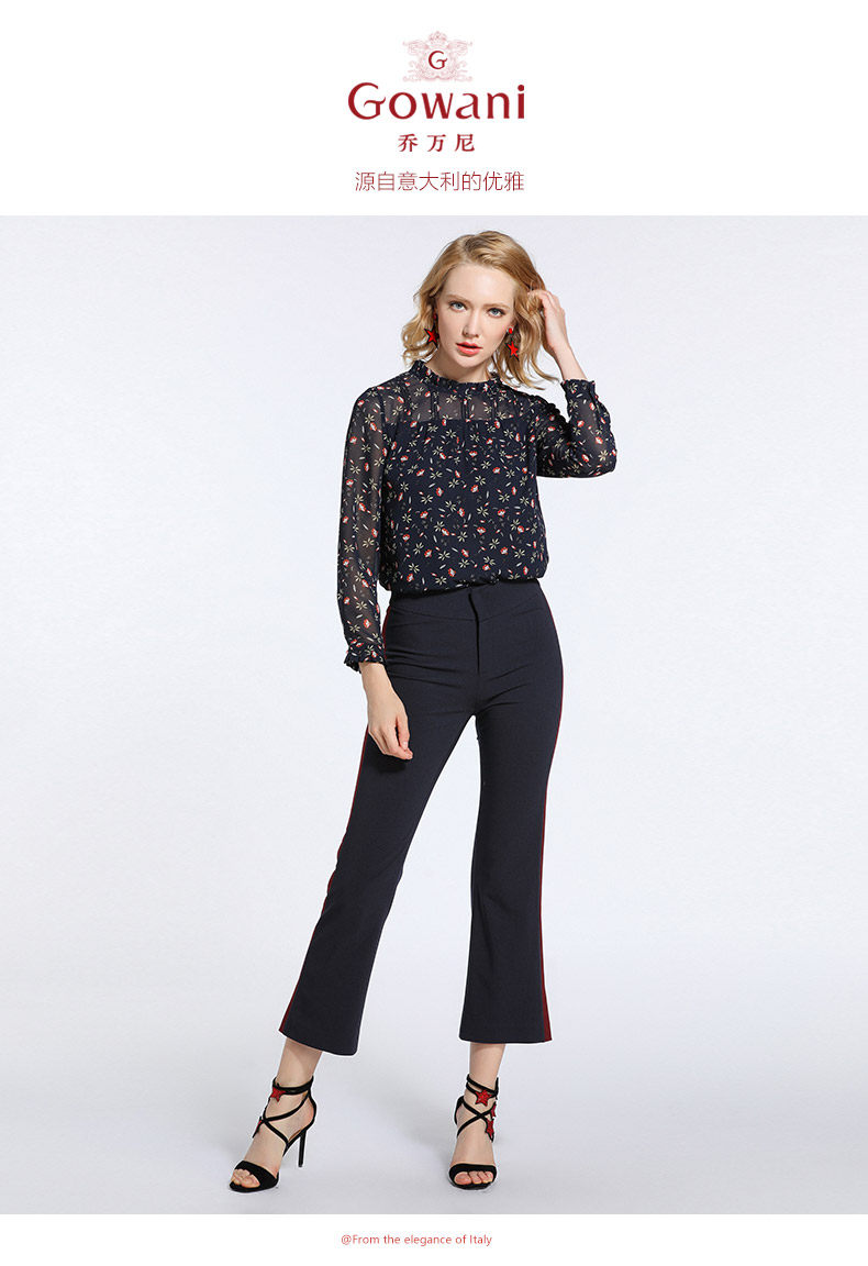乔万尼春装女上衣时尚气质直筒立领小碎花长袖雪纺衬衫EB3C213