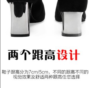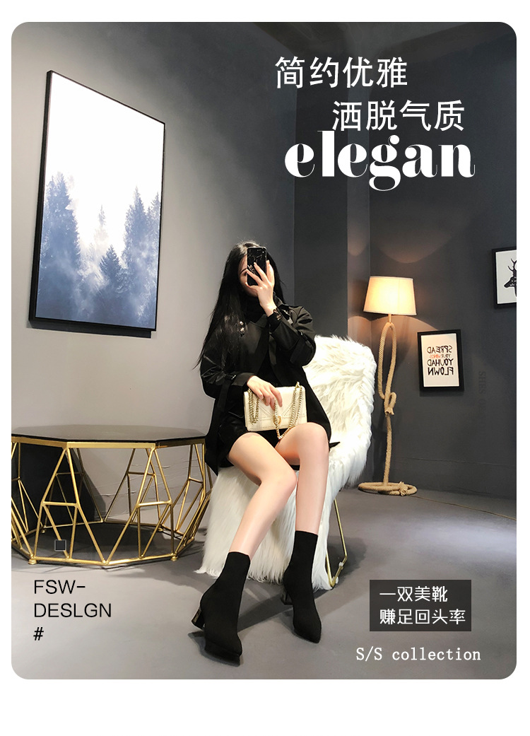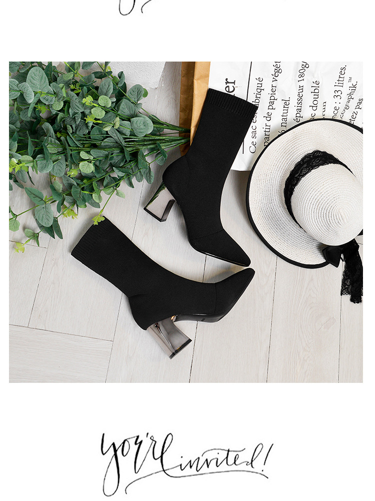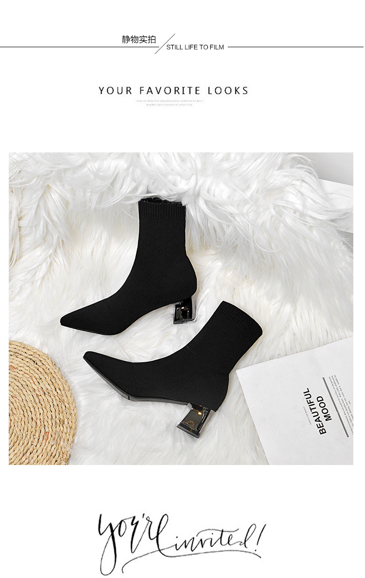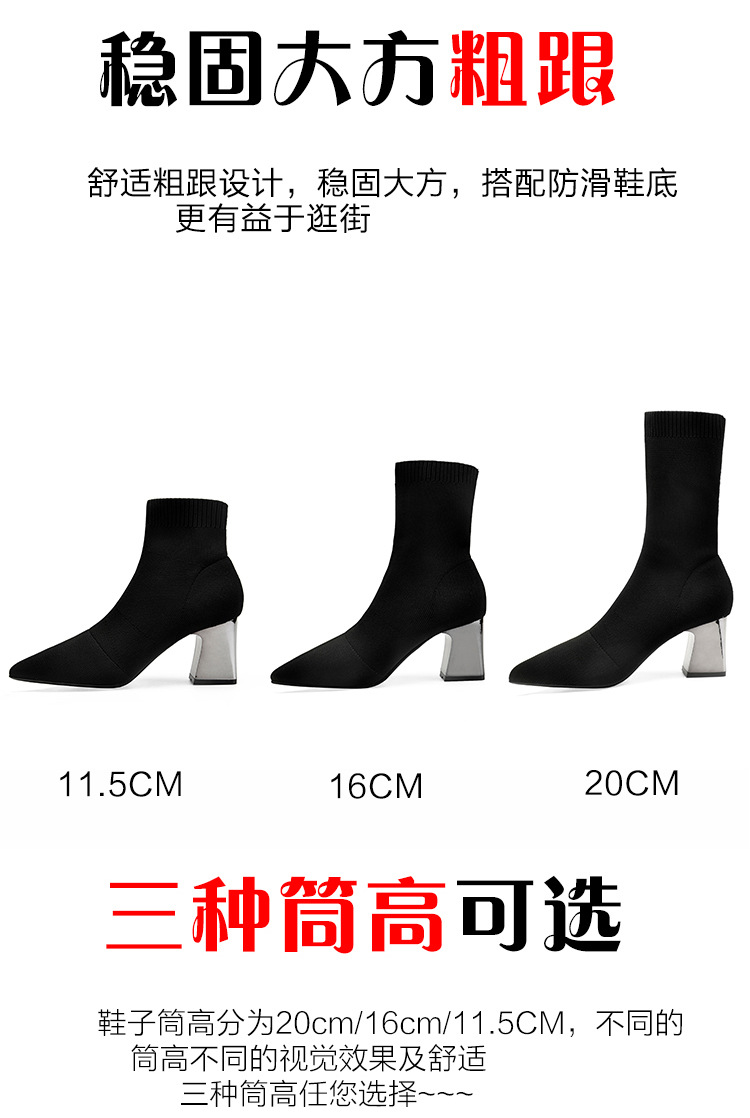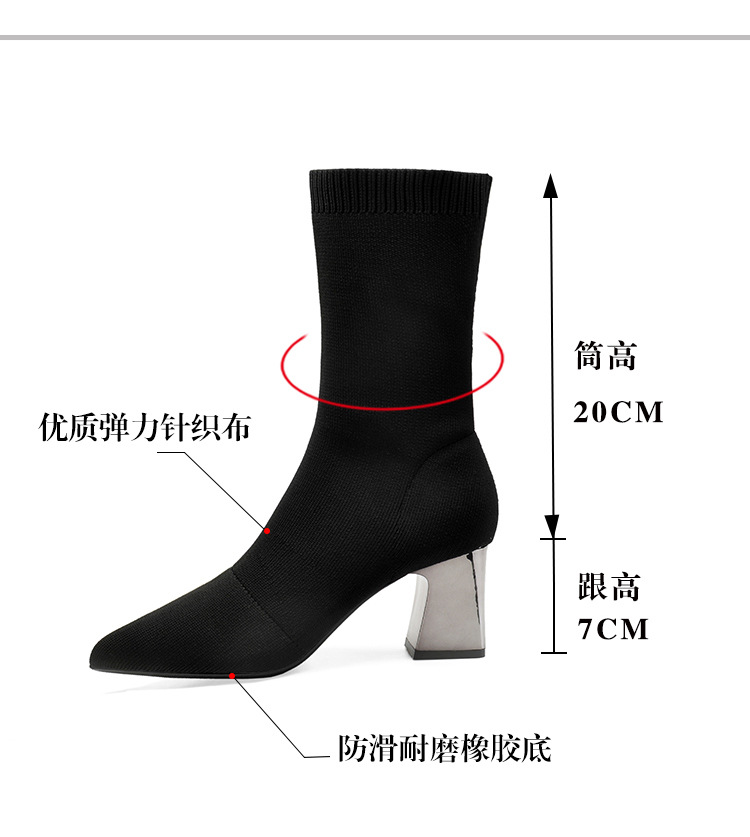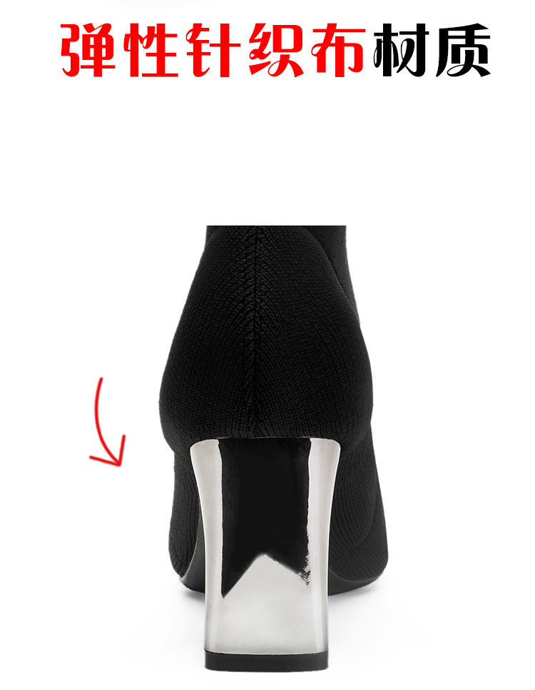MS-秋冬针织电镀粗跟中筒女士马丁靴