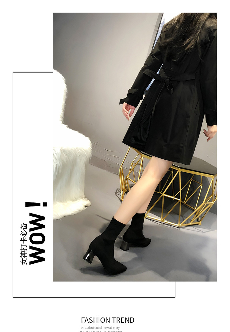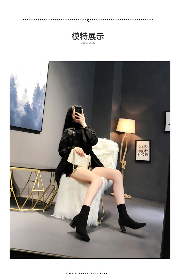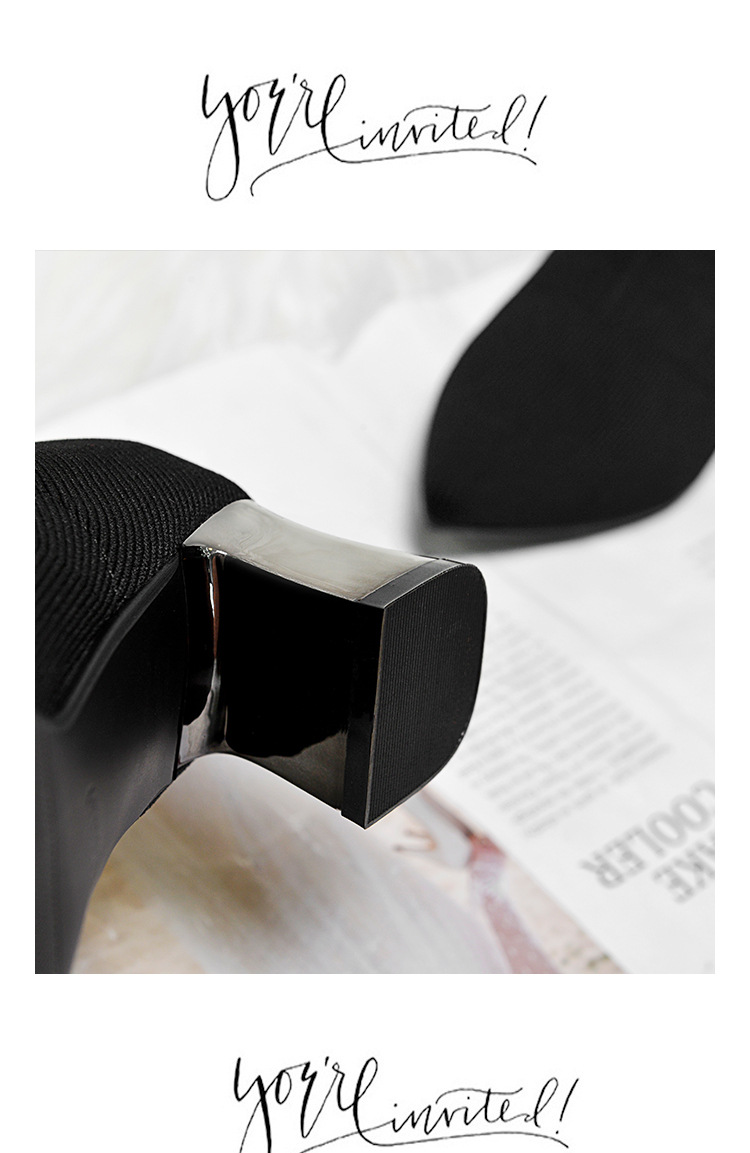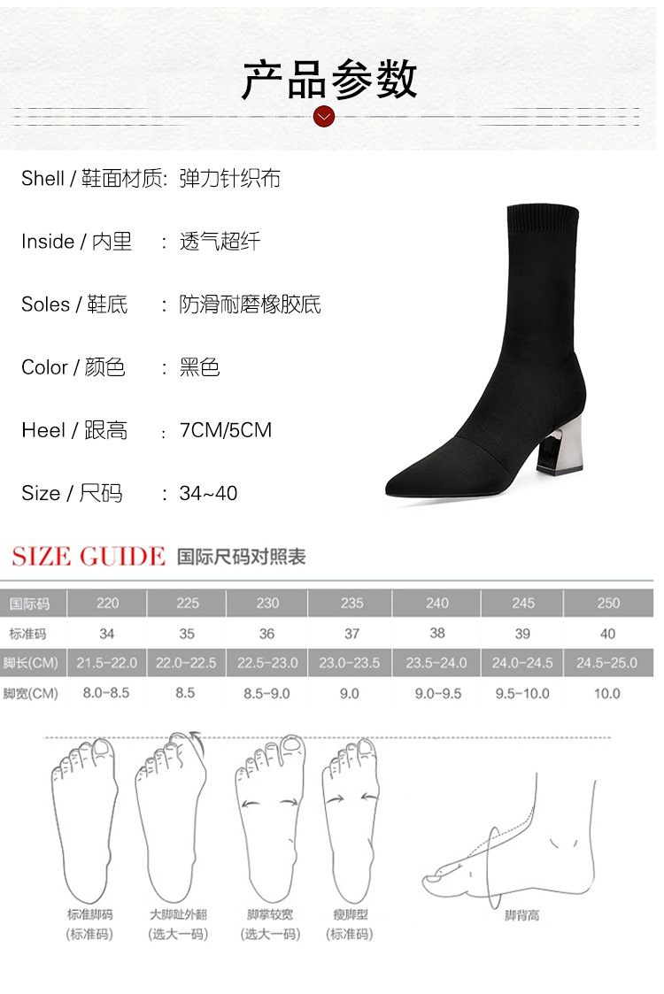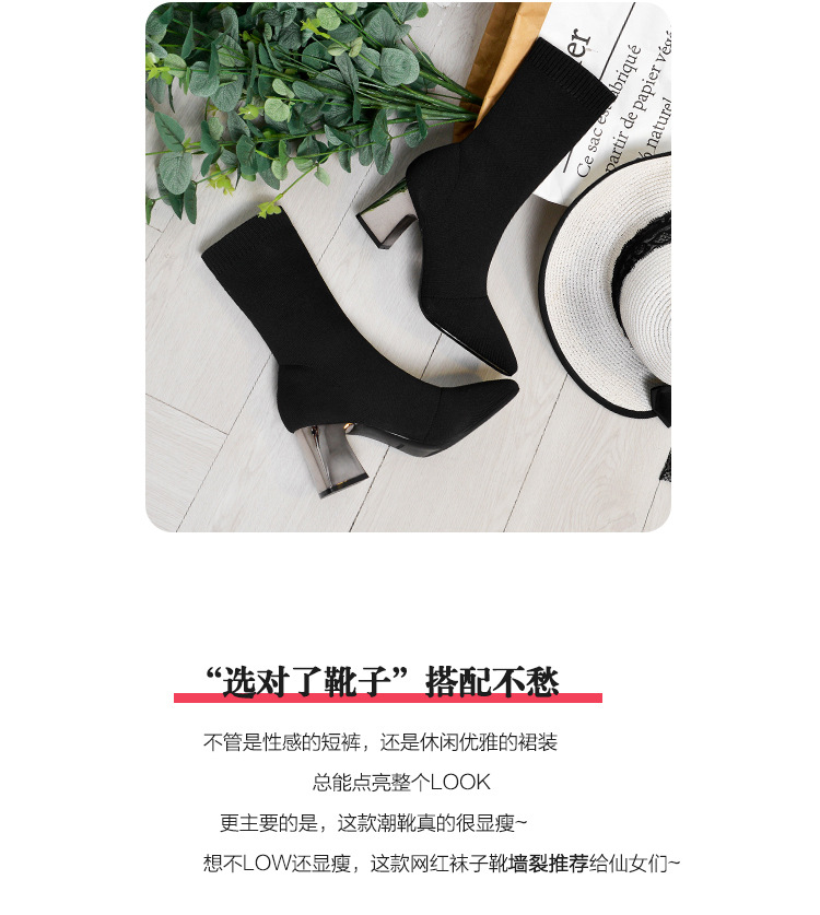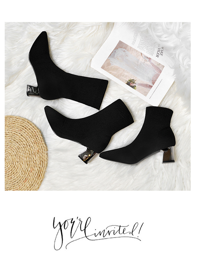 MS-秋冬针织电镀粗跟中筒女士马丁靴