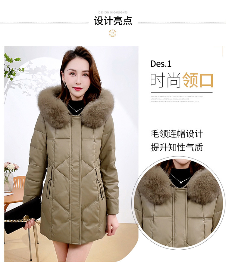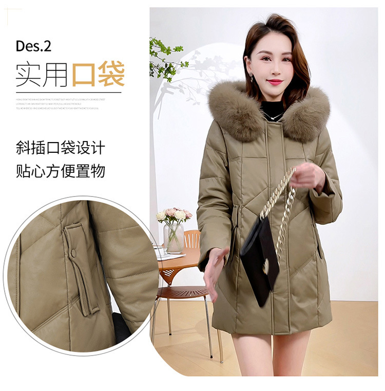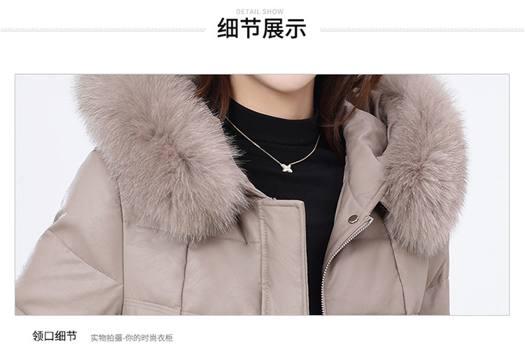 QYM 4B16加厚保暖PU皮棉服中长款时尚洋气大毛领皮棉衣外套 商品图4