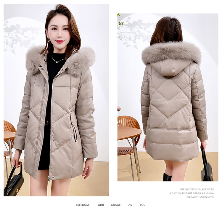 QYM 4B16加厚保暖PU皮棉服中长款时尚洋气大毛领皮棉衣外套