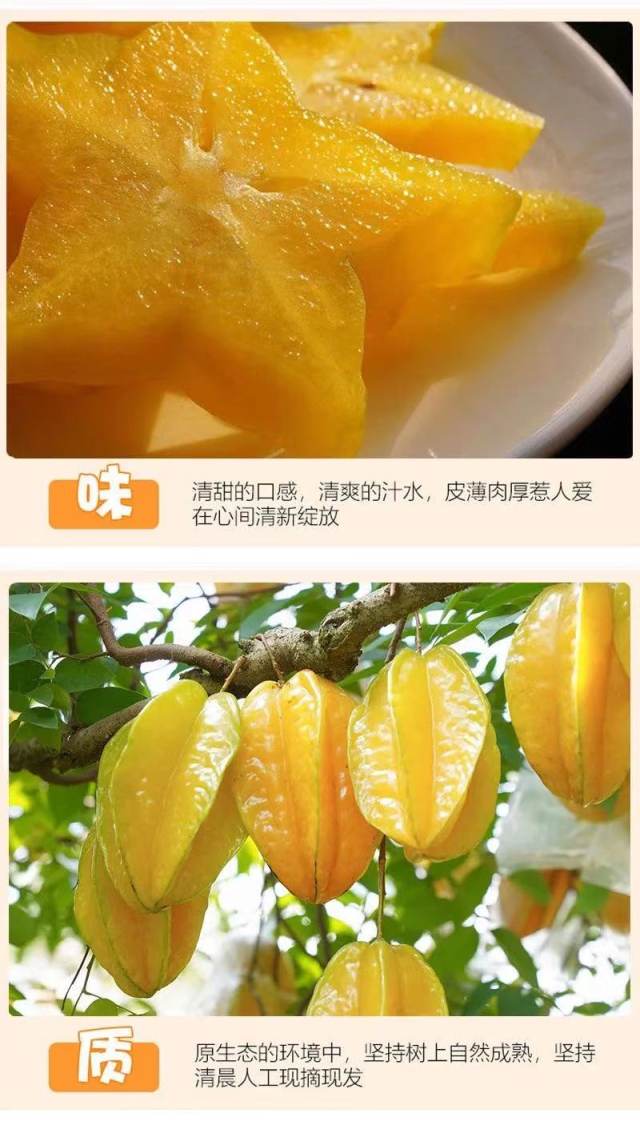 顺丰包邮小甜星杨桃,树上熟杨桃汁水四溢果香浓郁基地直邮