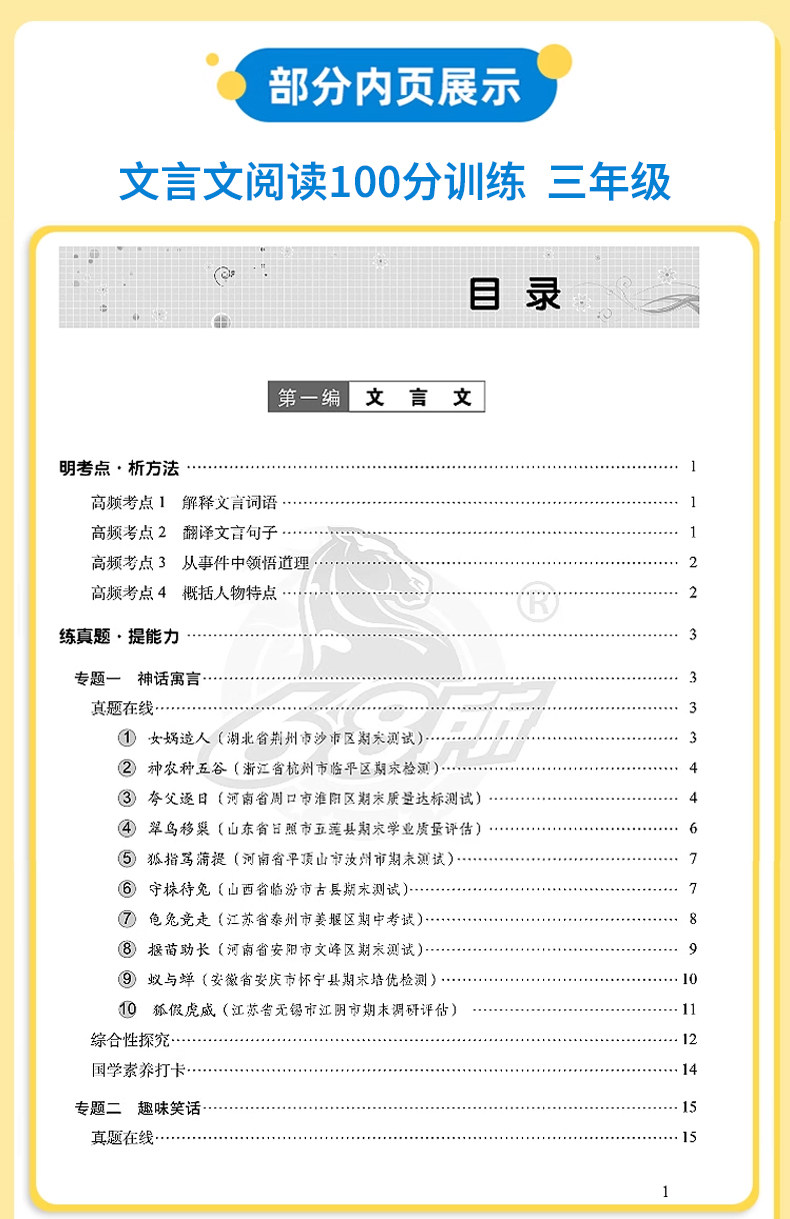 2024新小学名校真题真卷阅读文言文阅读100分训练全国通用版真题训练高配考点视频讲解