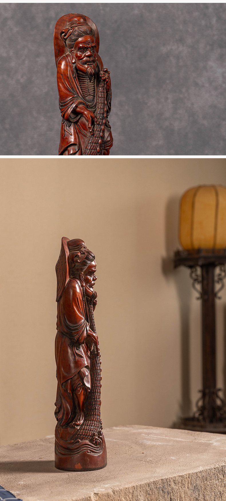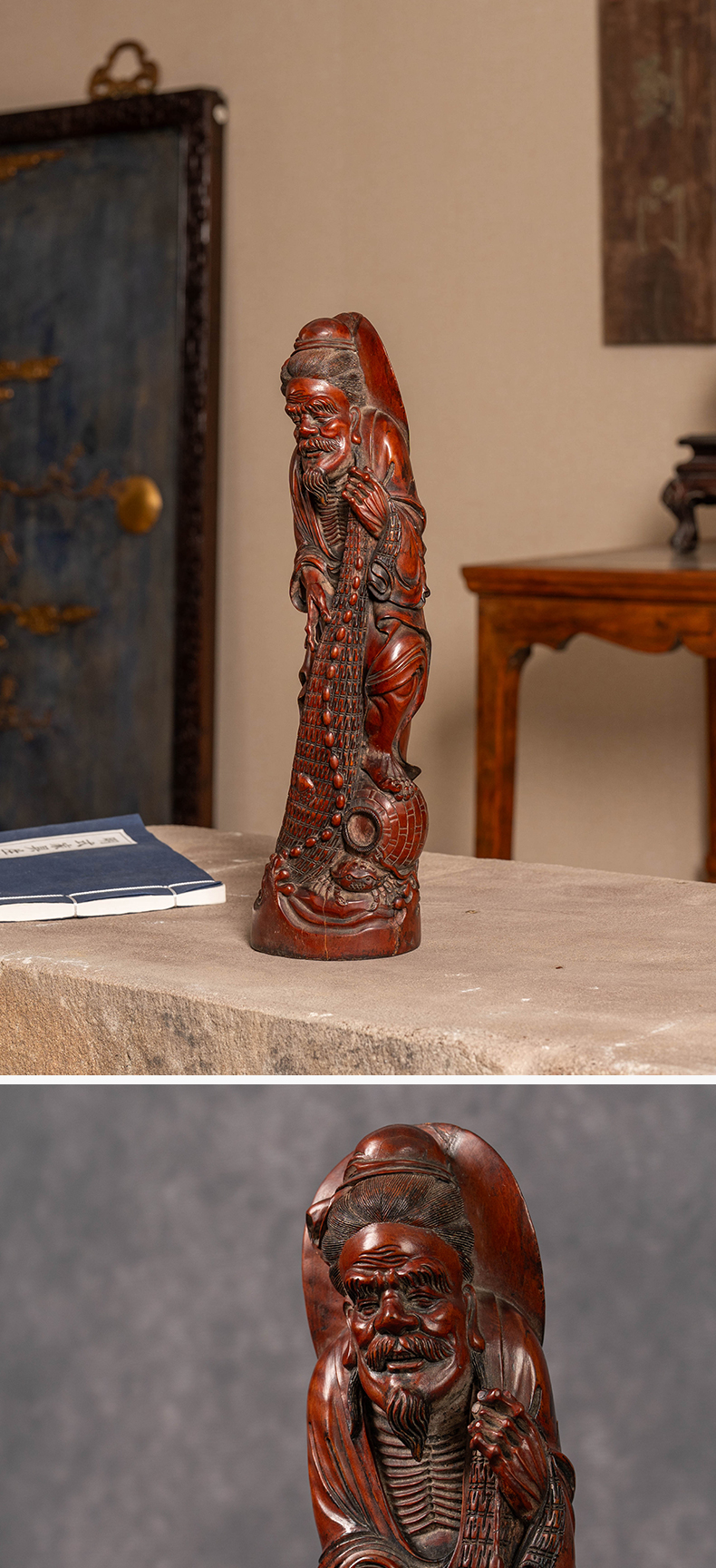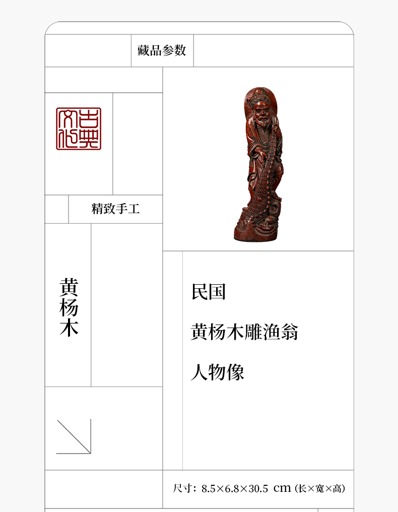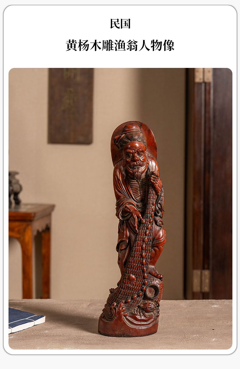 民国 黄杨木雕渔翁人物像