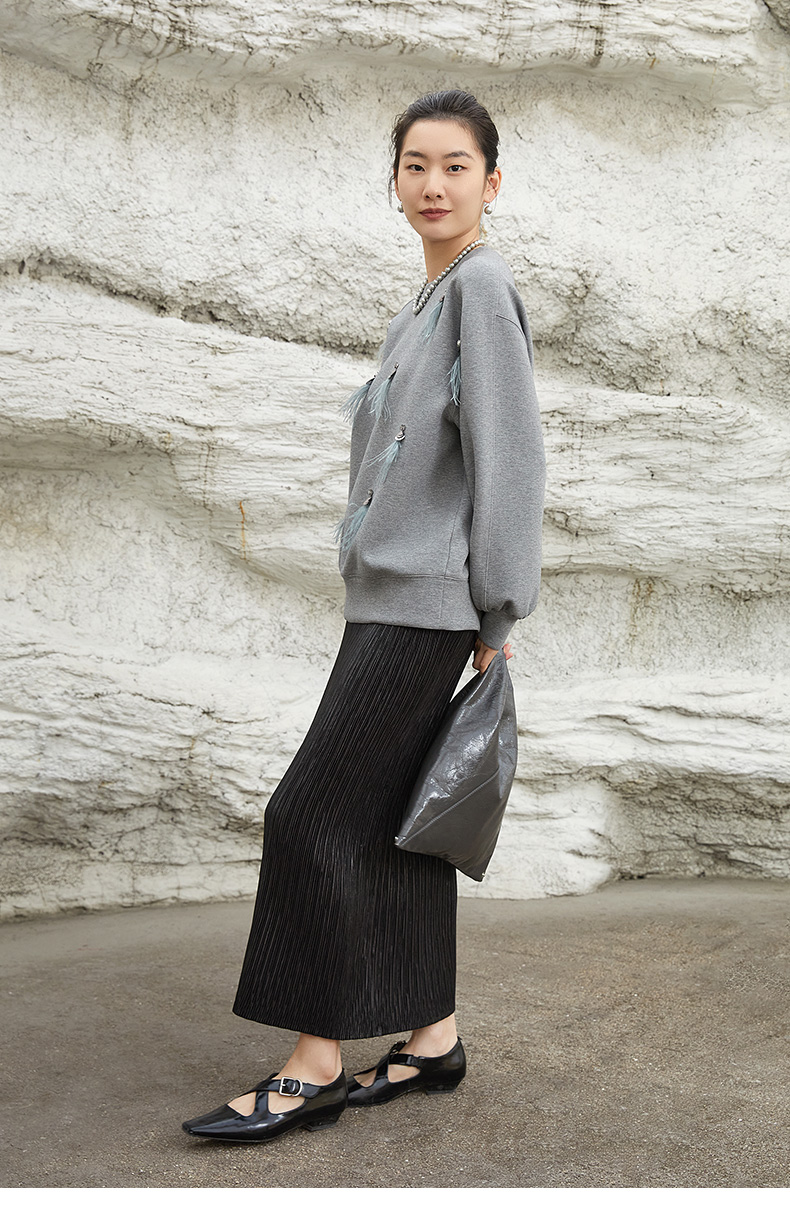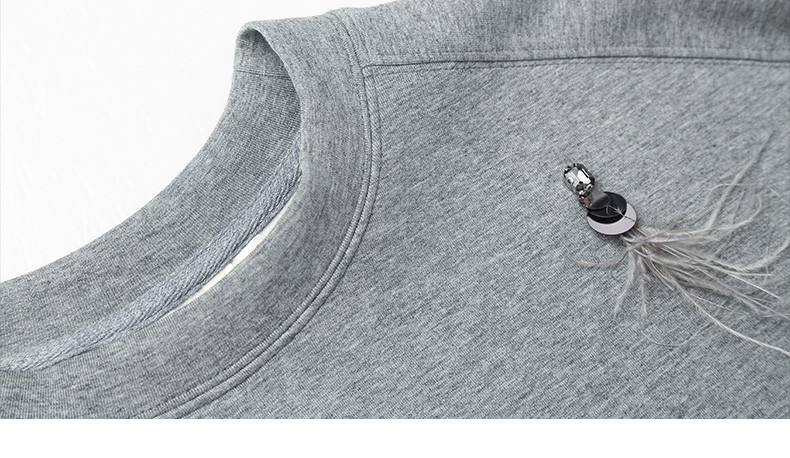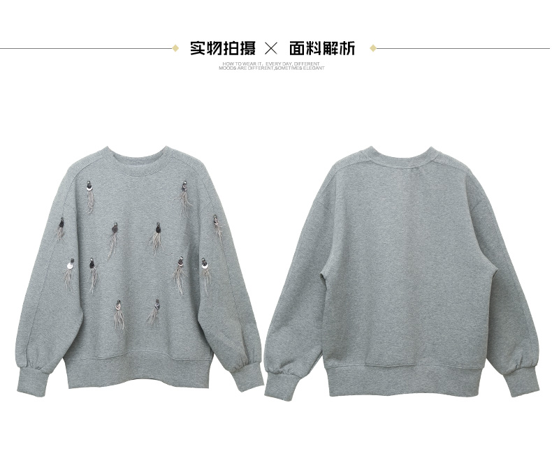 烟灰色流苏亮片装饰卫衣,圆领设计 + 宽松版型 + 软糯质感,解锁冬日出街与休闲的甜酷气质与舒适穿搭