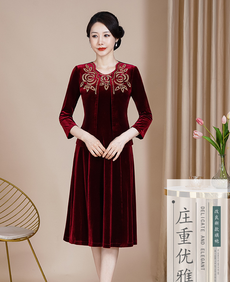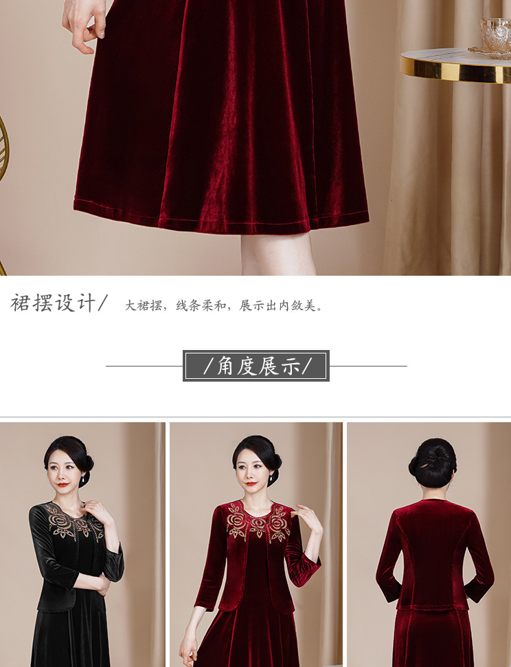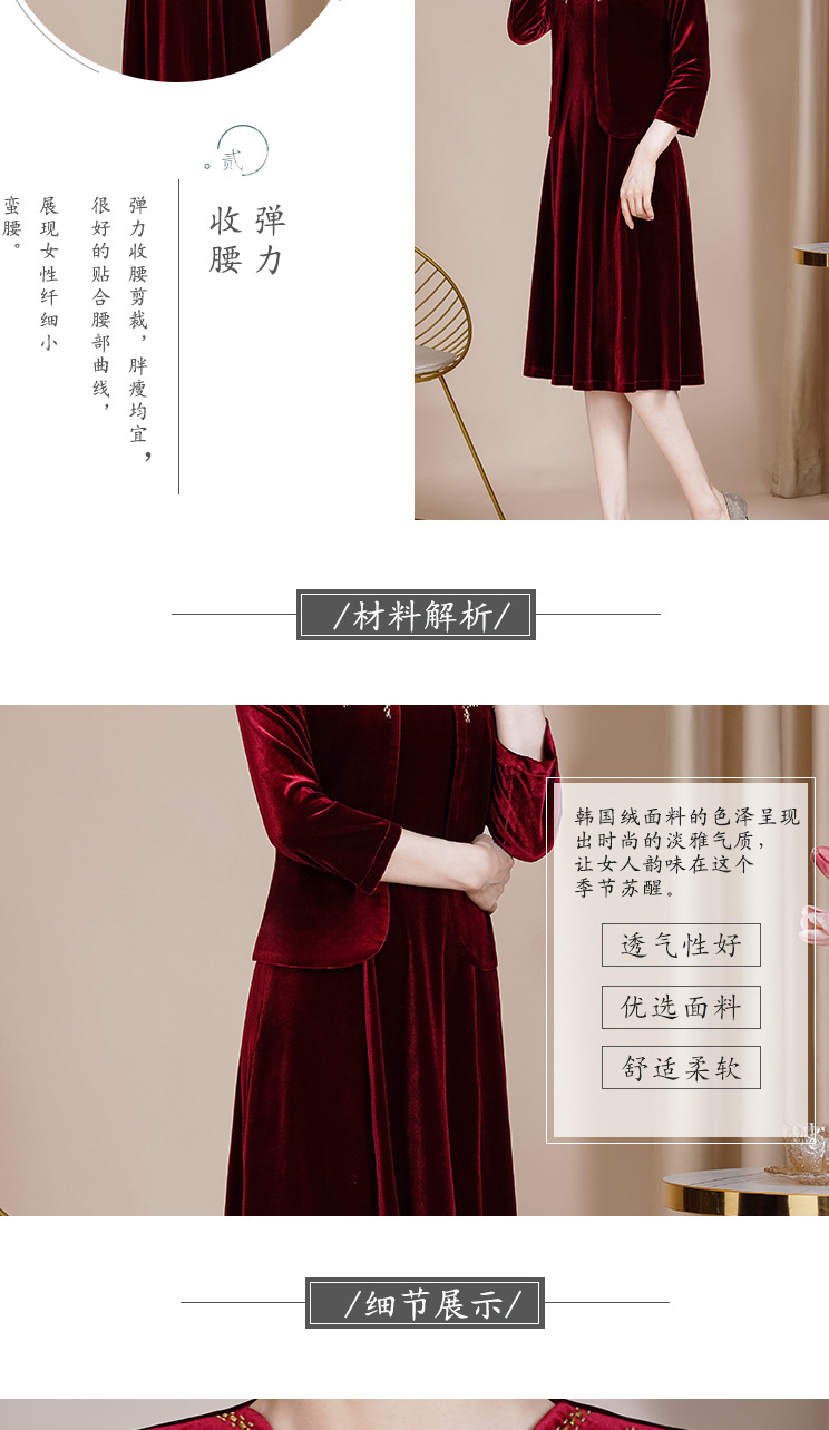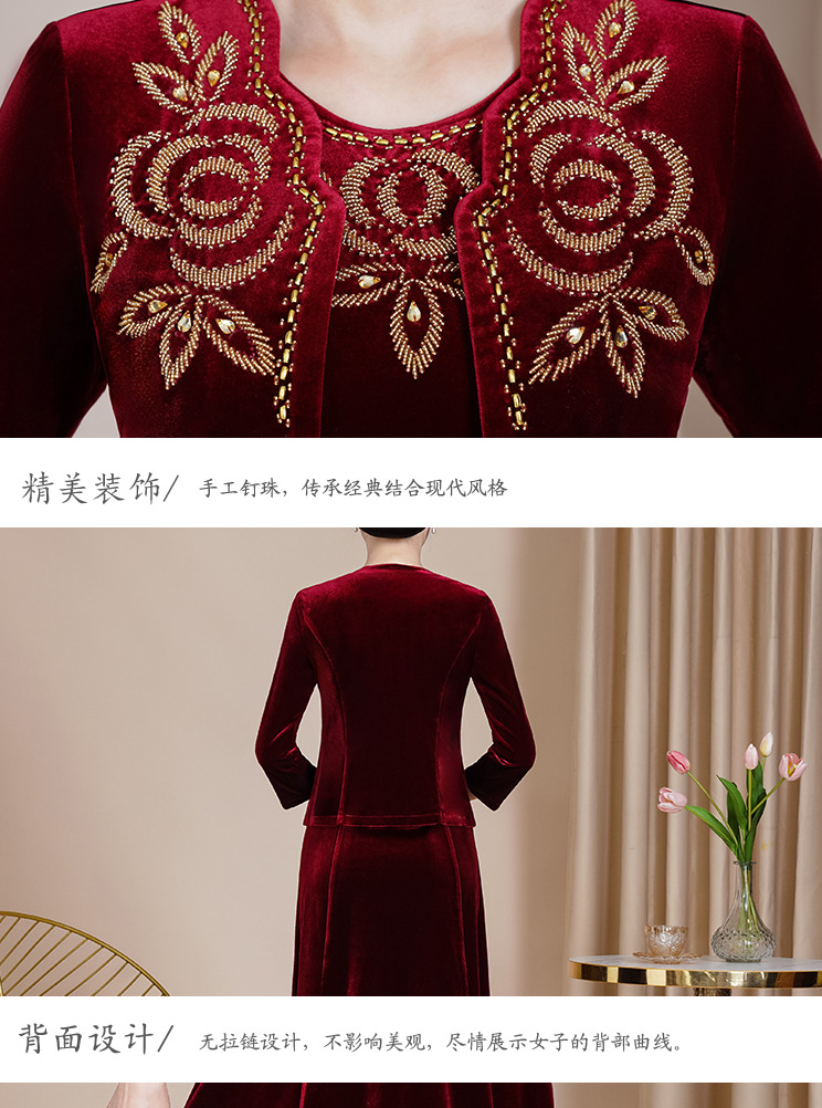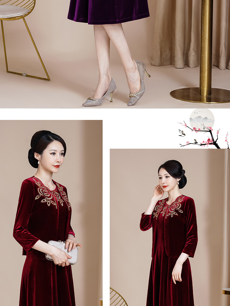 HYX-24-7860秋季新款丝绒旗袍中长款套装百搭外套大摆裙敬酒日常装