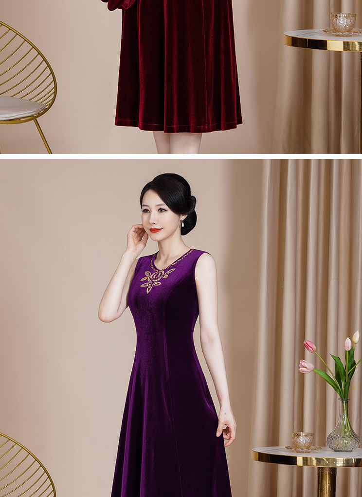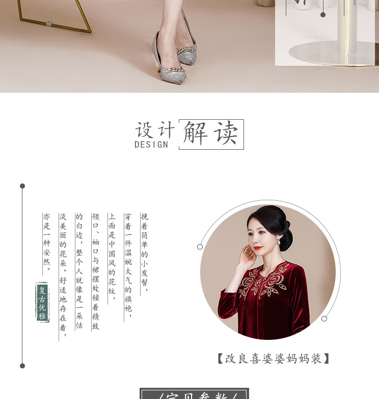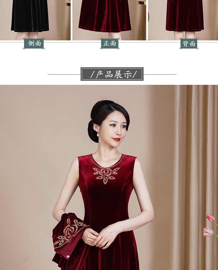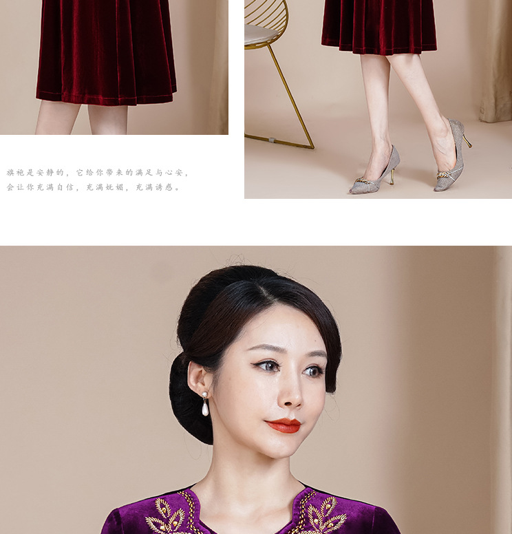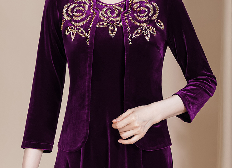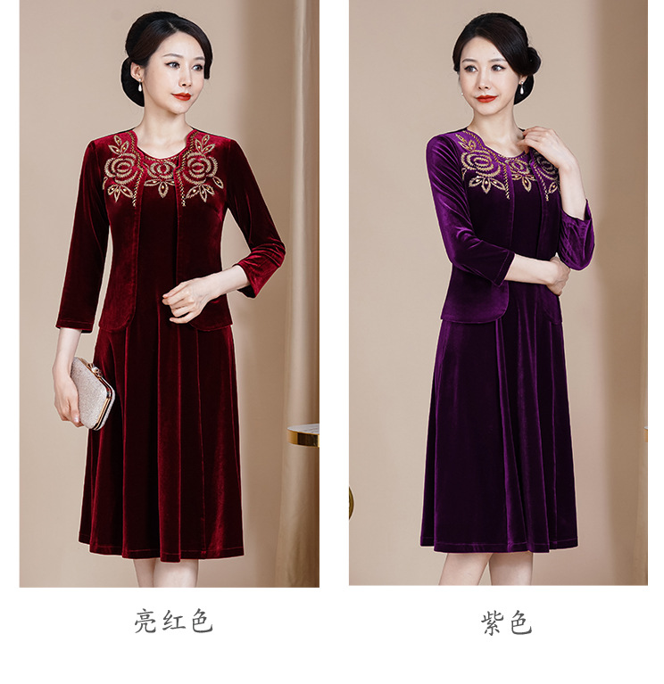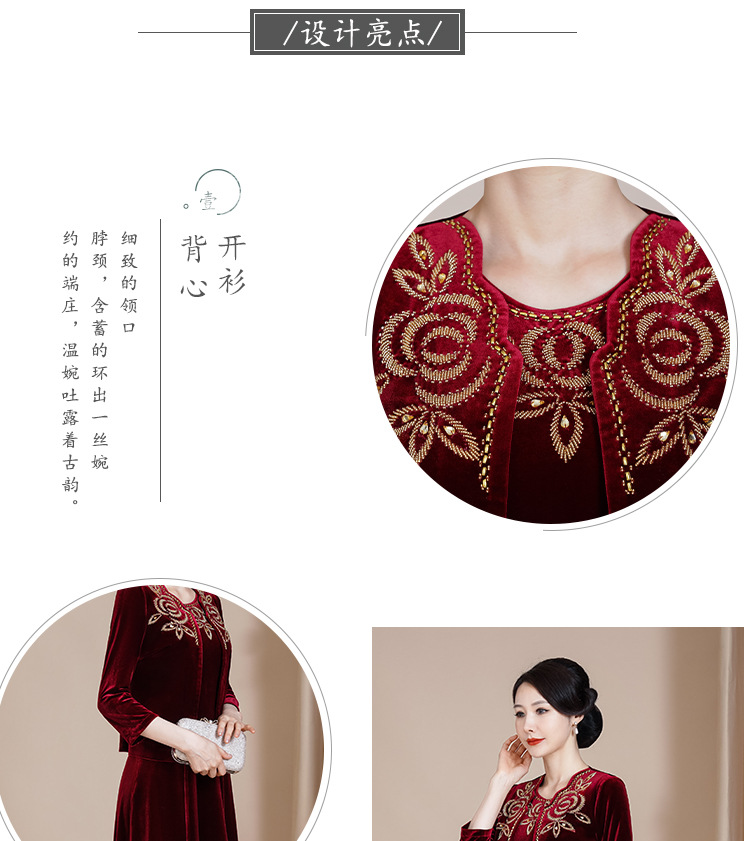 HYX-24-7860秋季新款丝绒旗袍中长款套装百搭外套大摆裙敬酒日常装