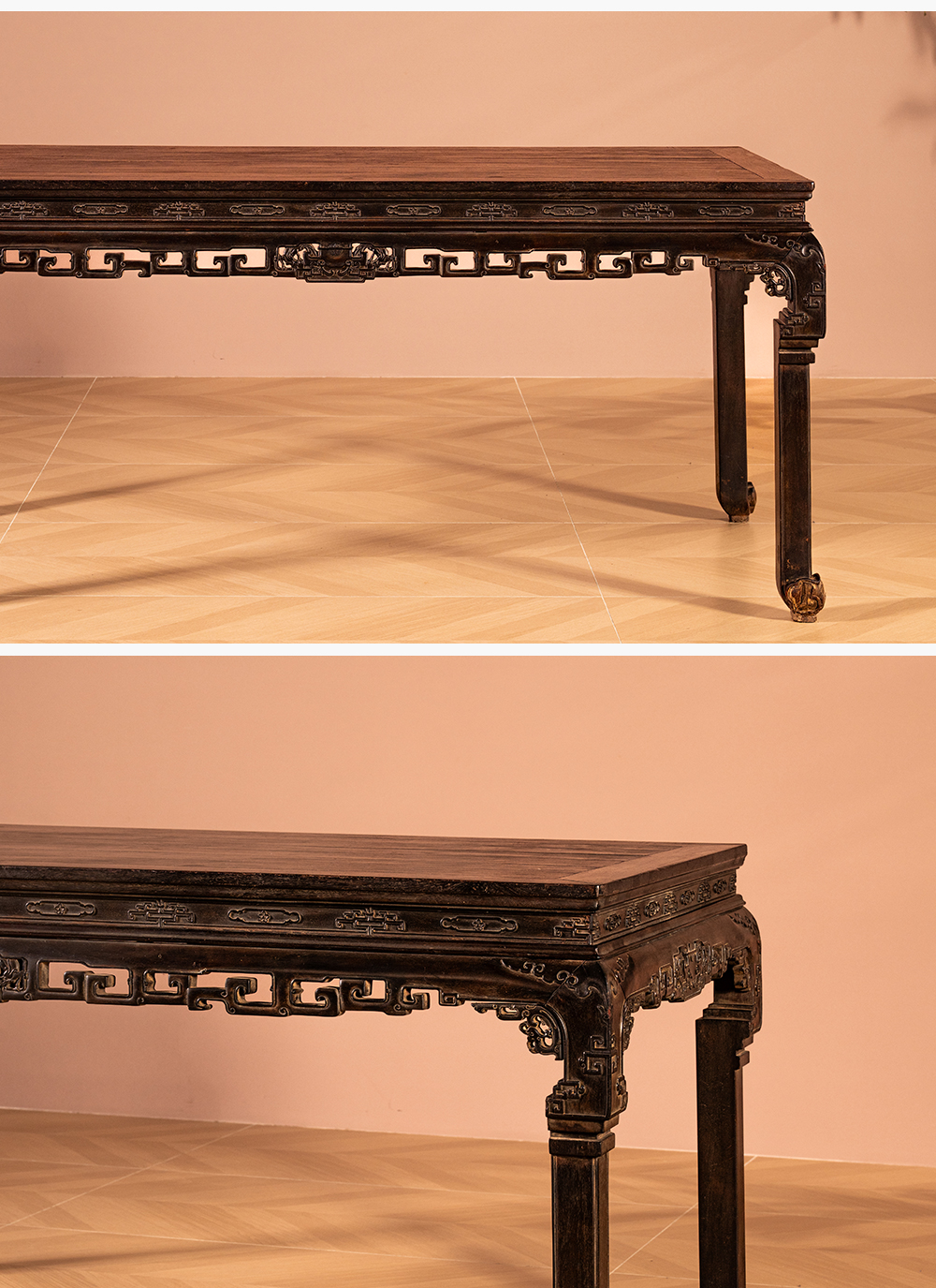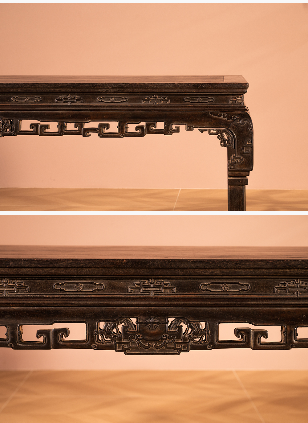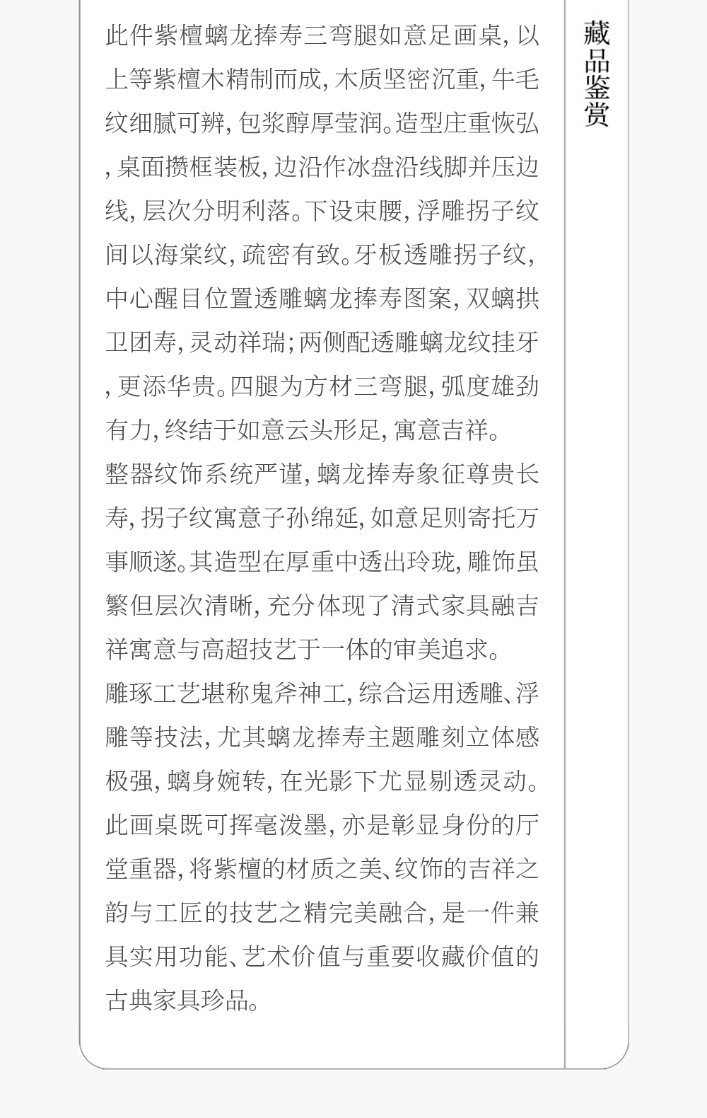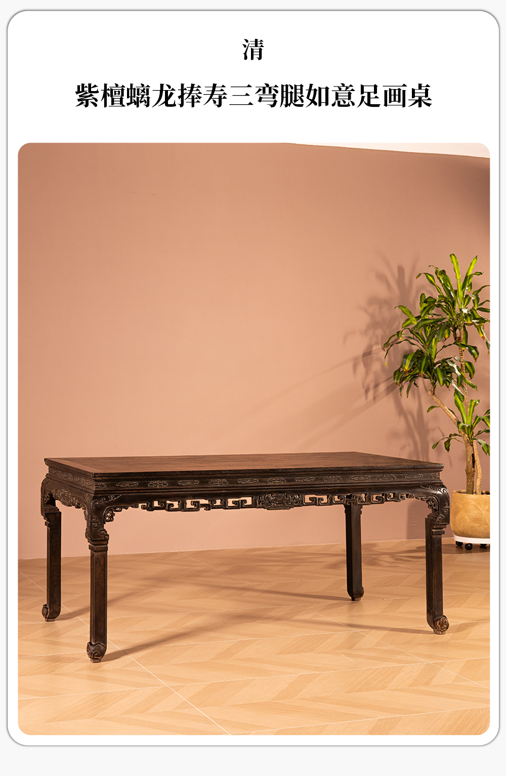 清 紫檀螭龙捧寿三弯腿如意足画桌