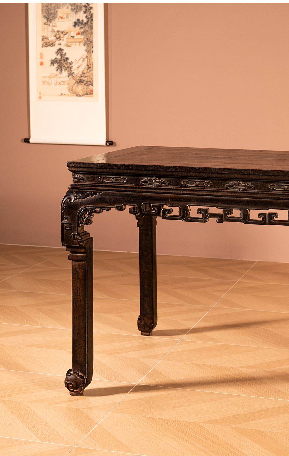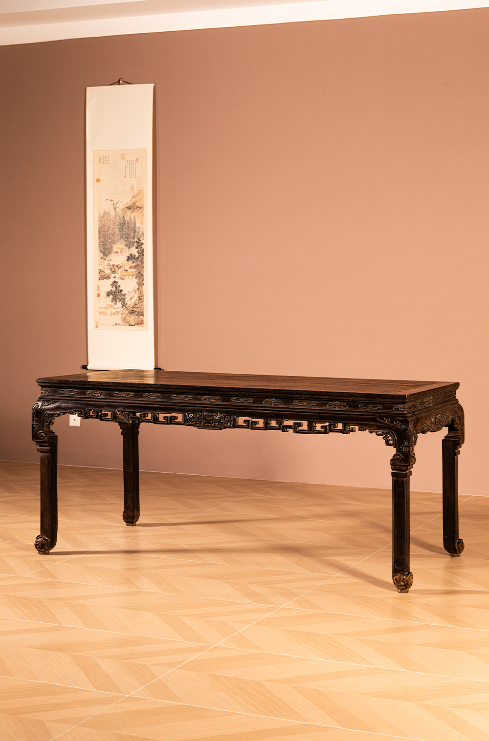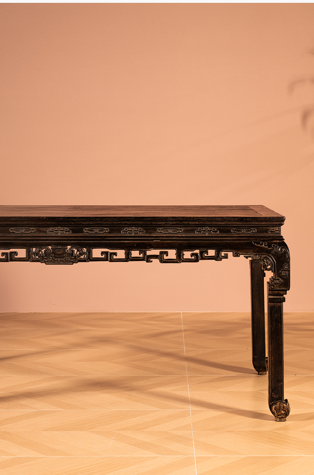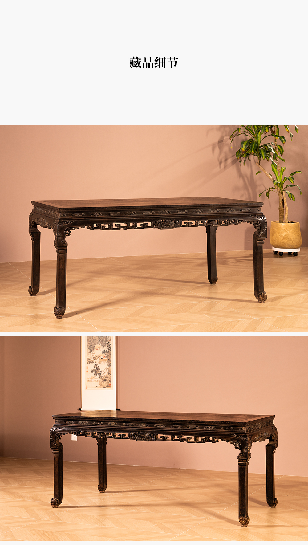 清 紫檀螭龙捧寿三弯腿如意足画桌