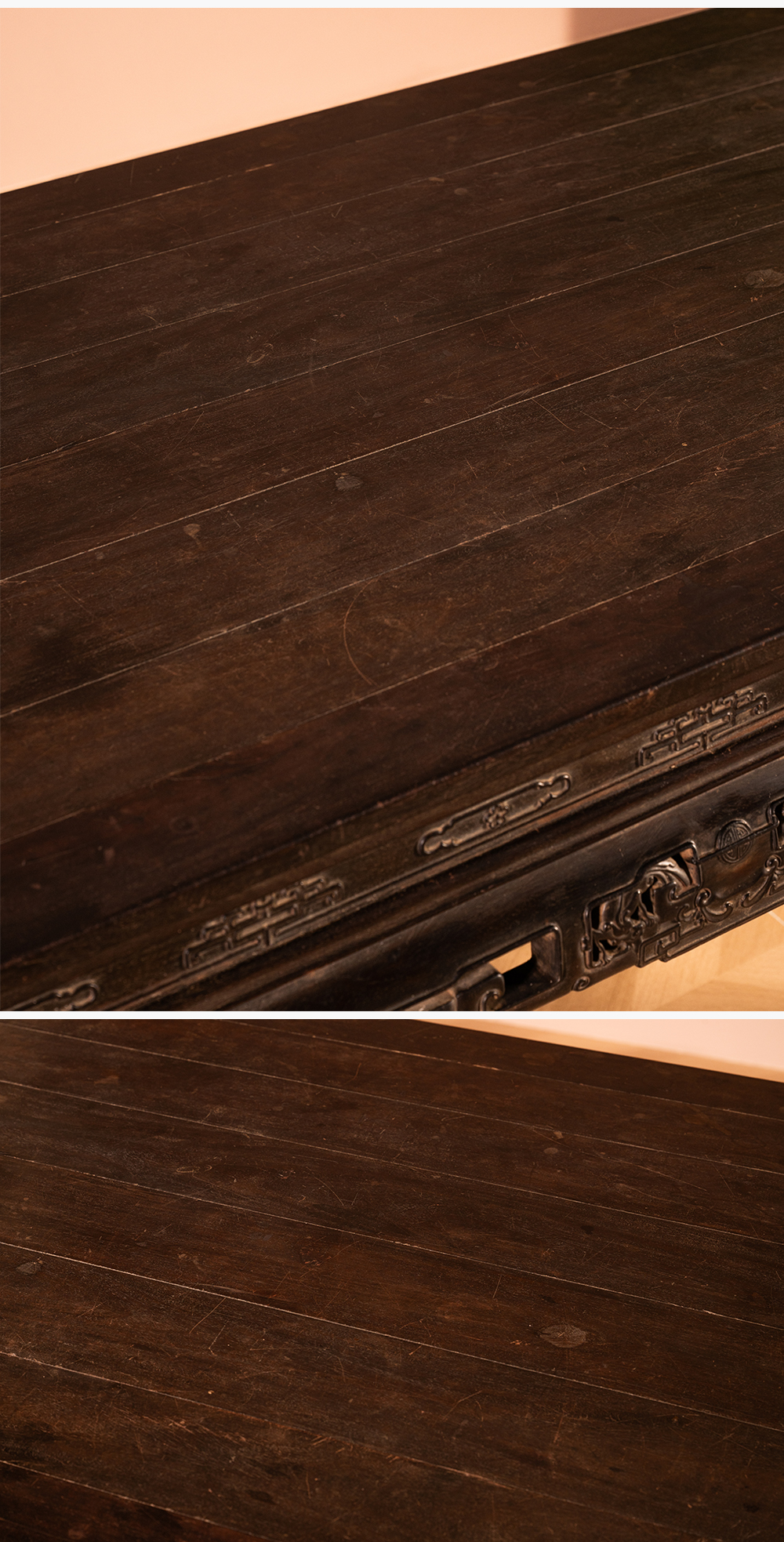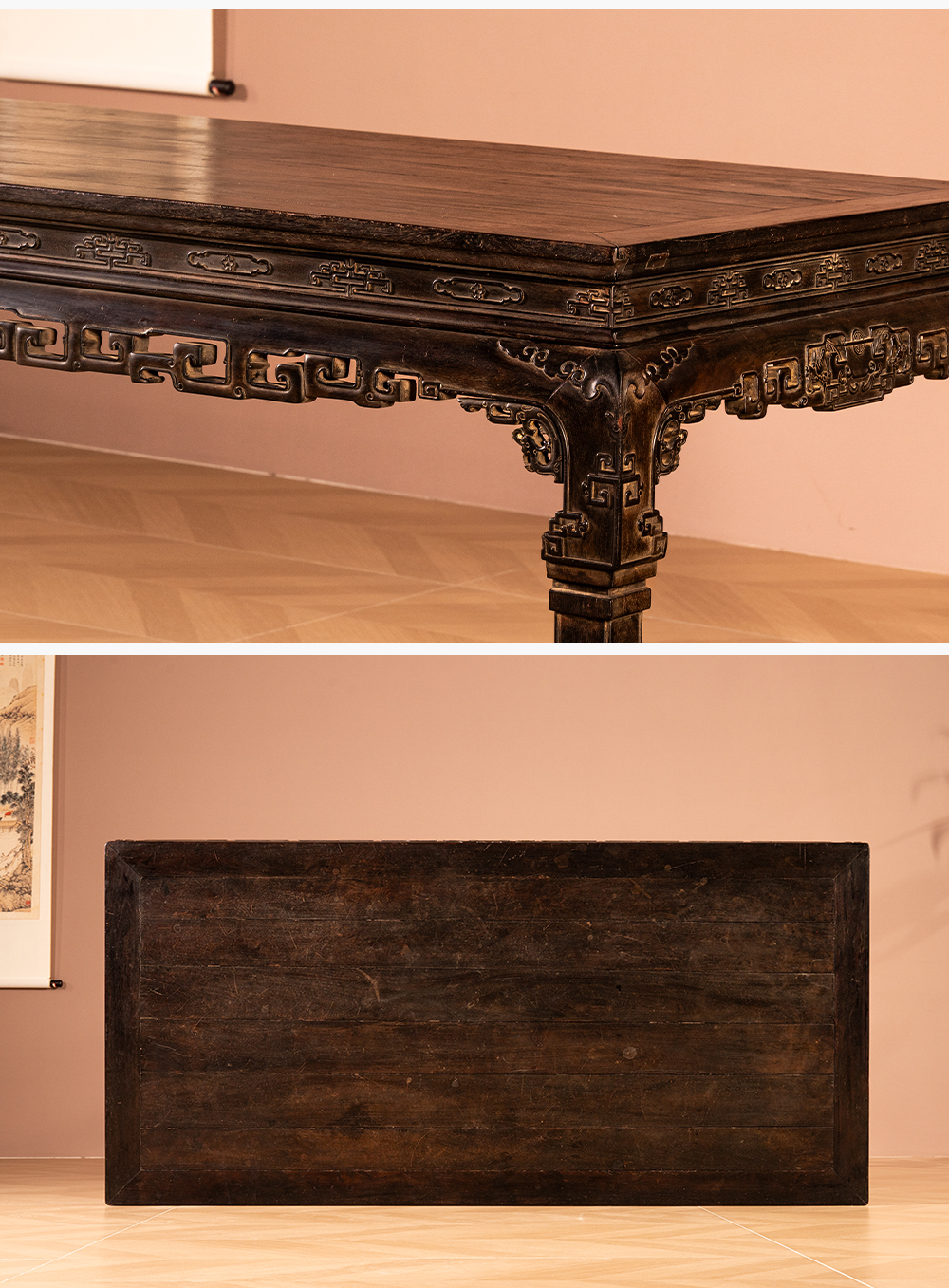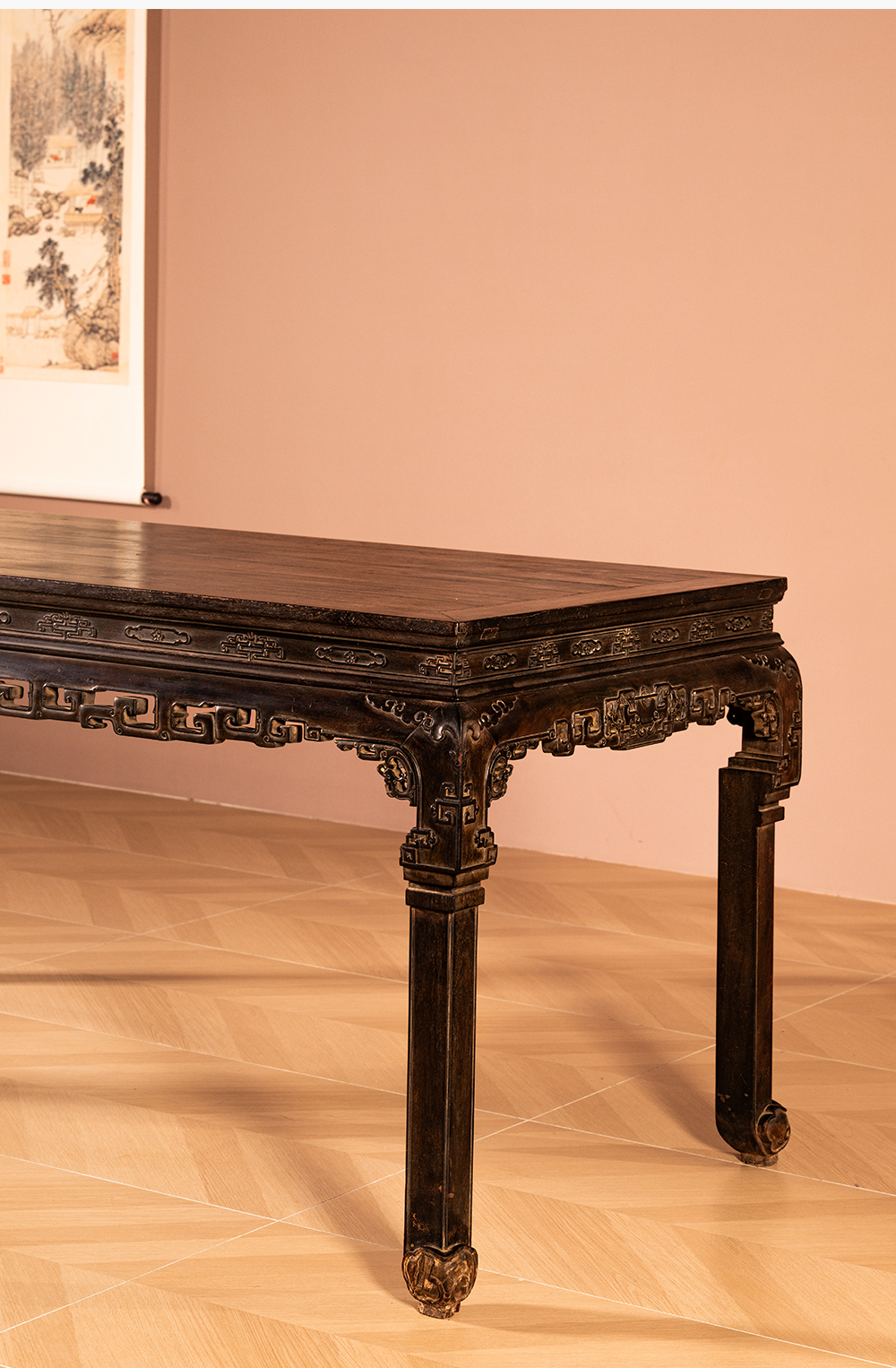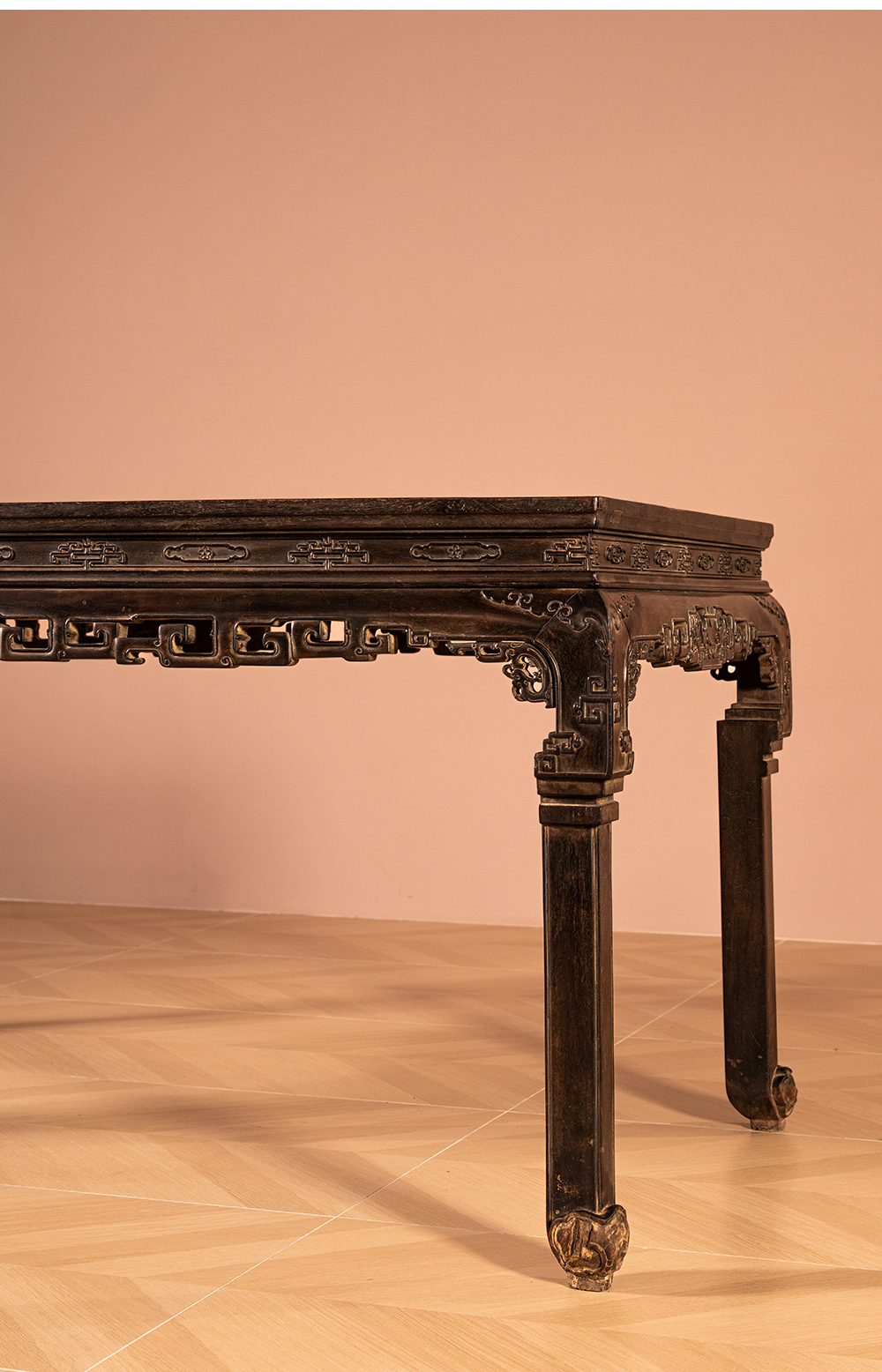 清 紫檀螭龙捧寿三弯腿如意足画桌