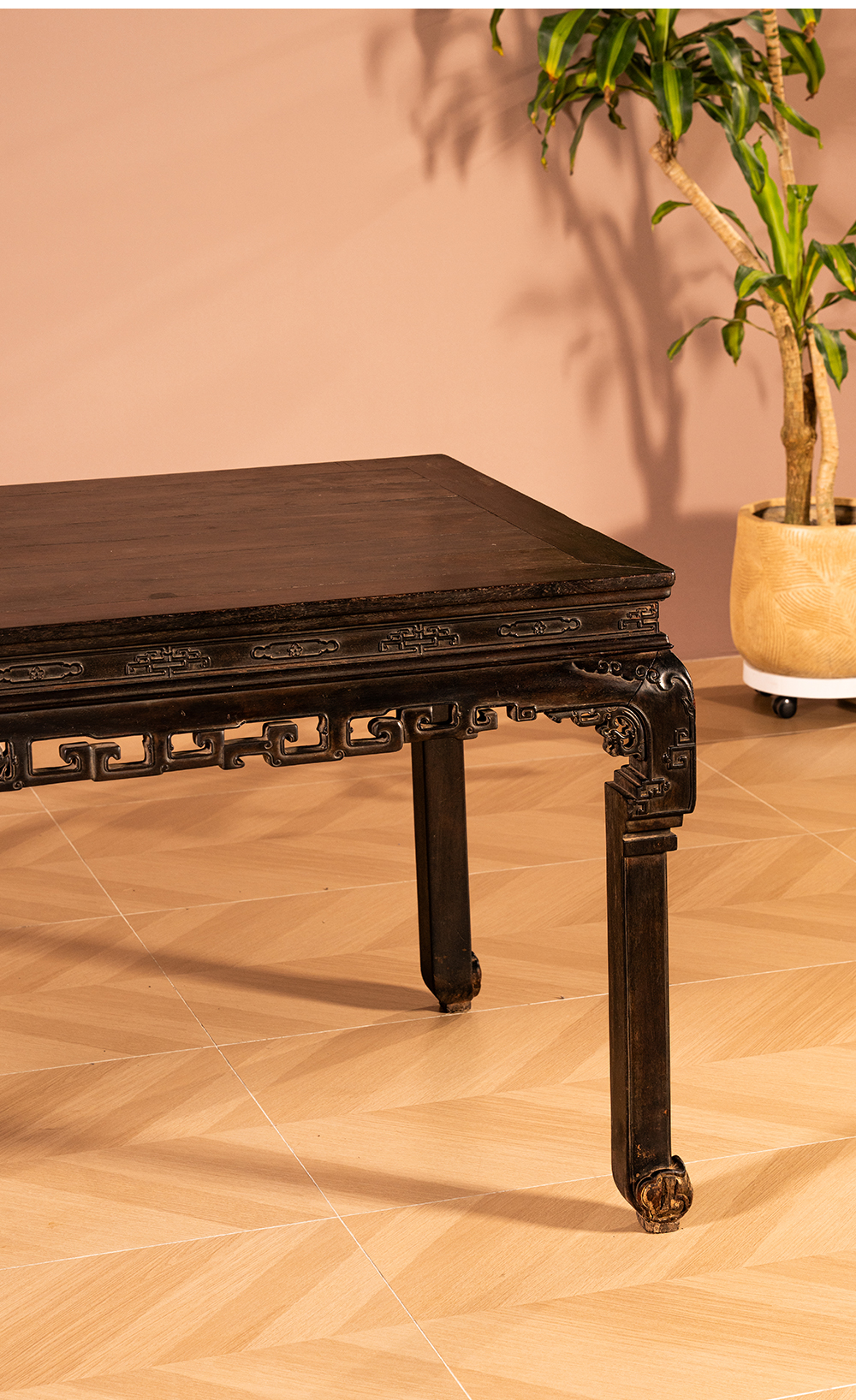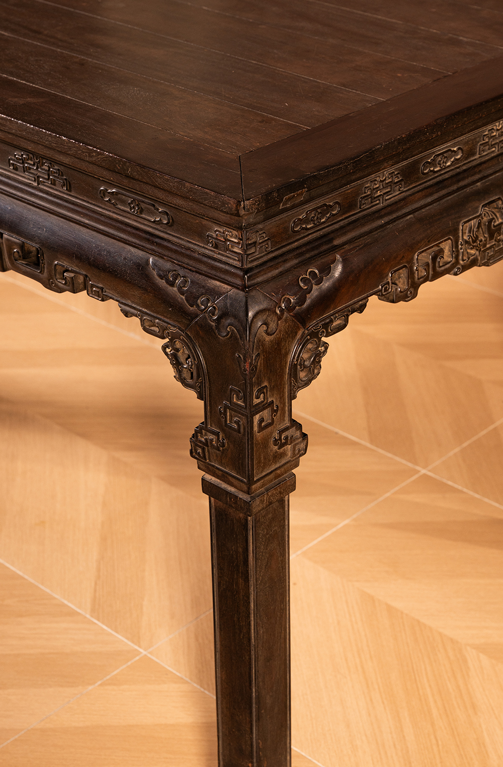 二十世纪 红木束腰马蹄腿拐子纹方桌