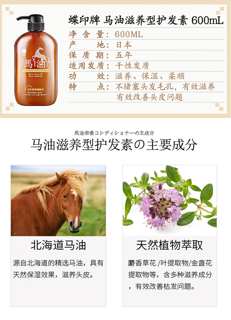蝶印 马油护发素(滋养型)600mL