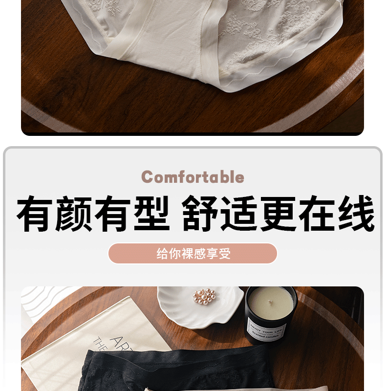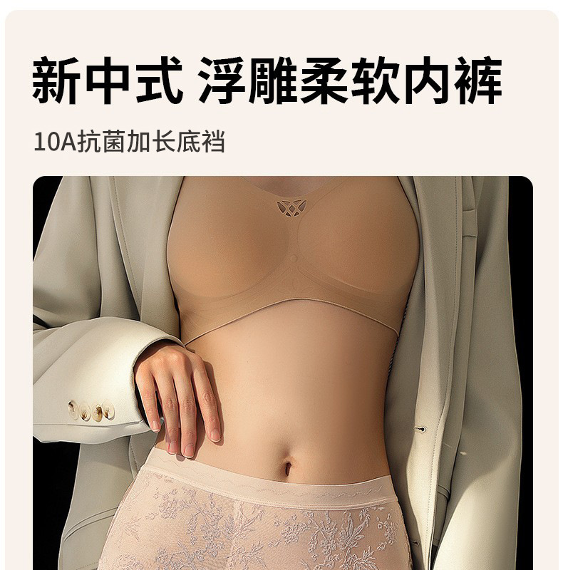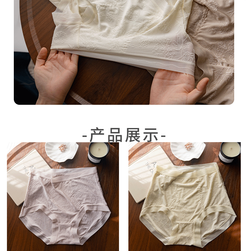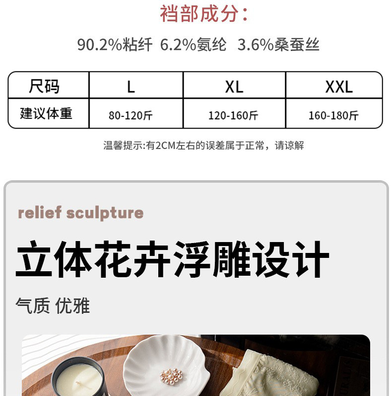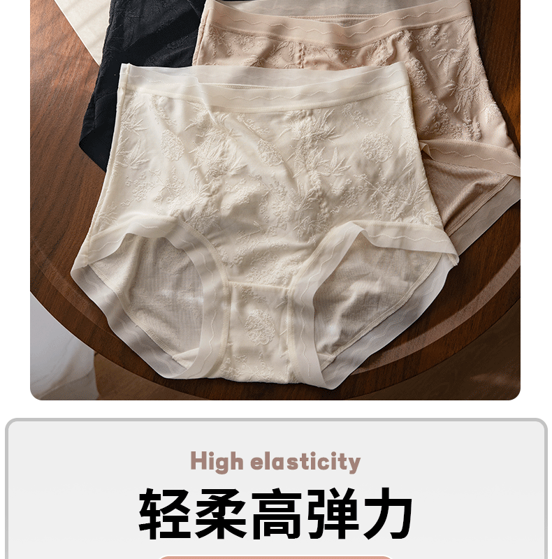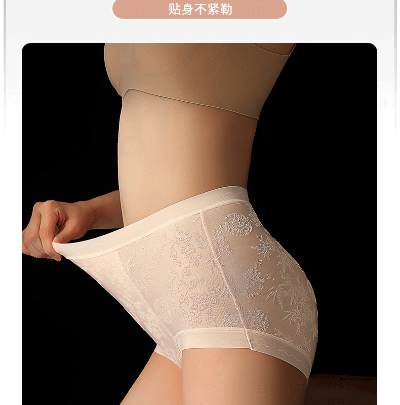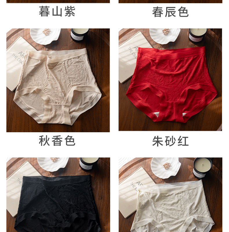 雀说 【4条】内裤女蕾丝高腰大码10A抗菌桑蚕丝加长裆三角裤HY3976-9