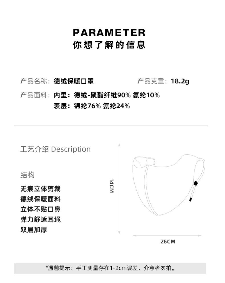 雀说秋冬保暖口罩男女户外骑行防风防寒德绒面罩立体透气护眼角ALDKZ40