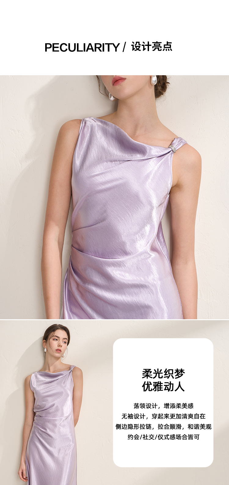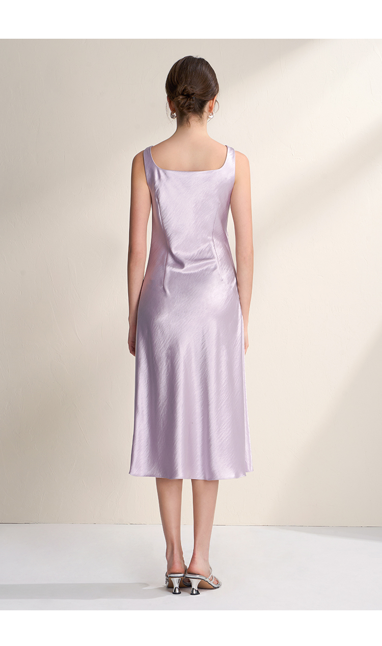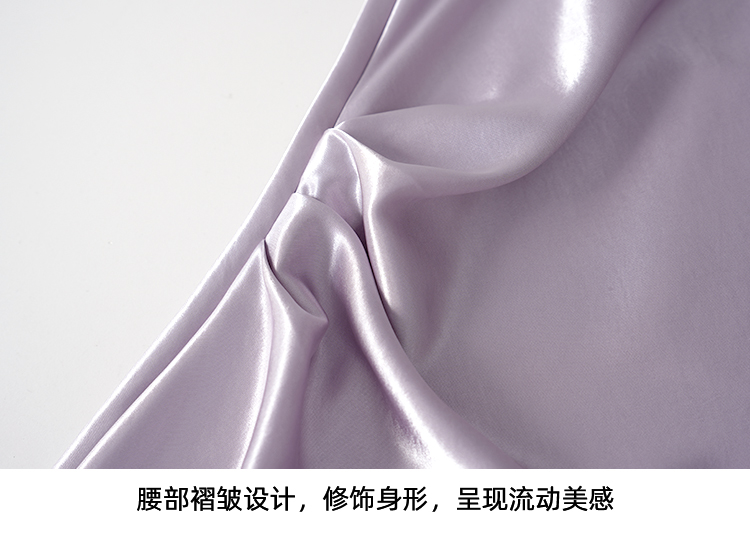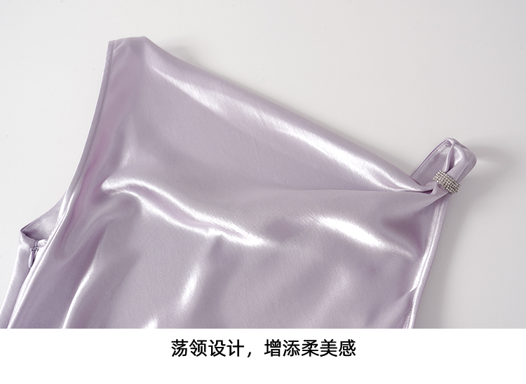 EITIE爱特爱法式荡领紫色吊带缎面提褶显瘦连衣裙礼服2026夏新款B2607248
