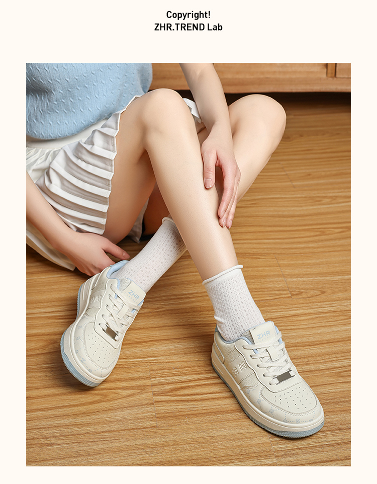 ZHR复古蓝色小白鞋女厚底夏季新款2025增高休闲鞋舒适配裙子
