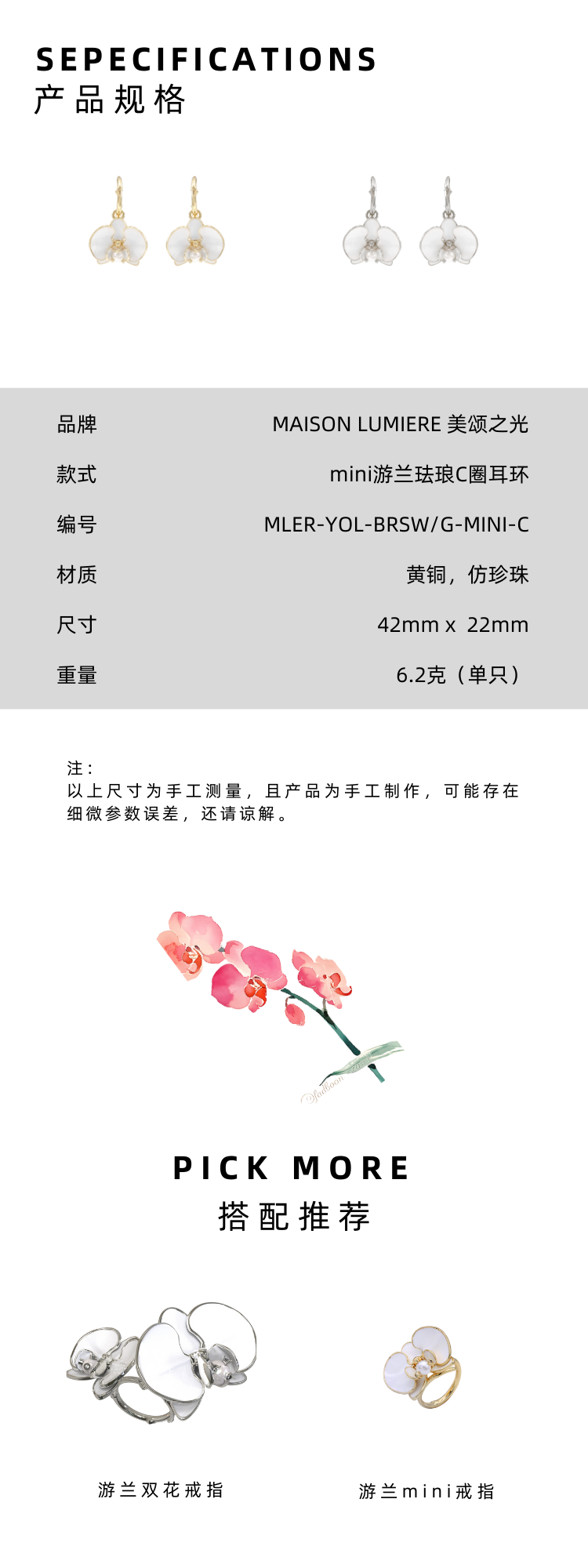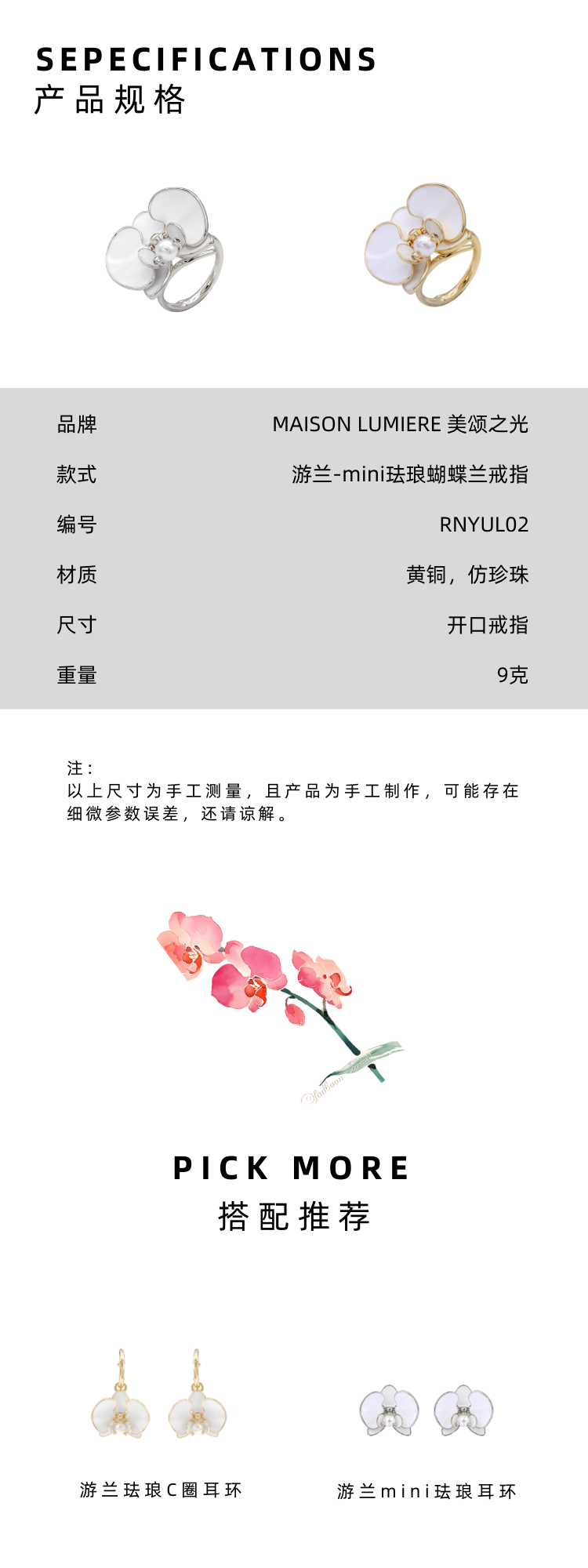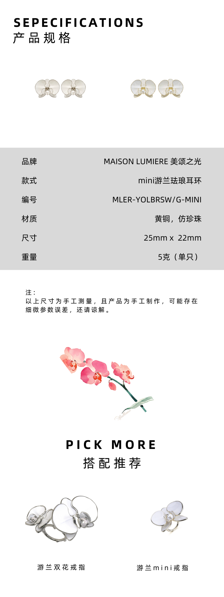 美颂之光 MAISON LUMIERE mini珐琅蝴蝶兰系列耳饰戒指