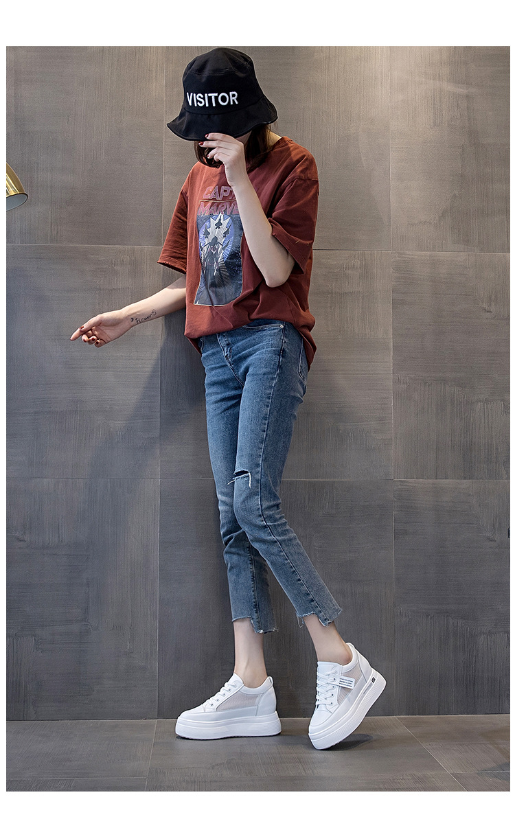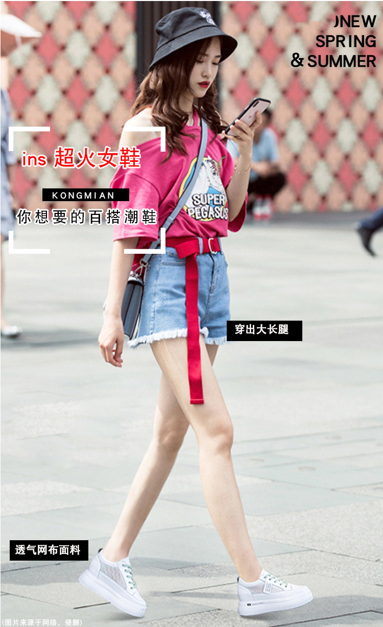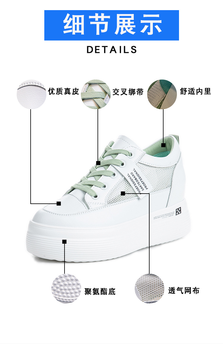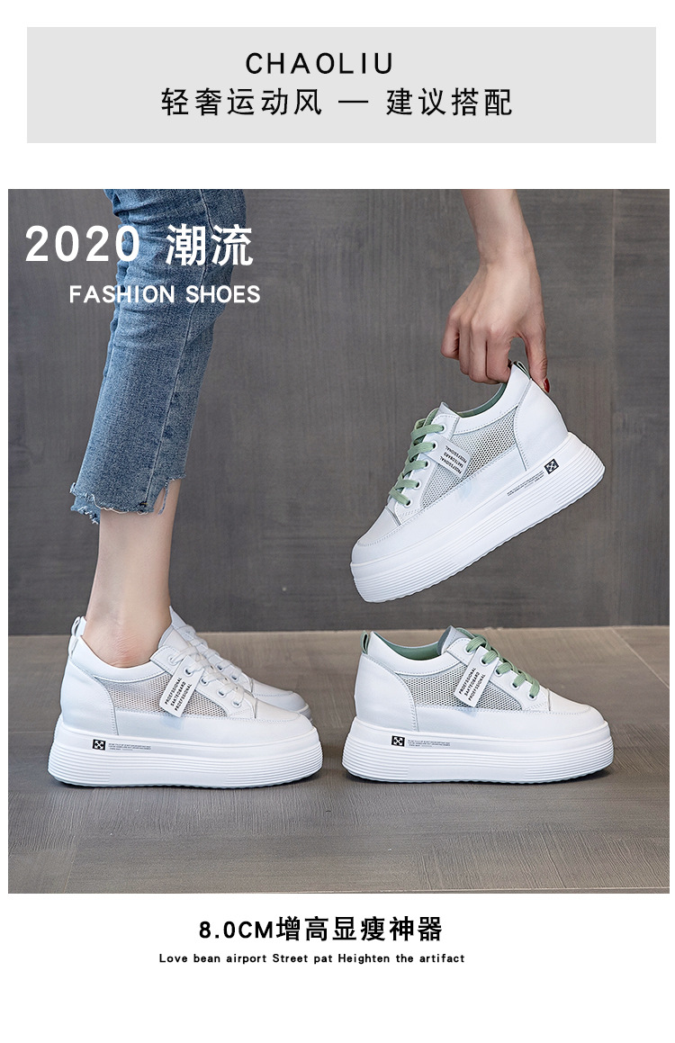 新款爆款真皮网鞋单鞋内系带运动鞋坡跟低帮系带透气小白鞋MLS3388