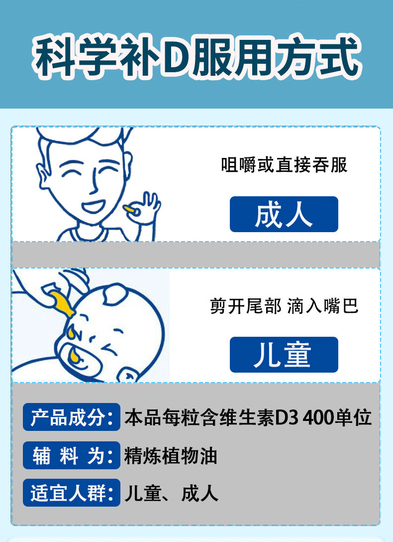【拍2赠1 拍4赠2 拍5赠3 拍10赠7】维生素D滴剂 有非常多的生理作用 和健康息息相关 60粒