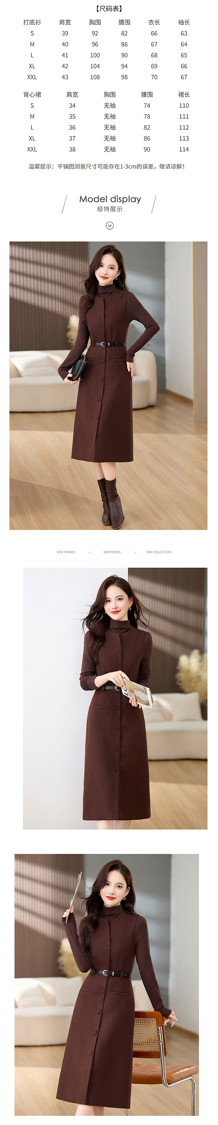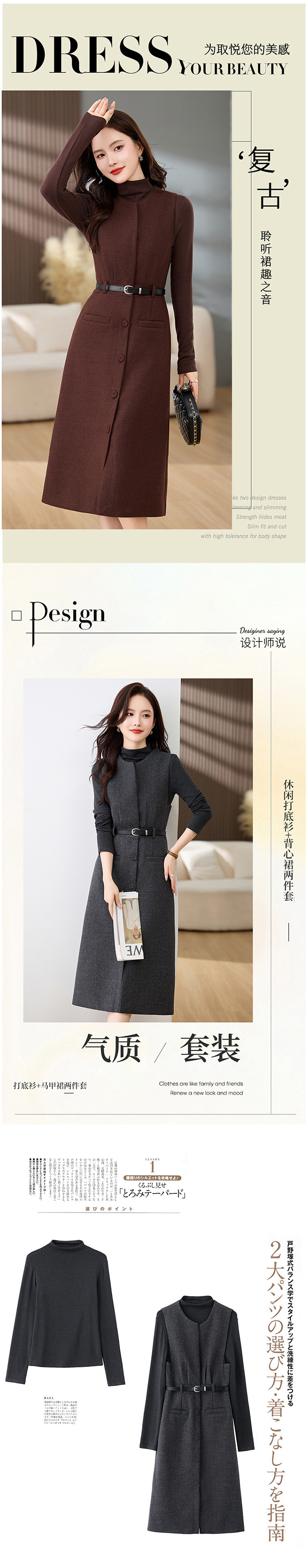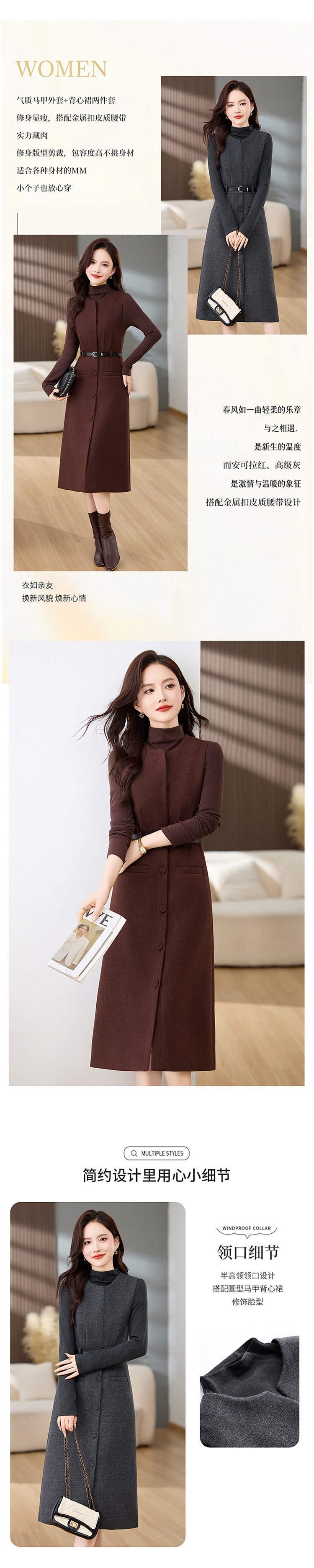 高级感气质羊毛呢加厚背带马甲连衣裙两件套女秋冬新款套装裙MEIQIN1835